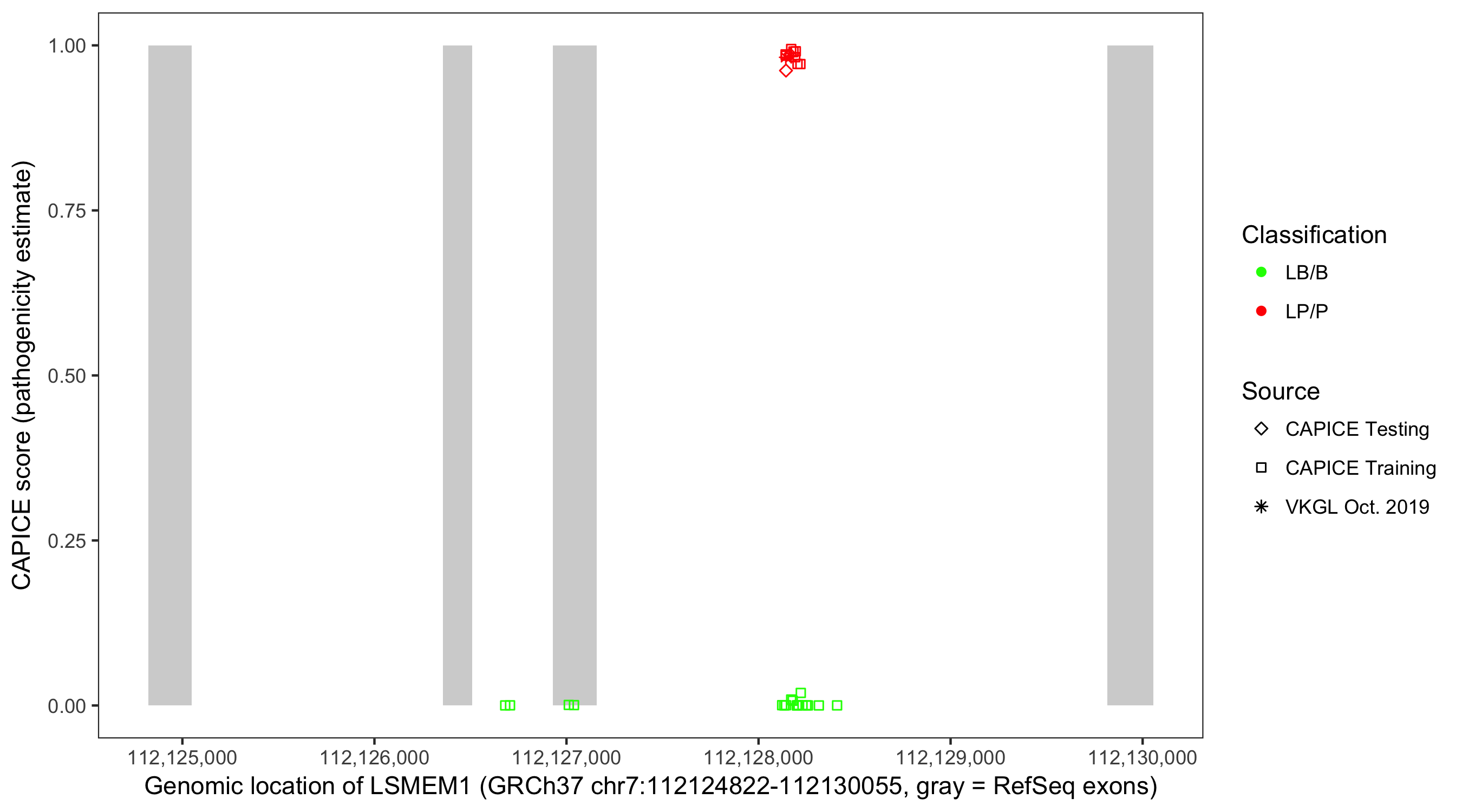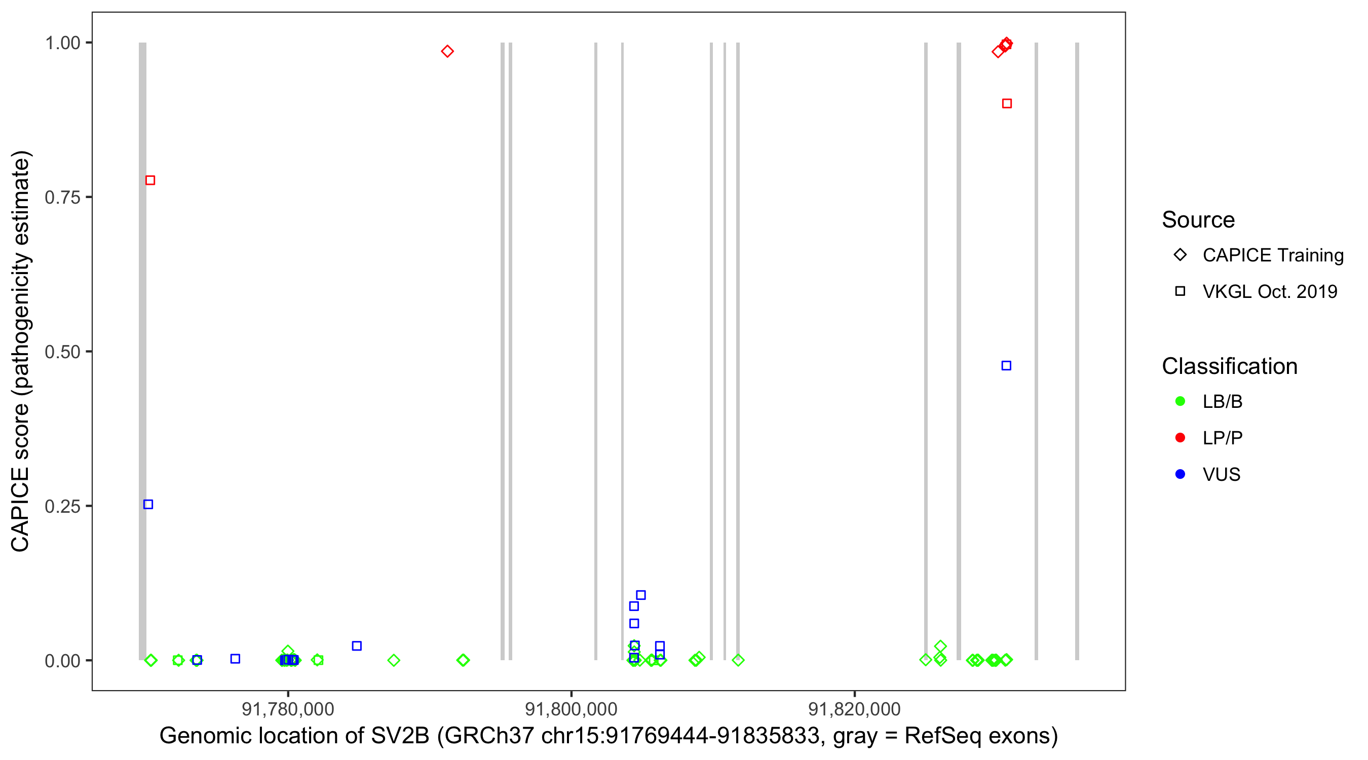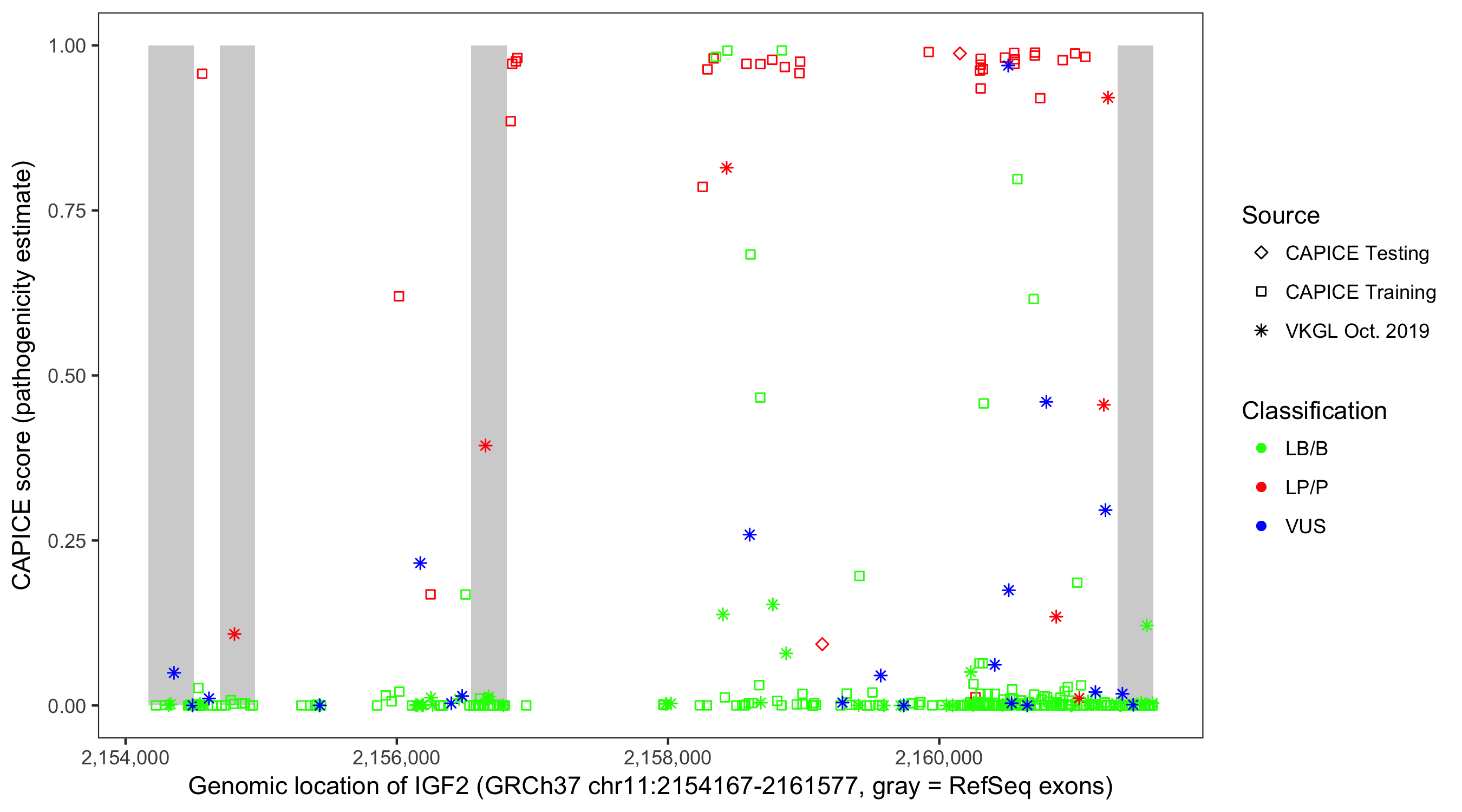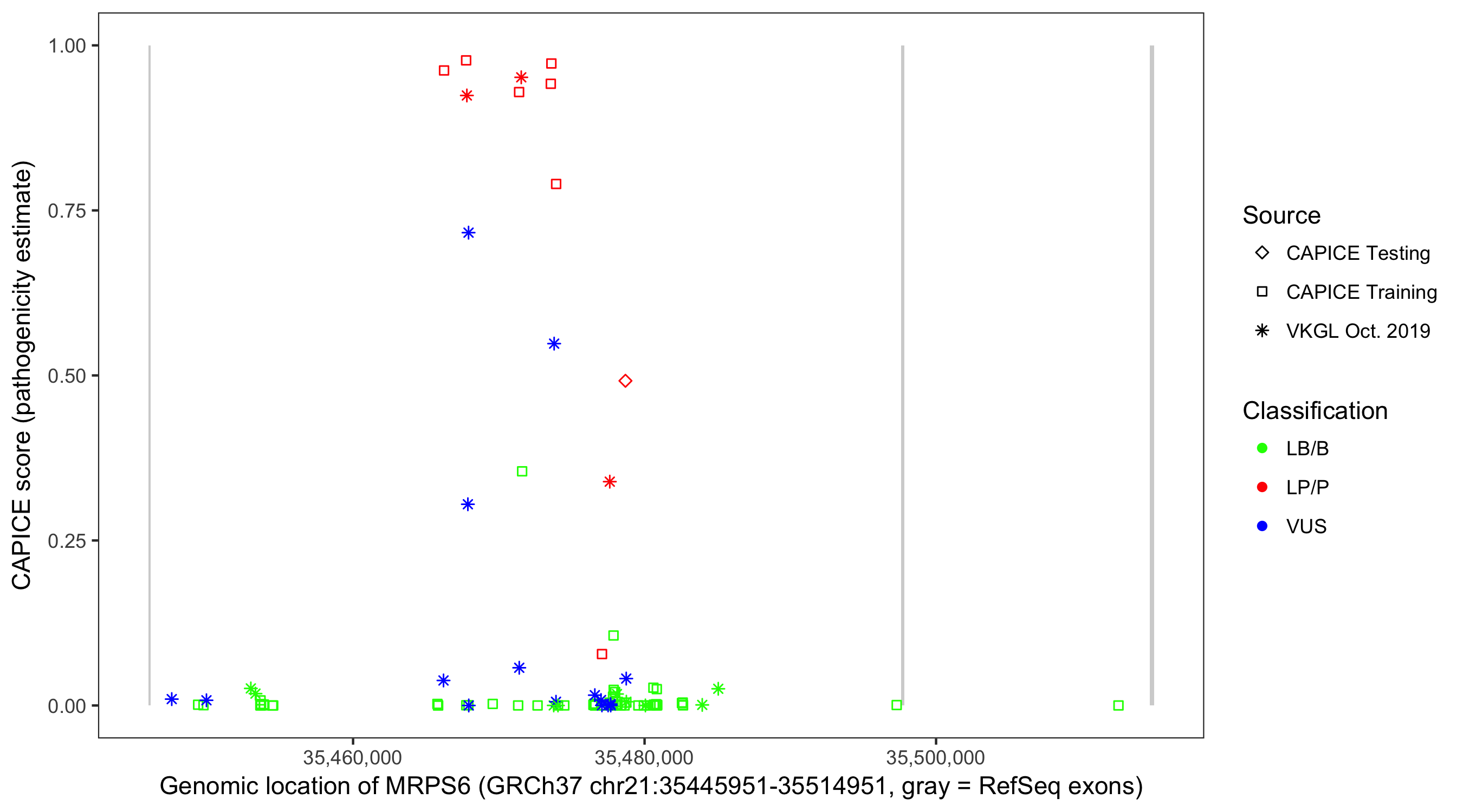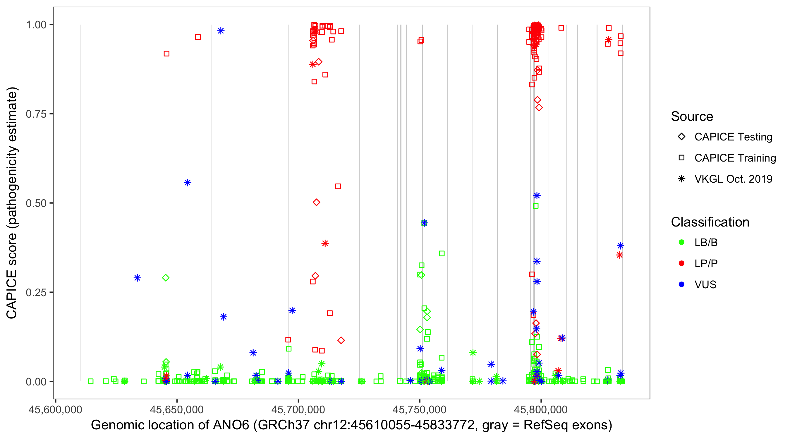 Shown are CAPICE train/test variants plus VKGL Oct 2019.