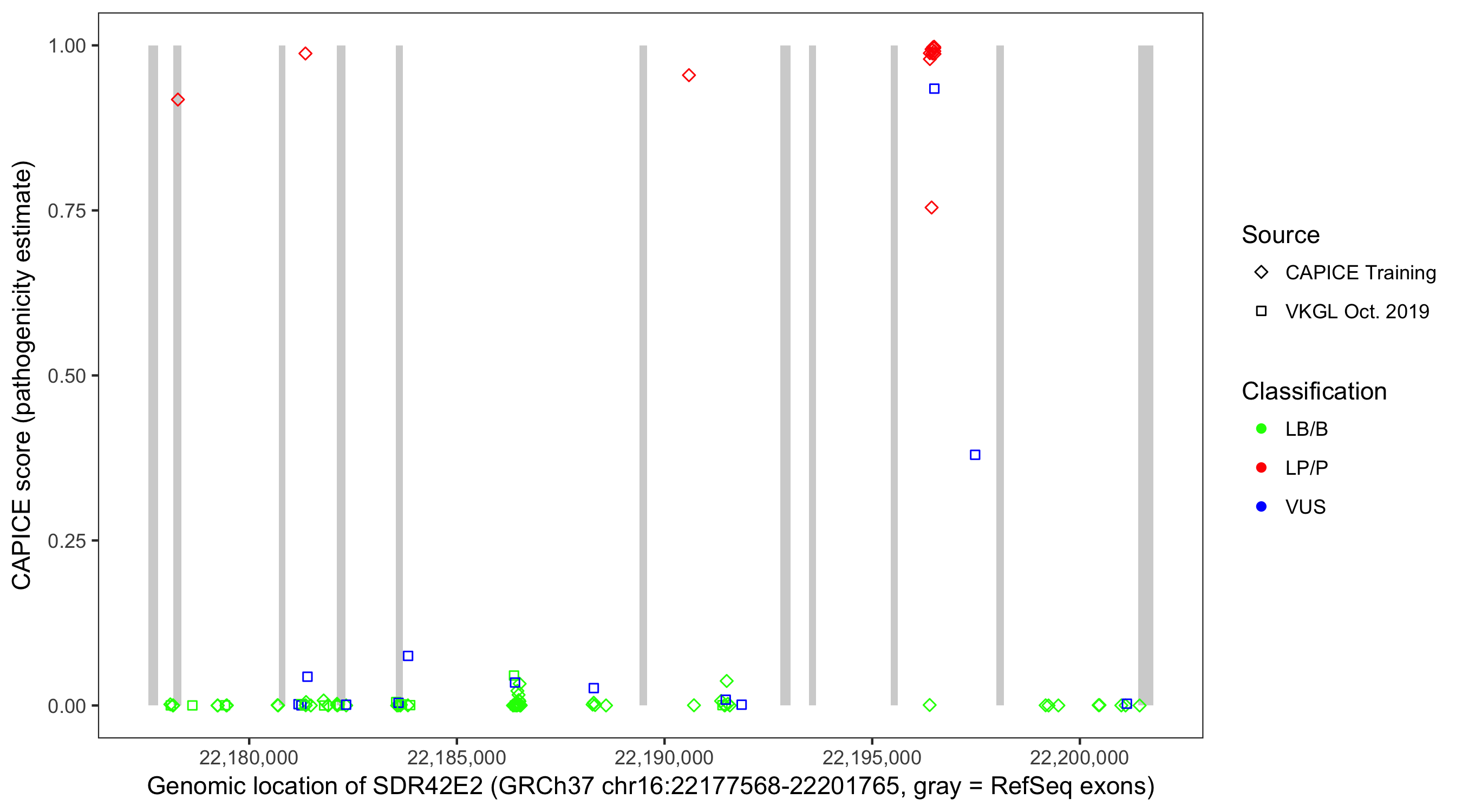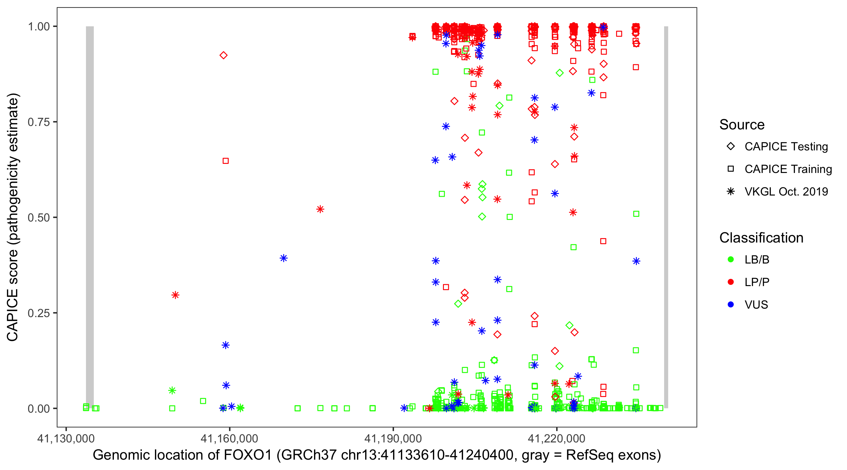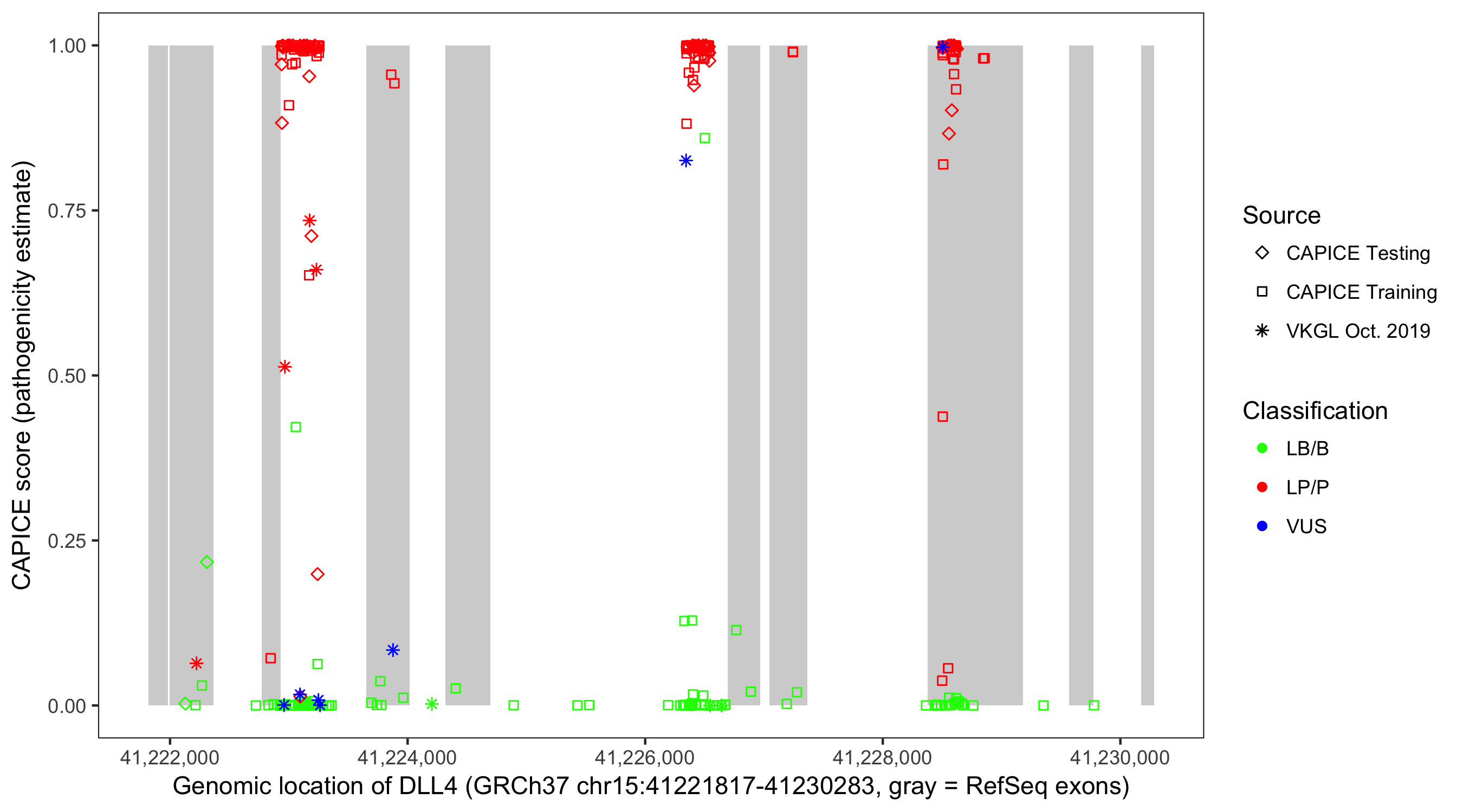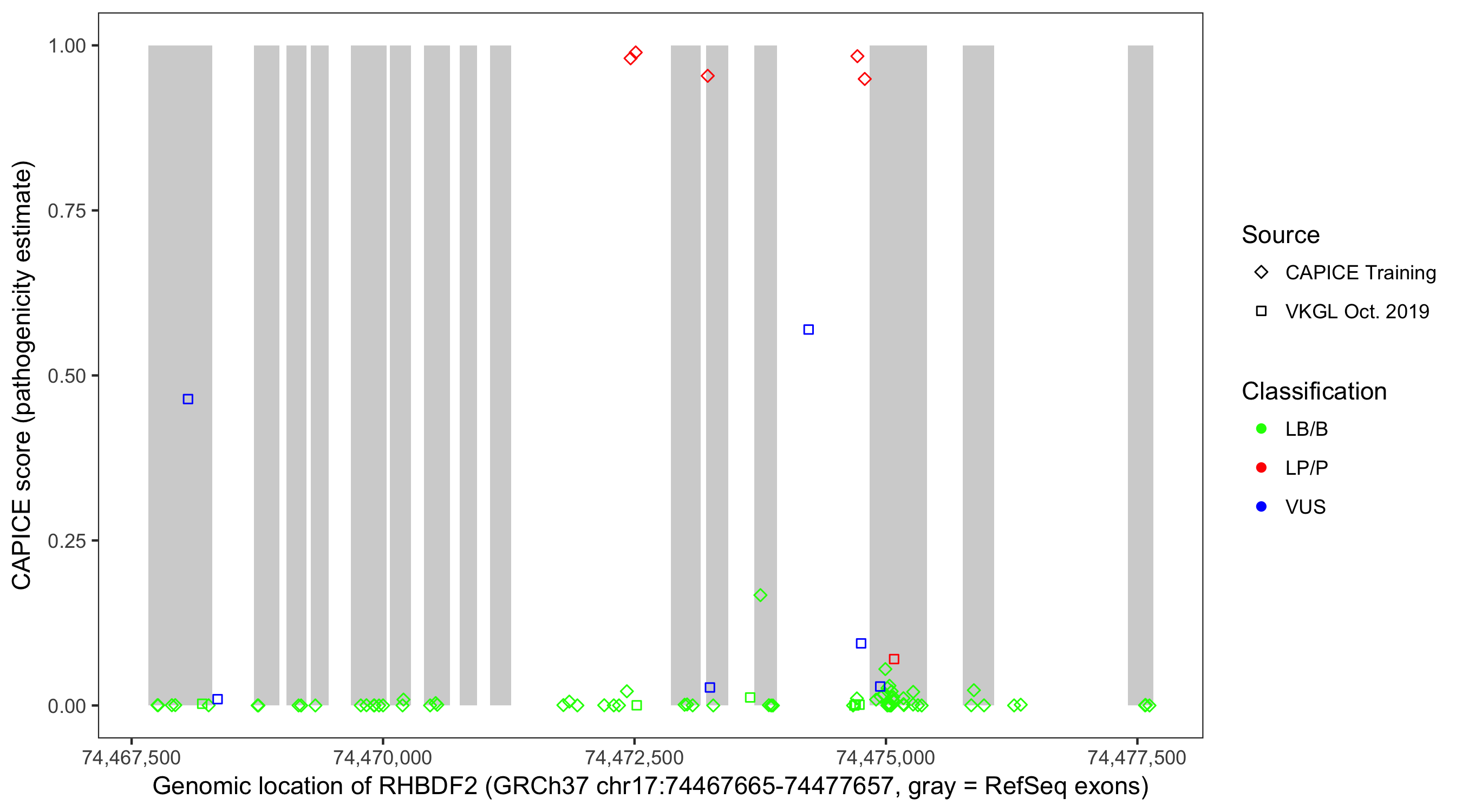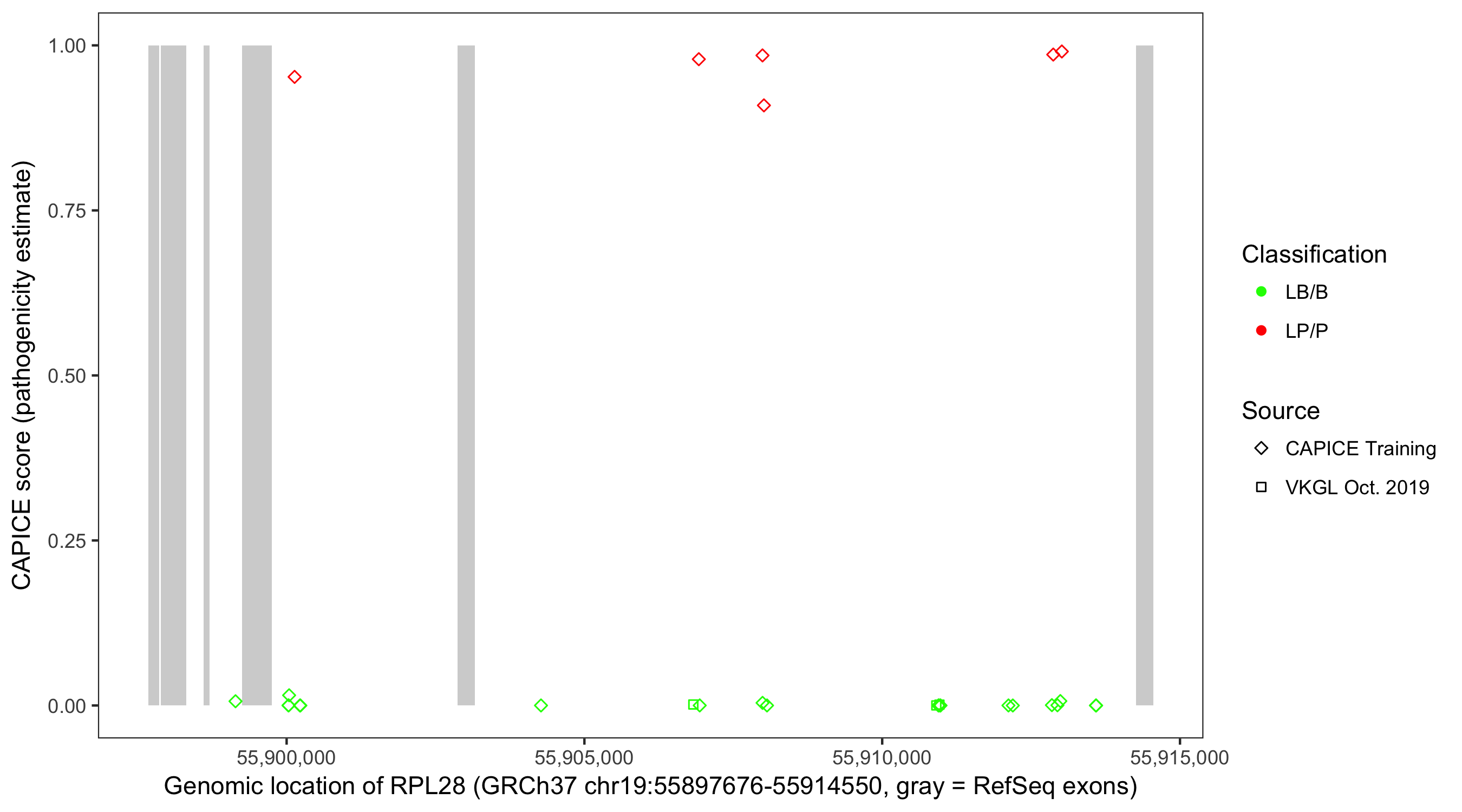 Shown are CAPICE train/test variants plus VKGL Oct 2019.