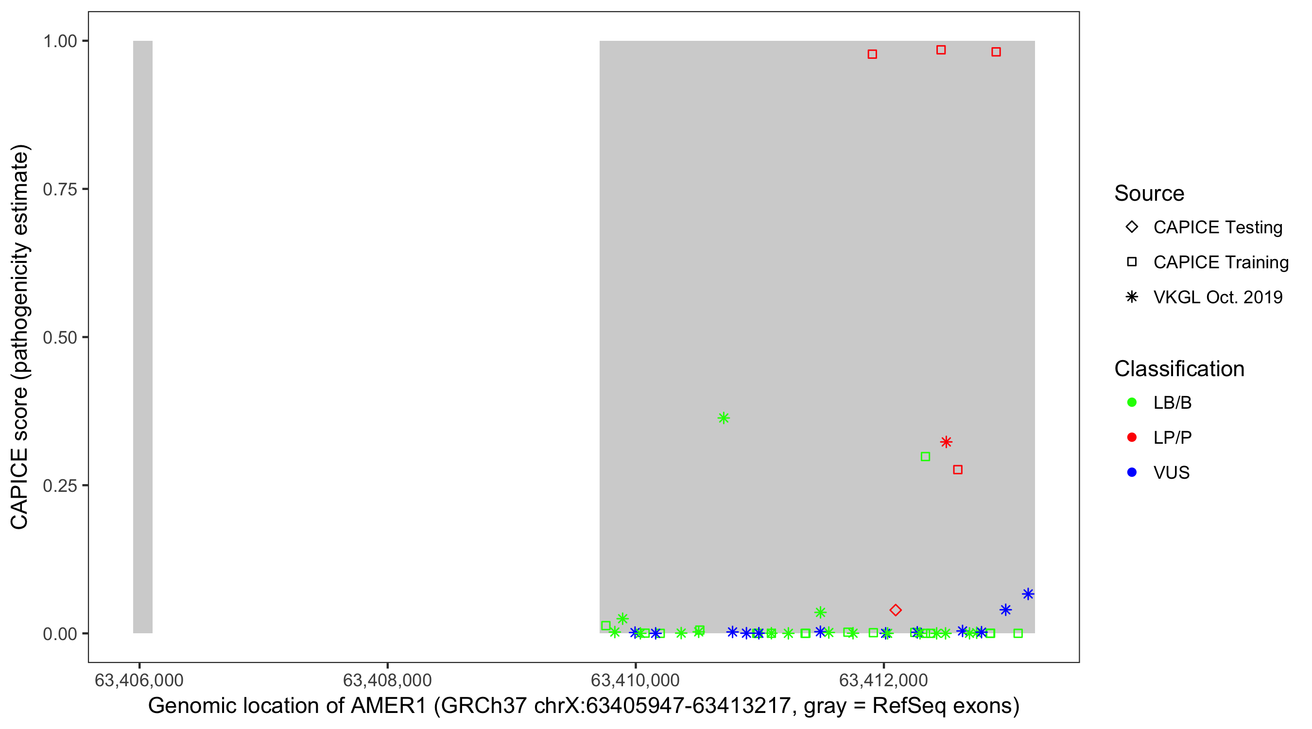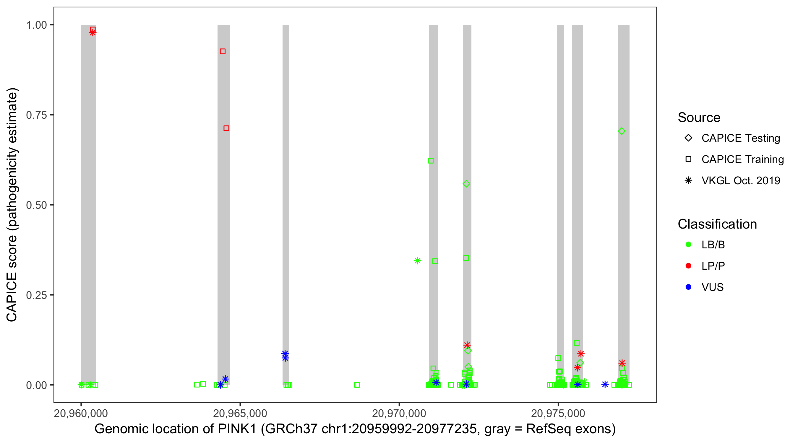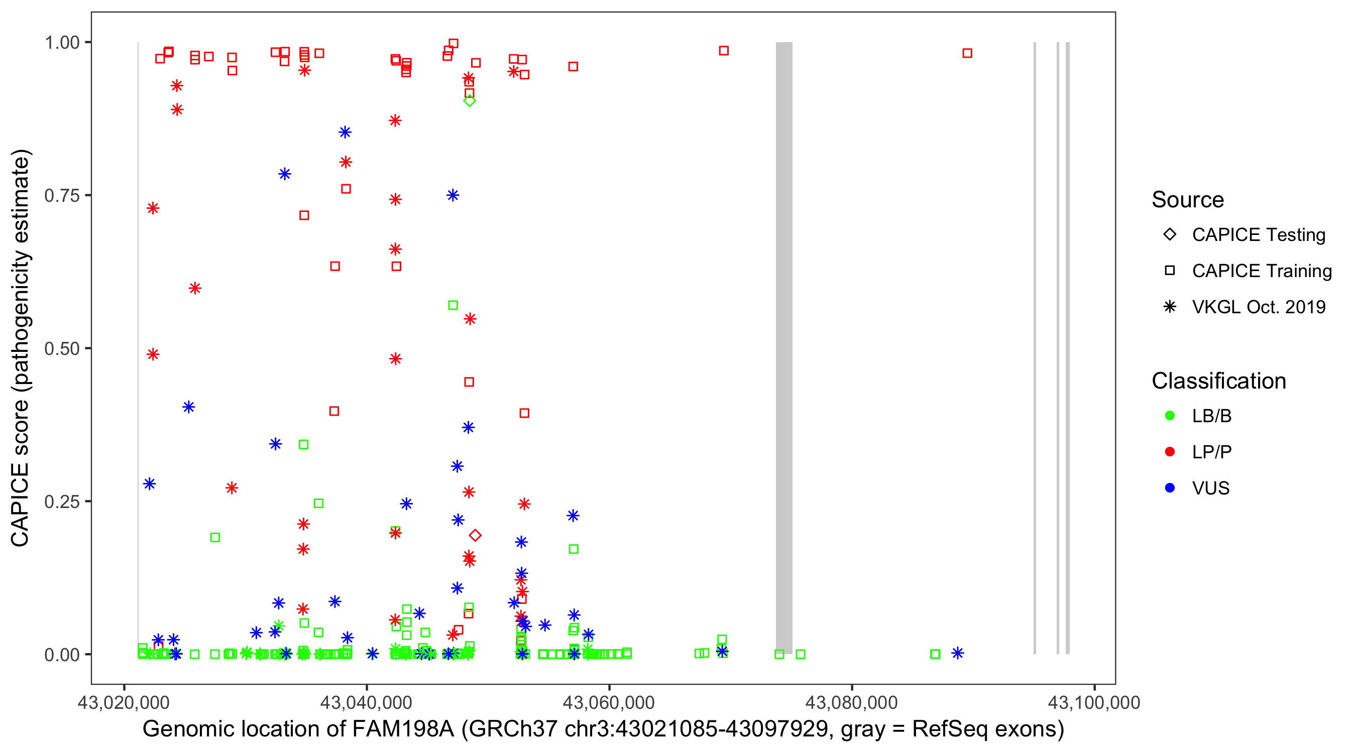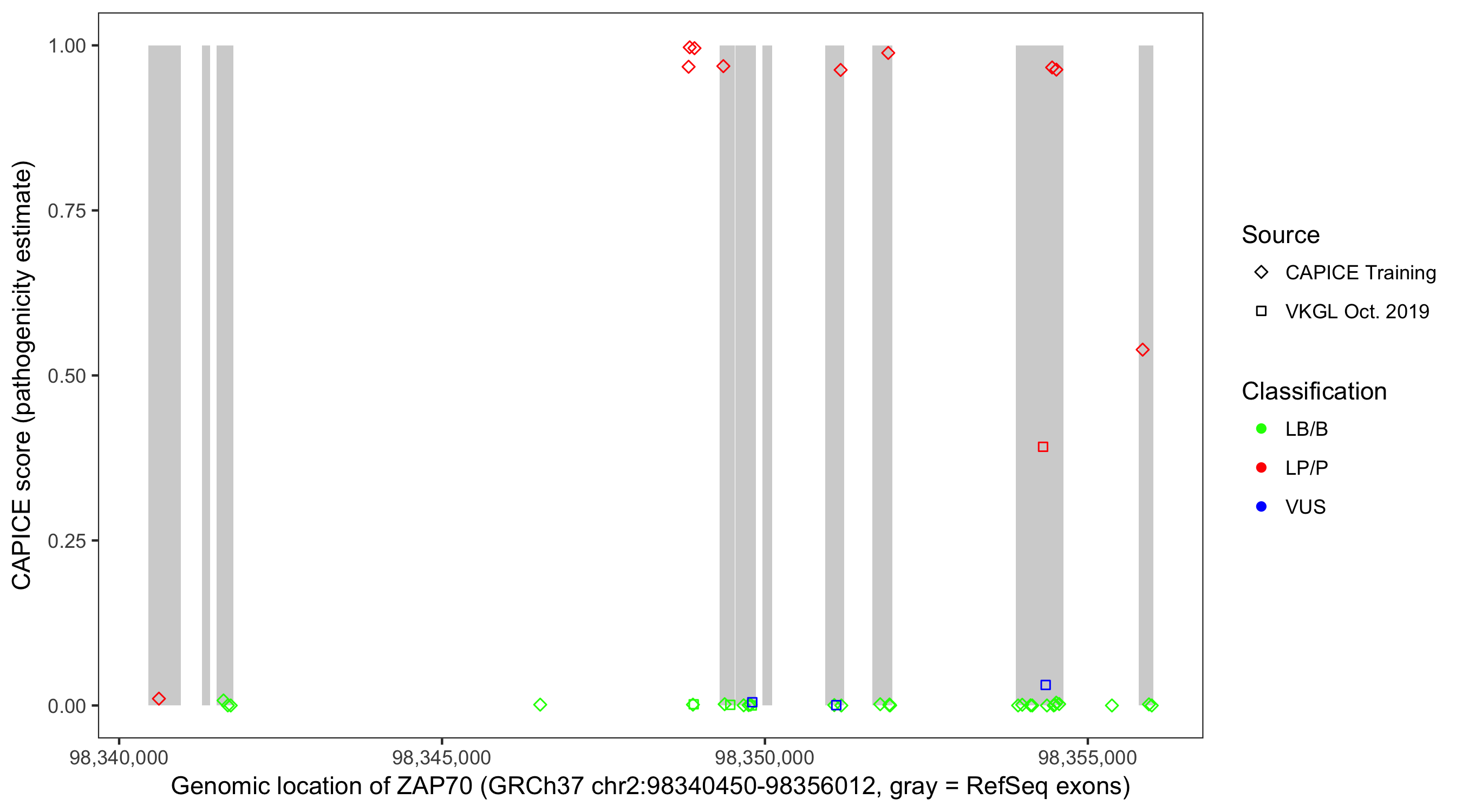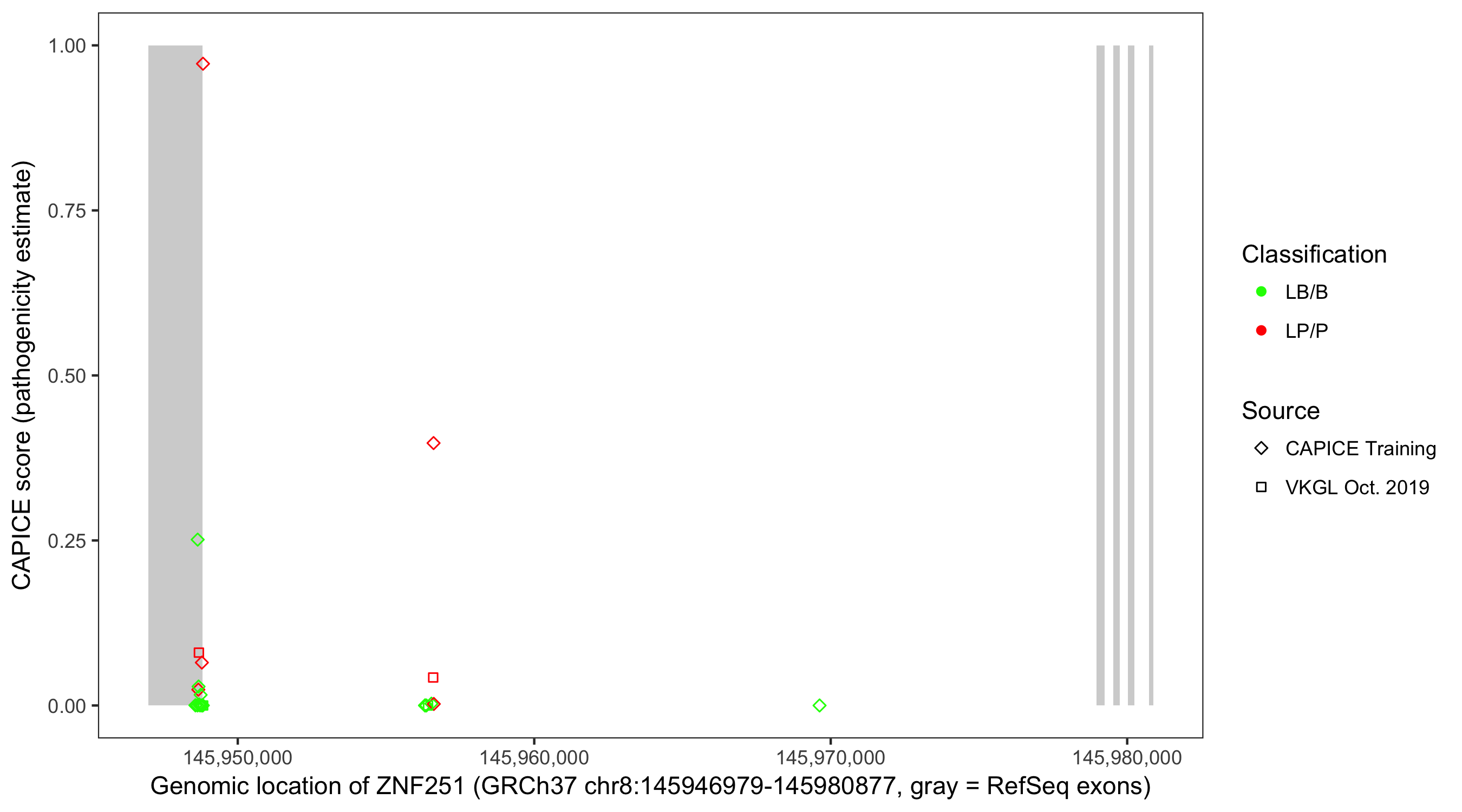 Shown are CAPICE train/test variants plus VKGL Oct 2019.