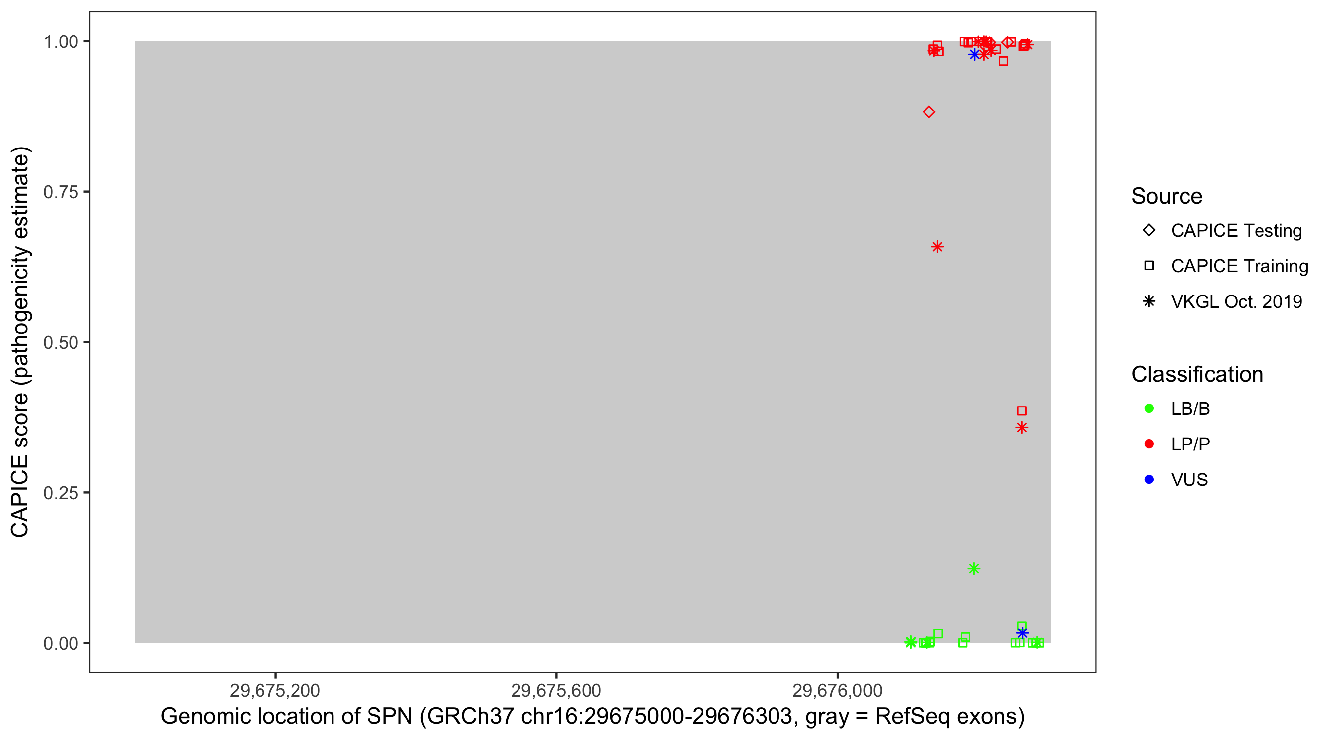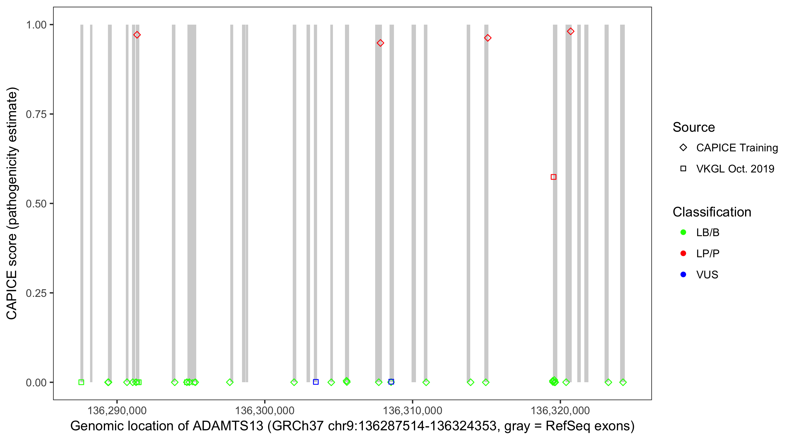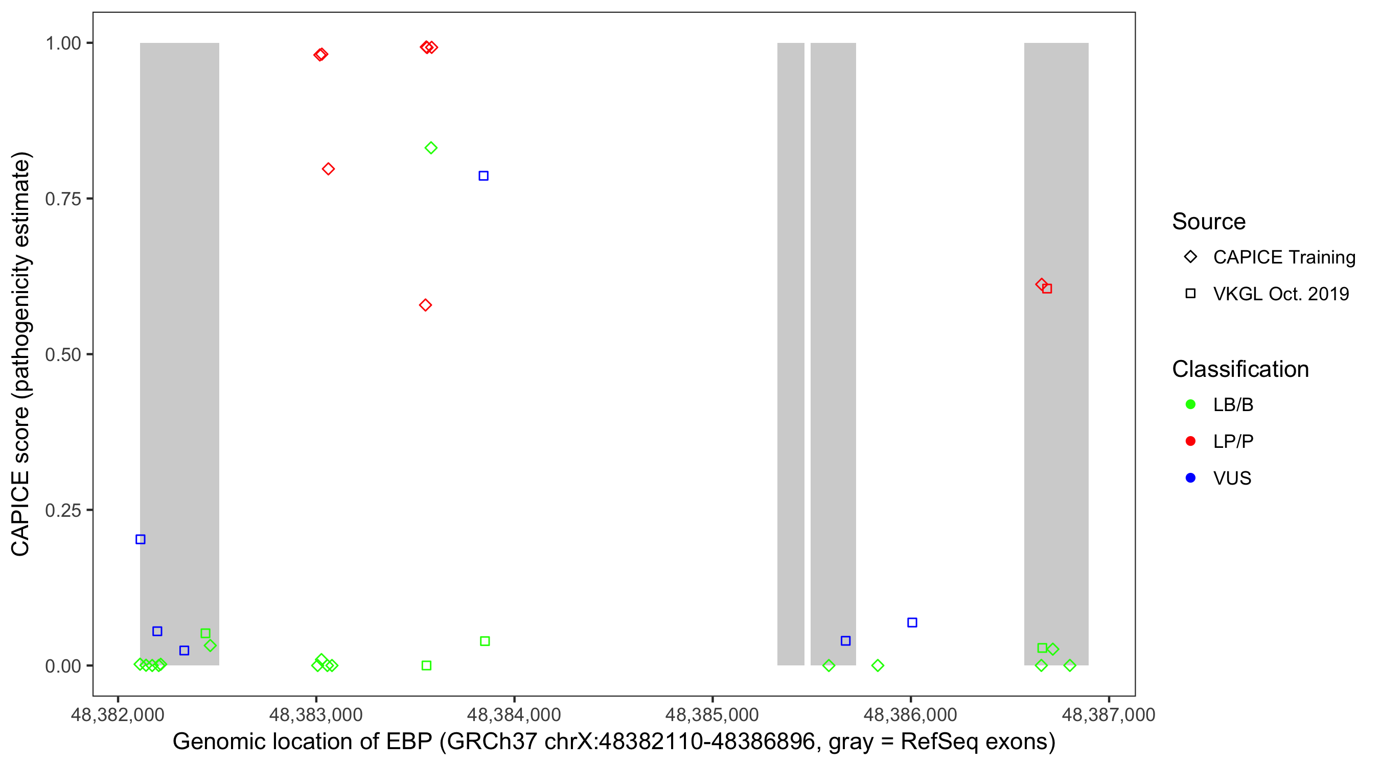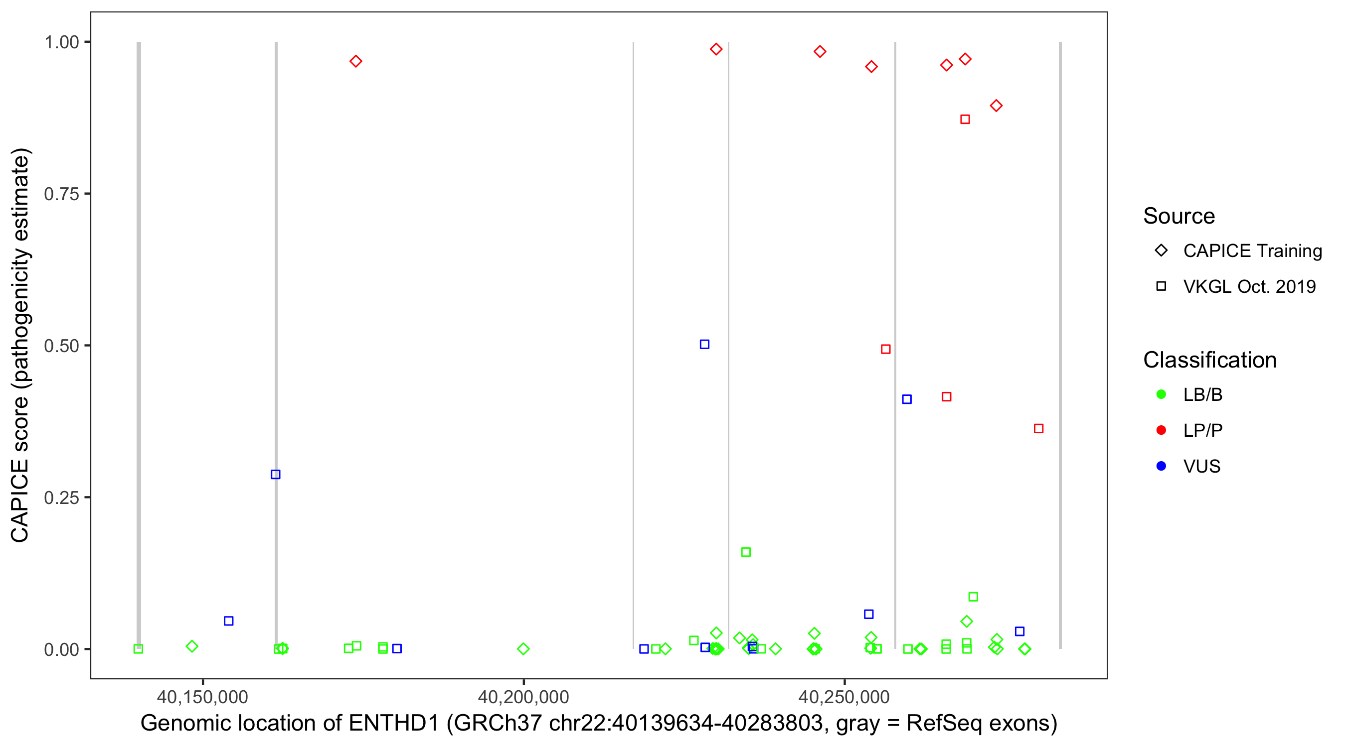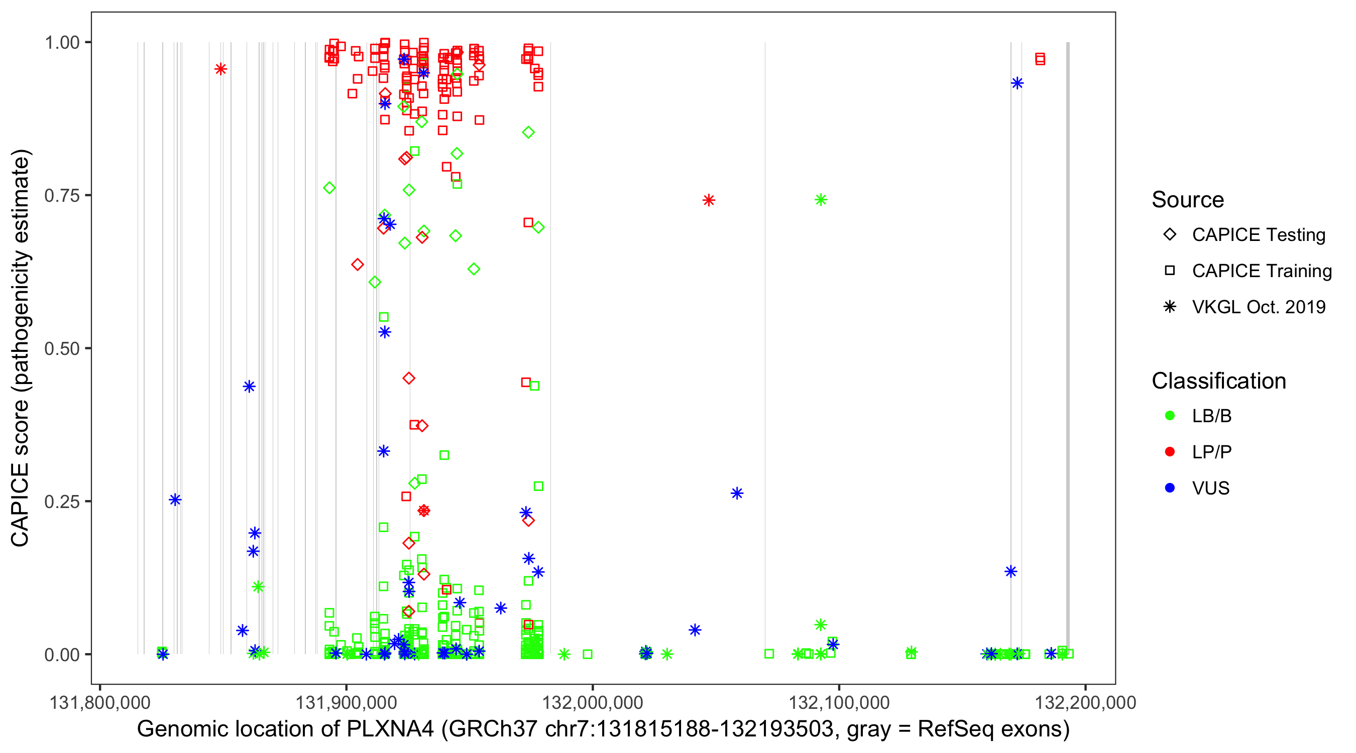 Shown are CAPICE train/test variants plus VKGL Oct 2019.