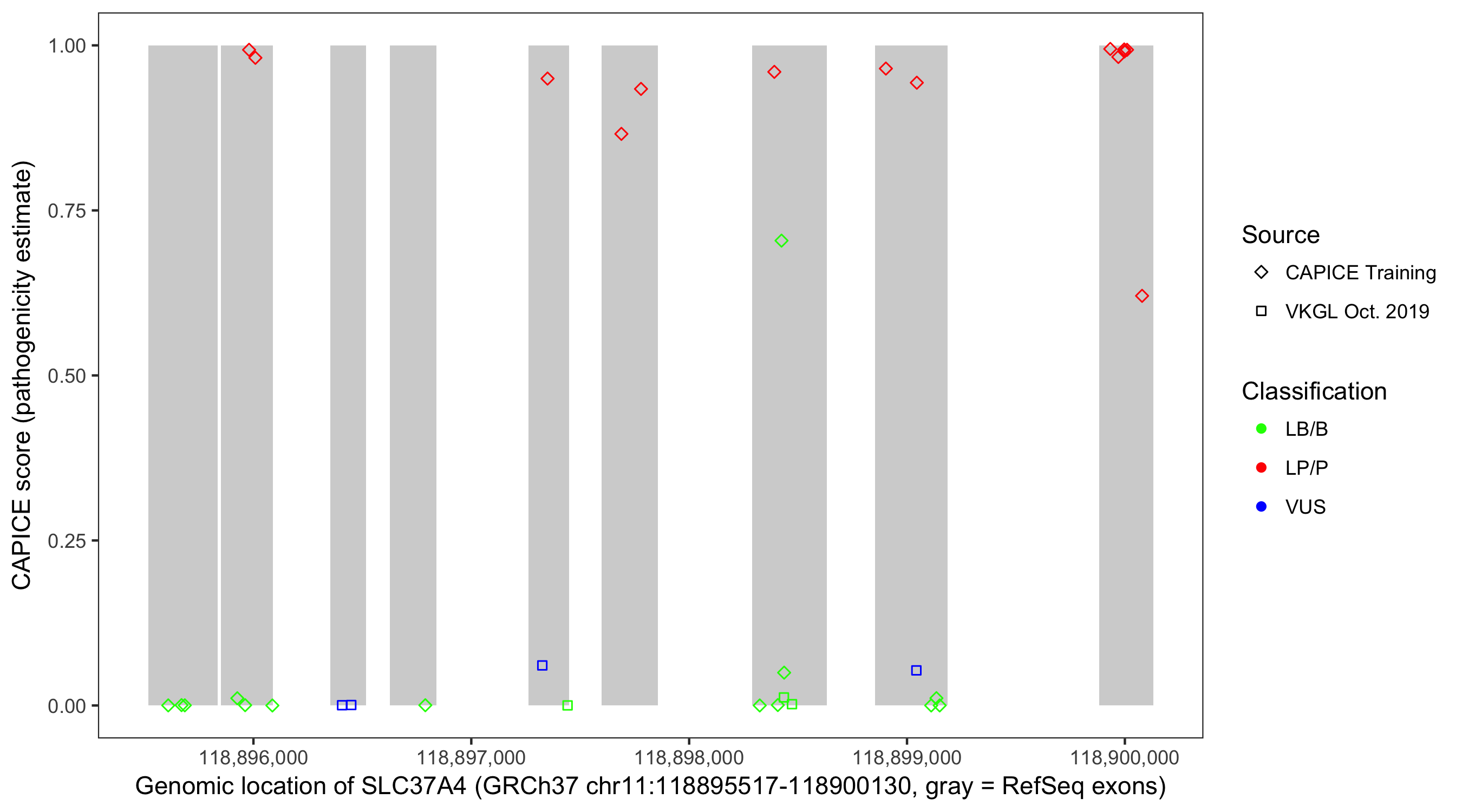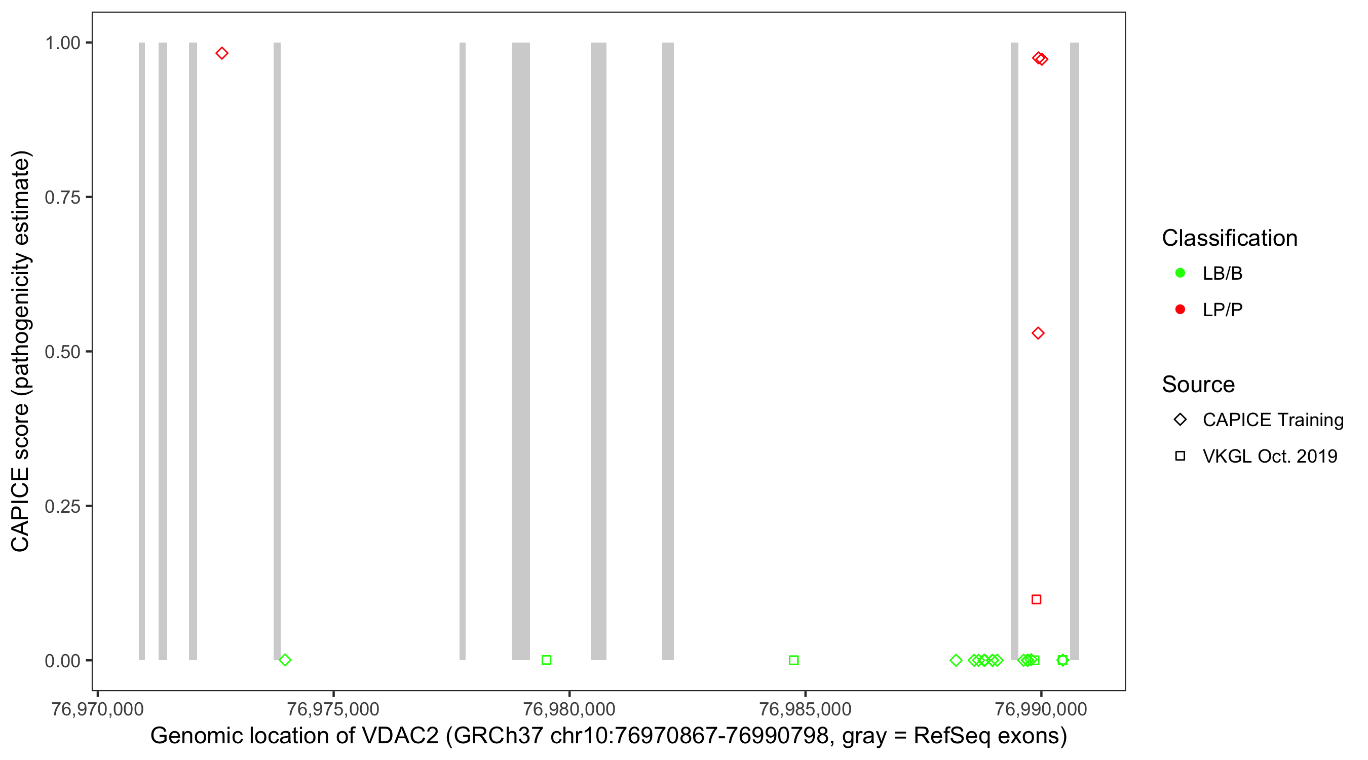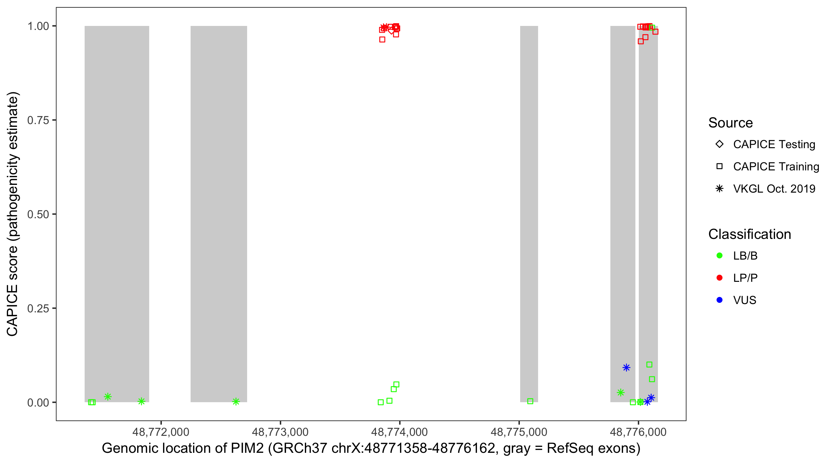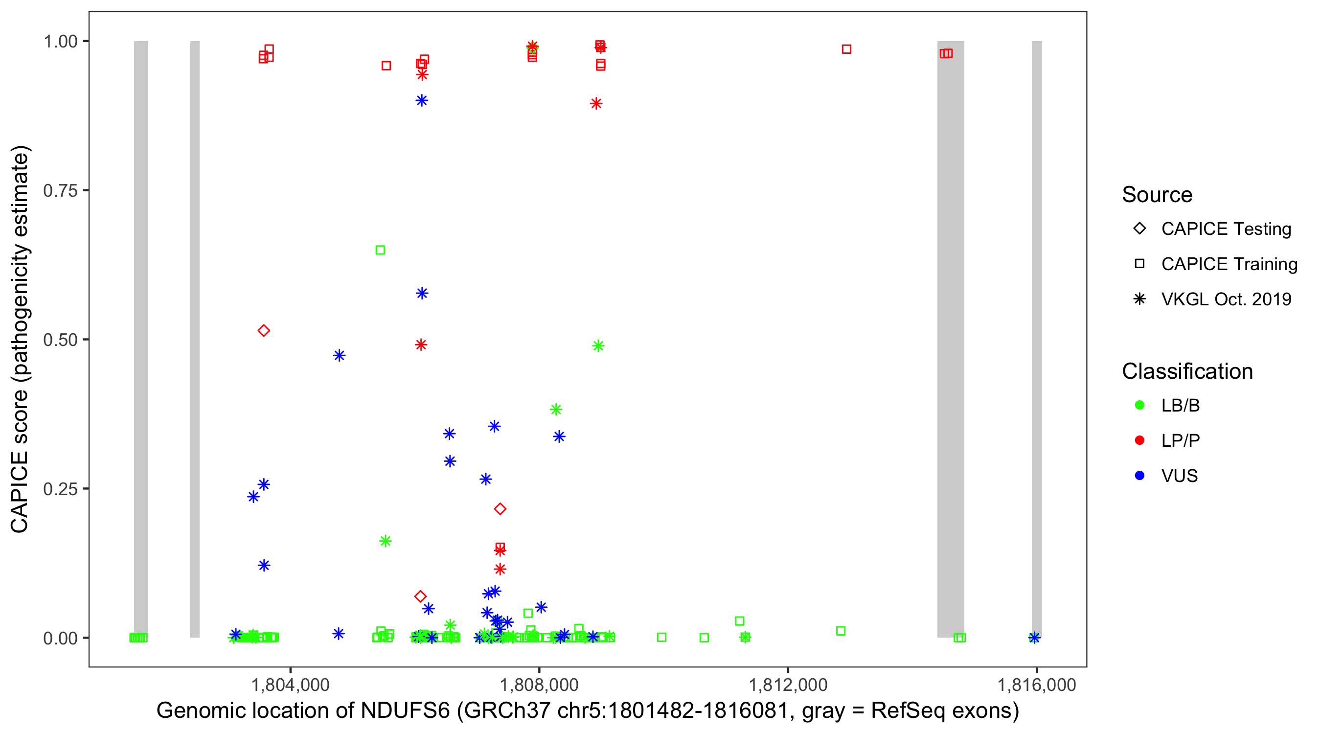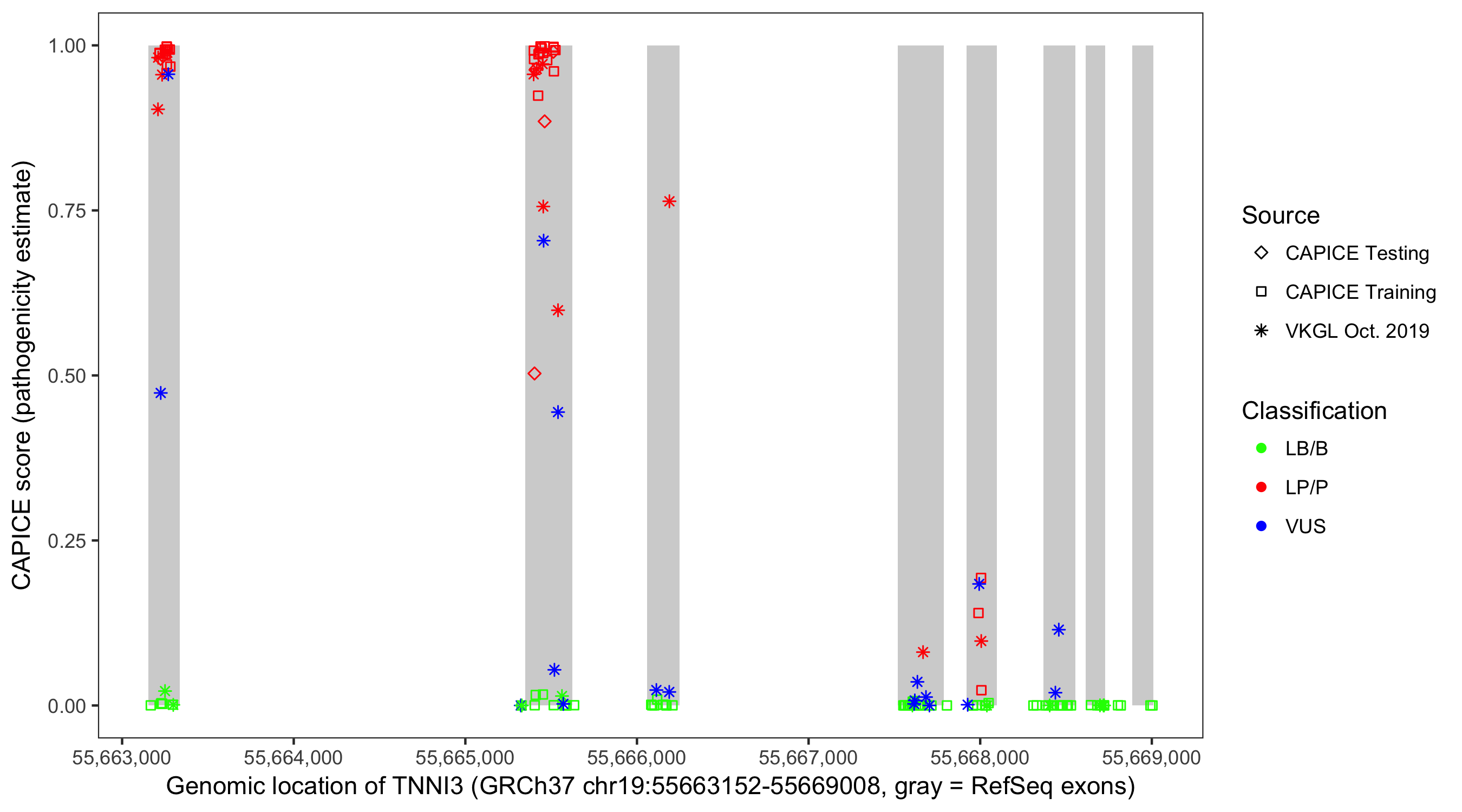 Shown are CAPICE train/test variants plus VKGL Oct 2019.