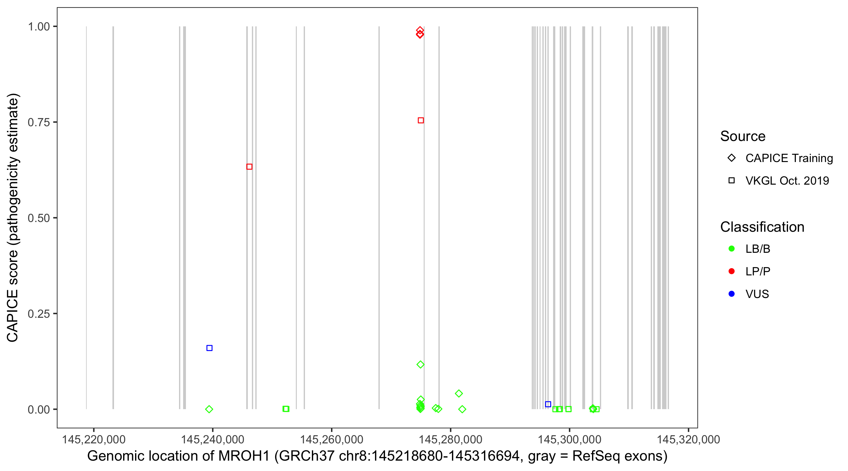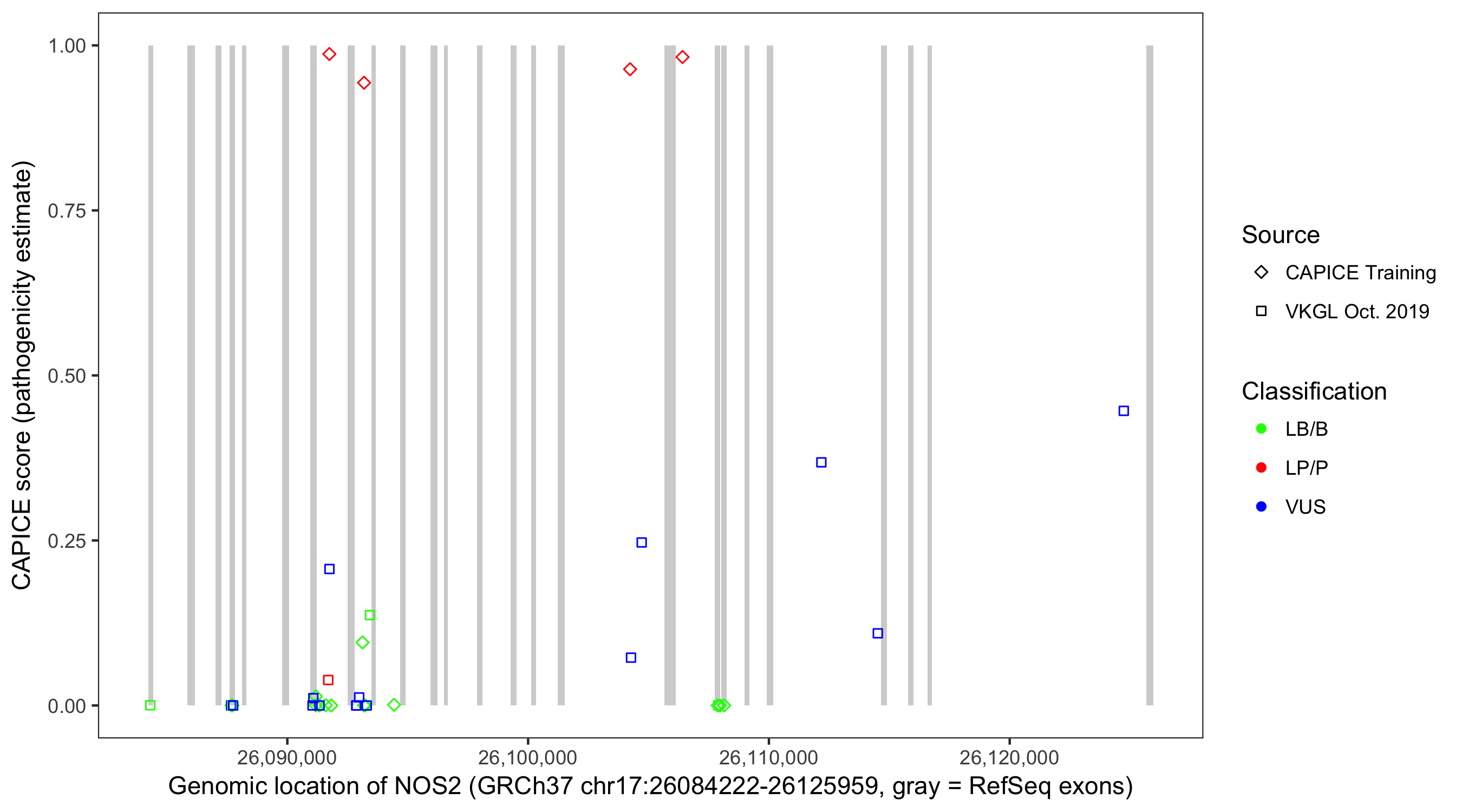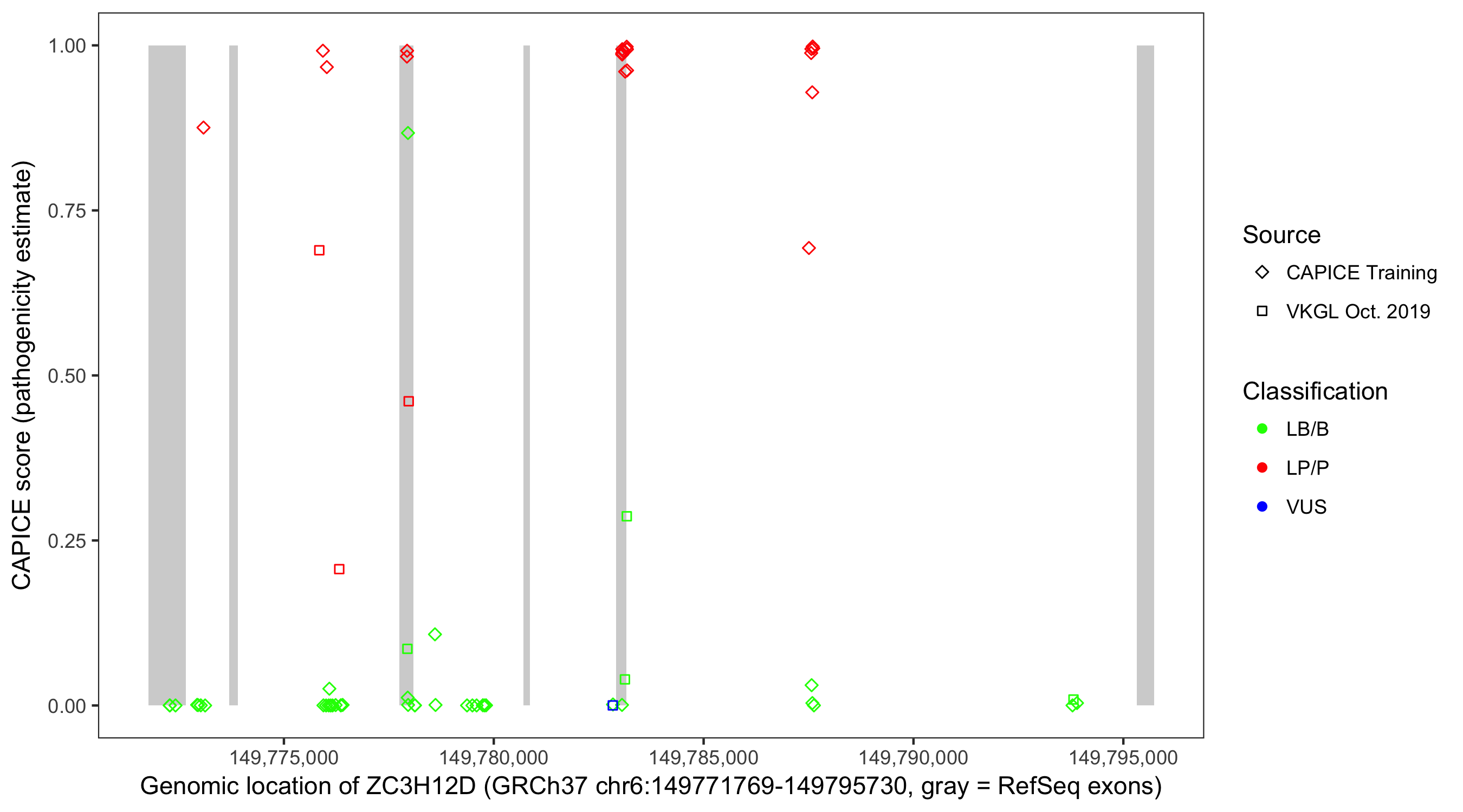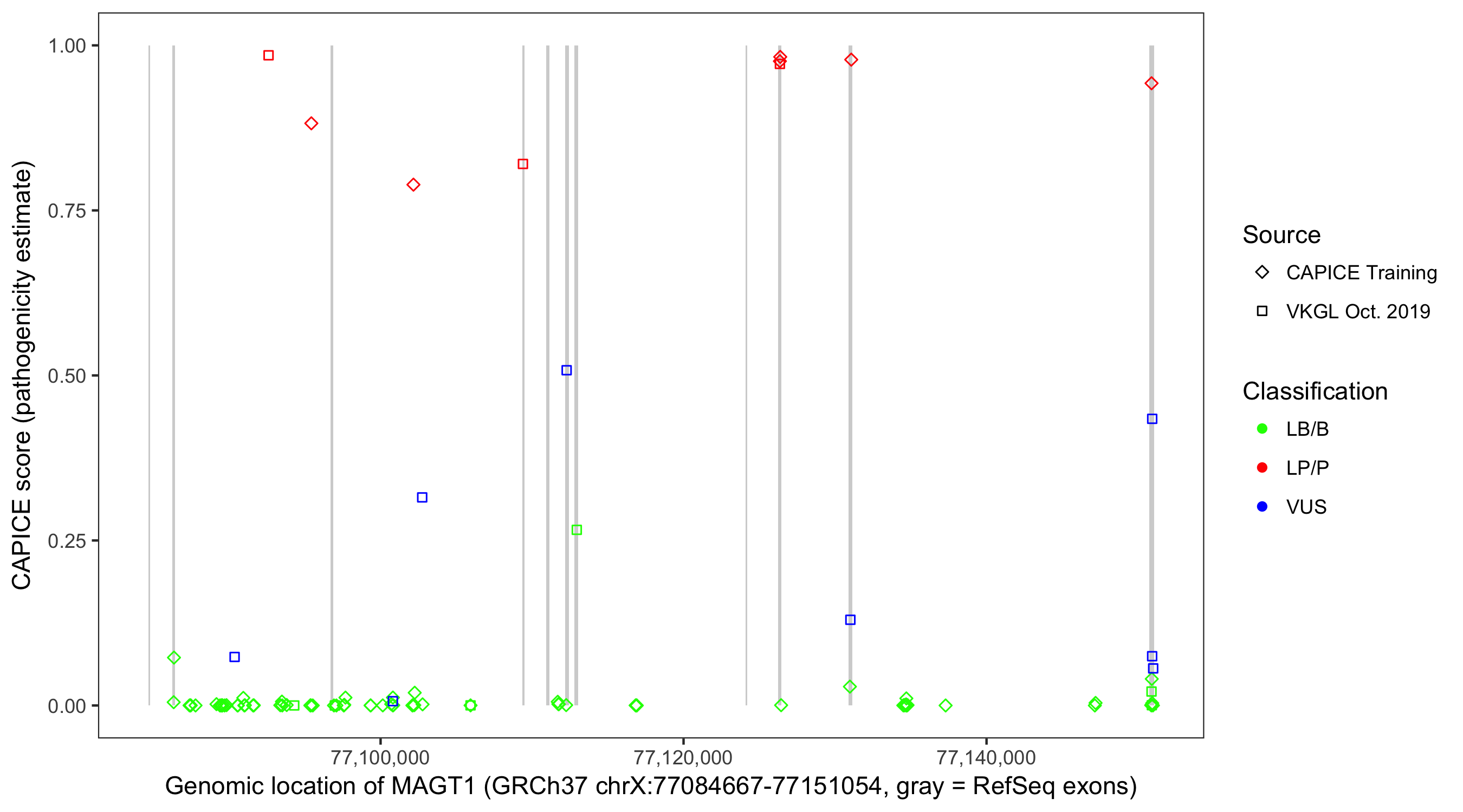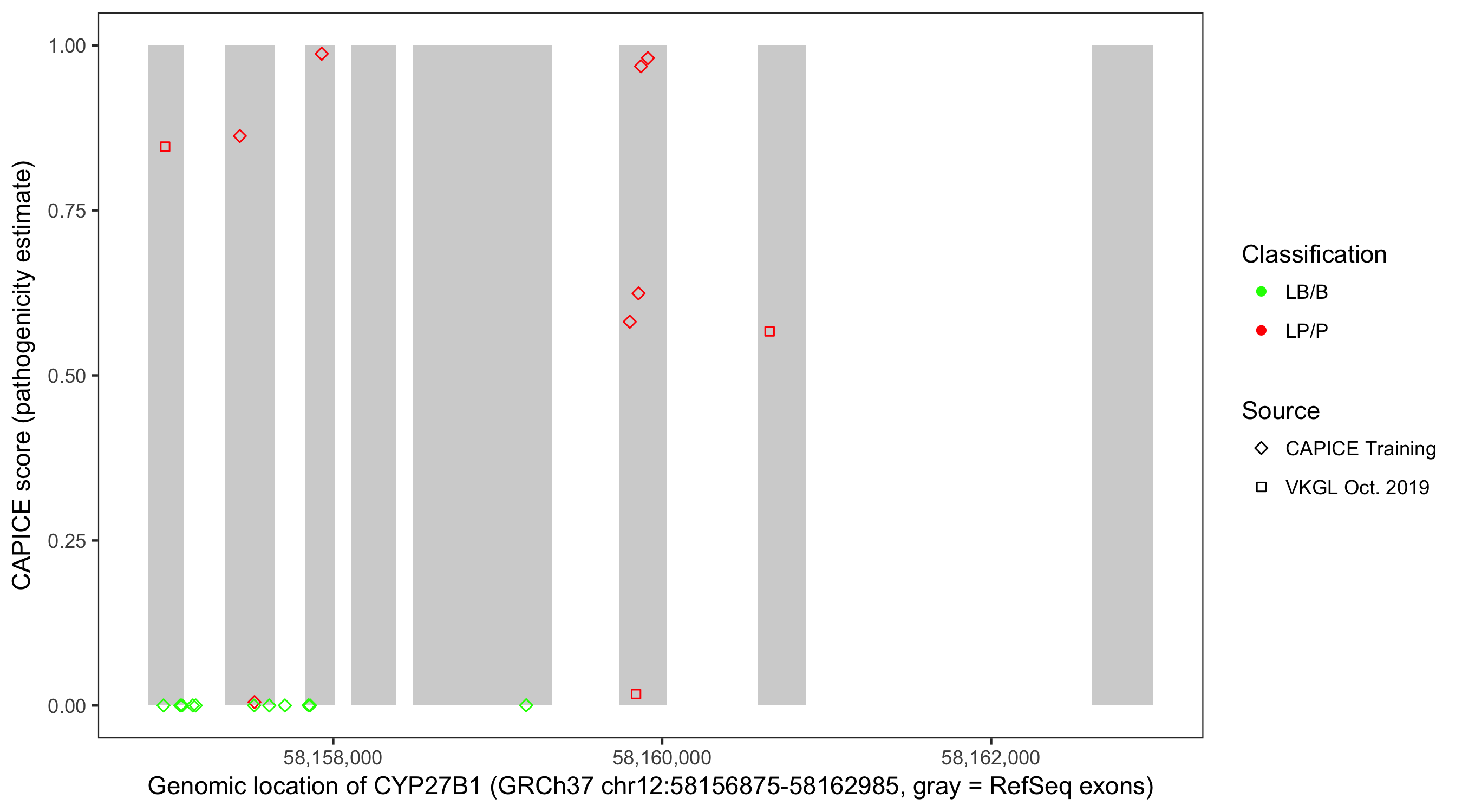 Shown are CAPICE train/test variants plus VKGL Oct 2019.