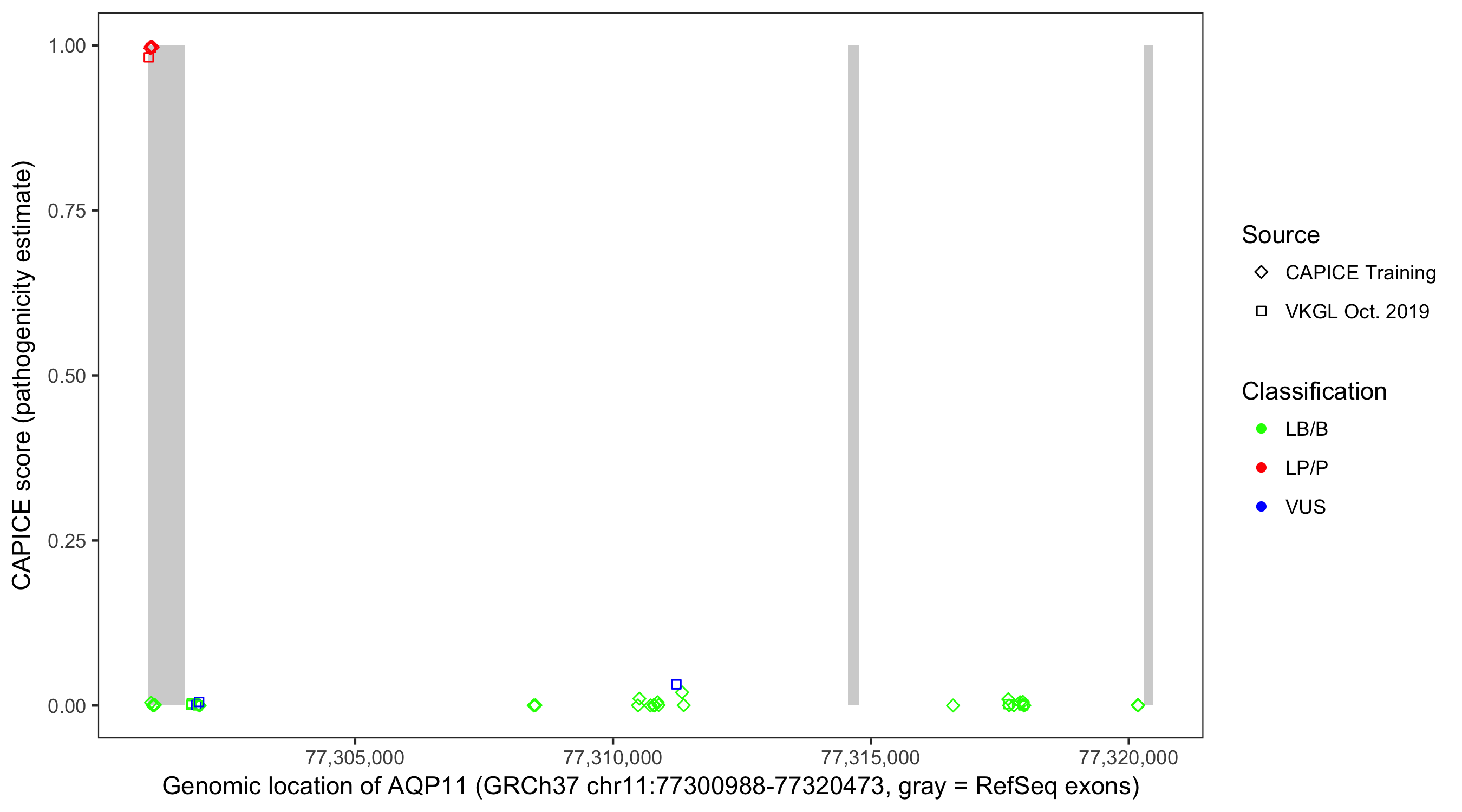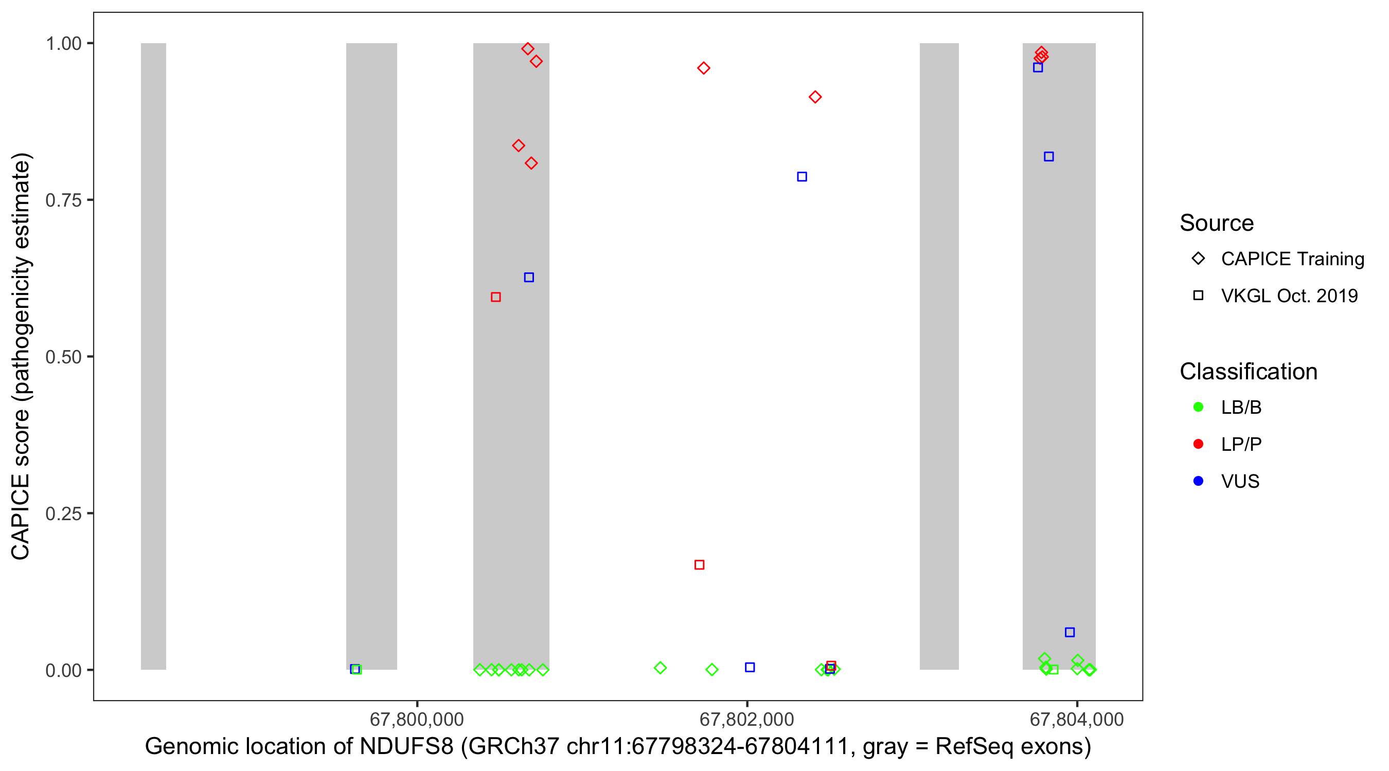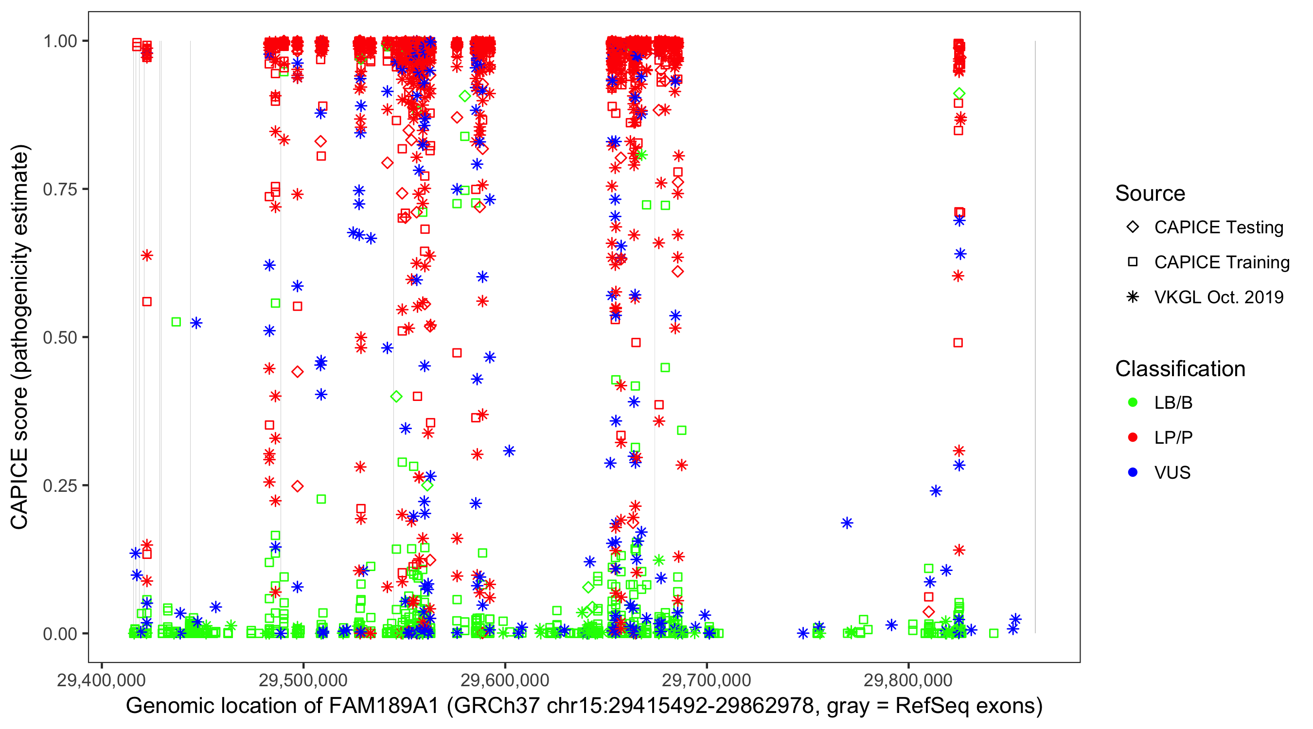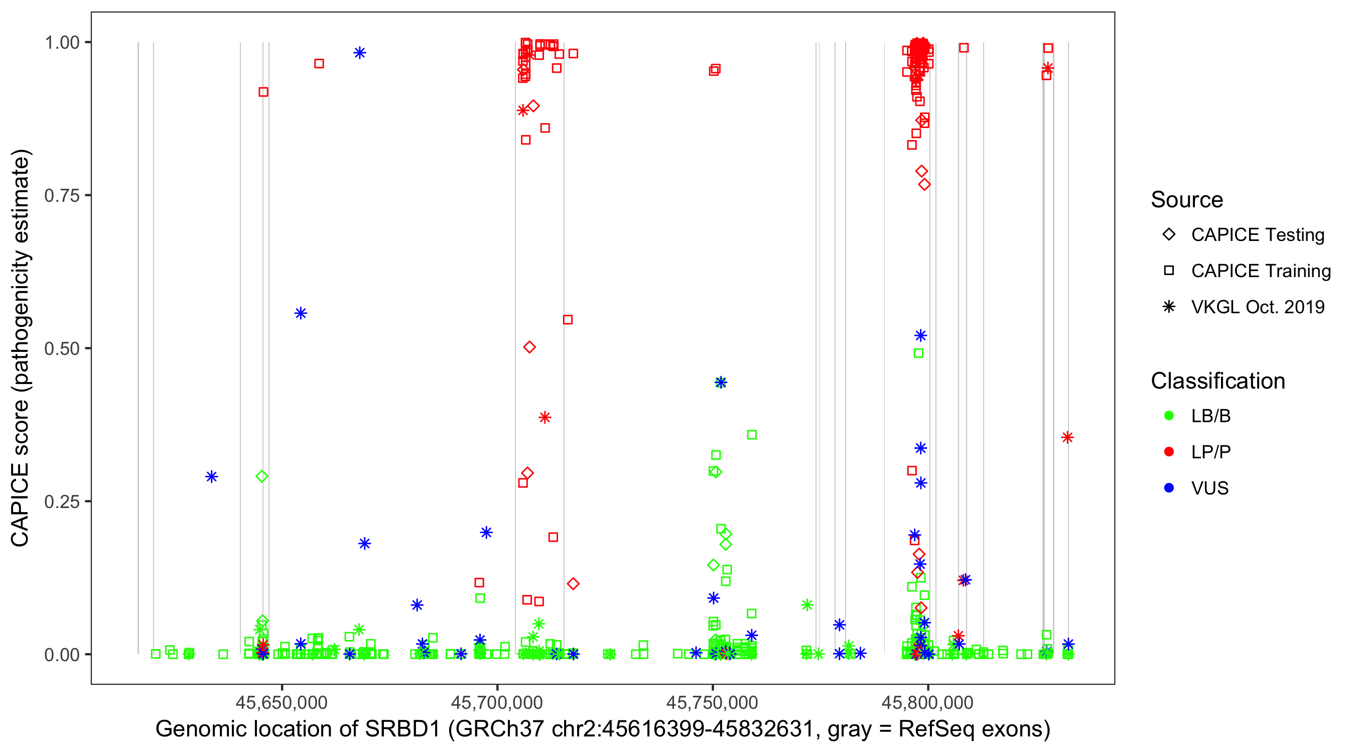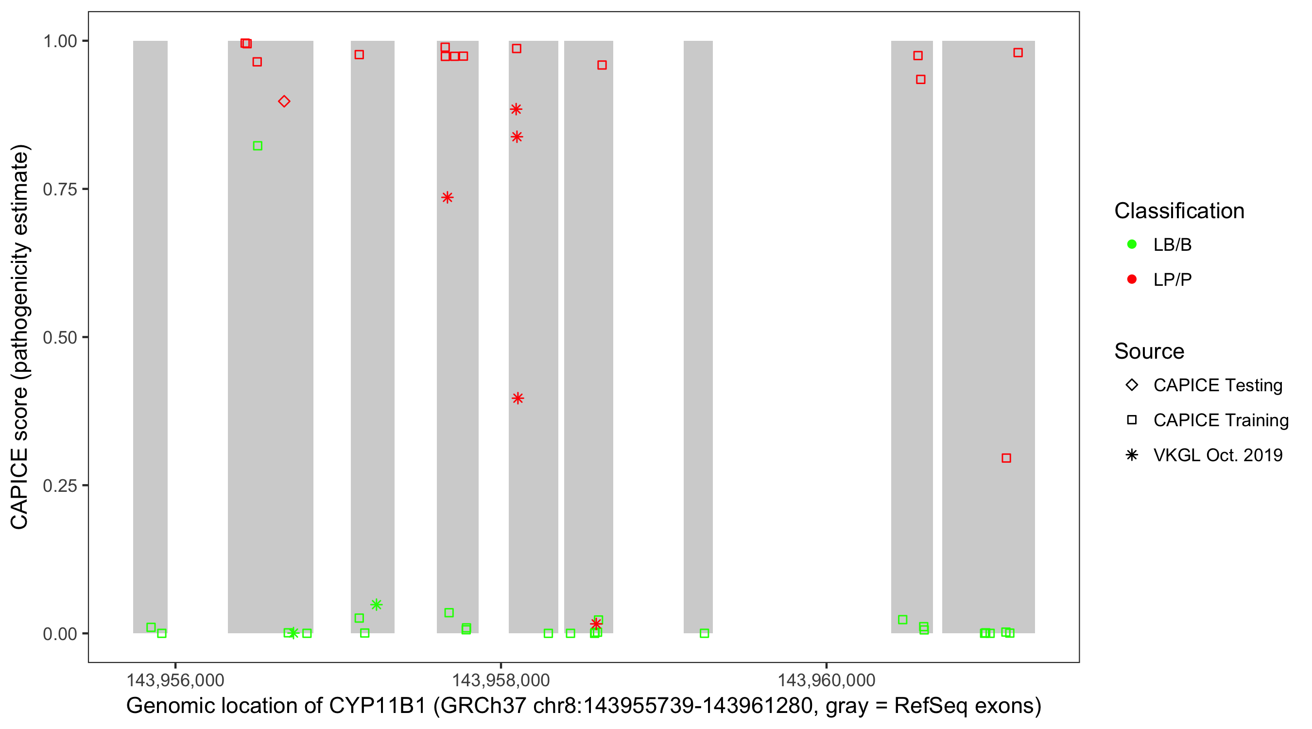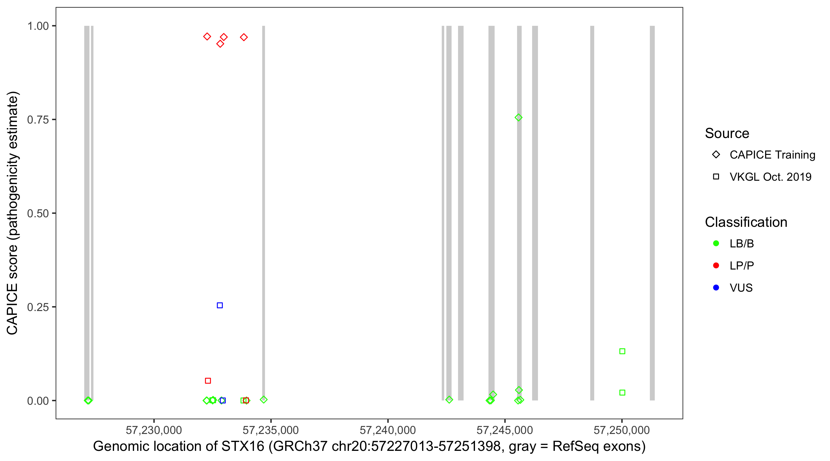 Shown are CAPICE train/test variants plus VKGL Oct 2019.