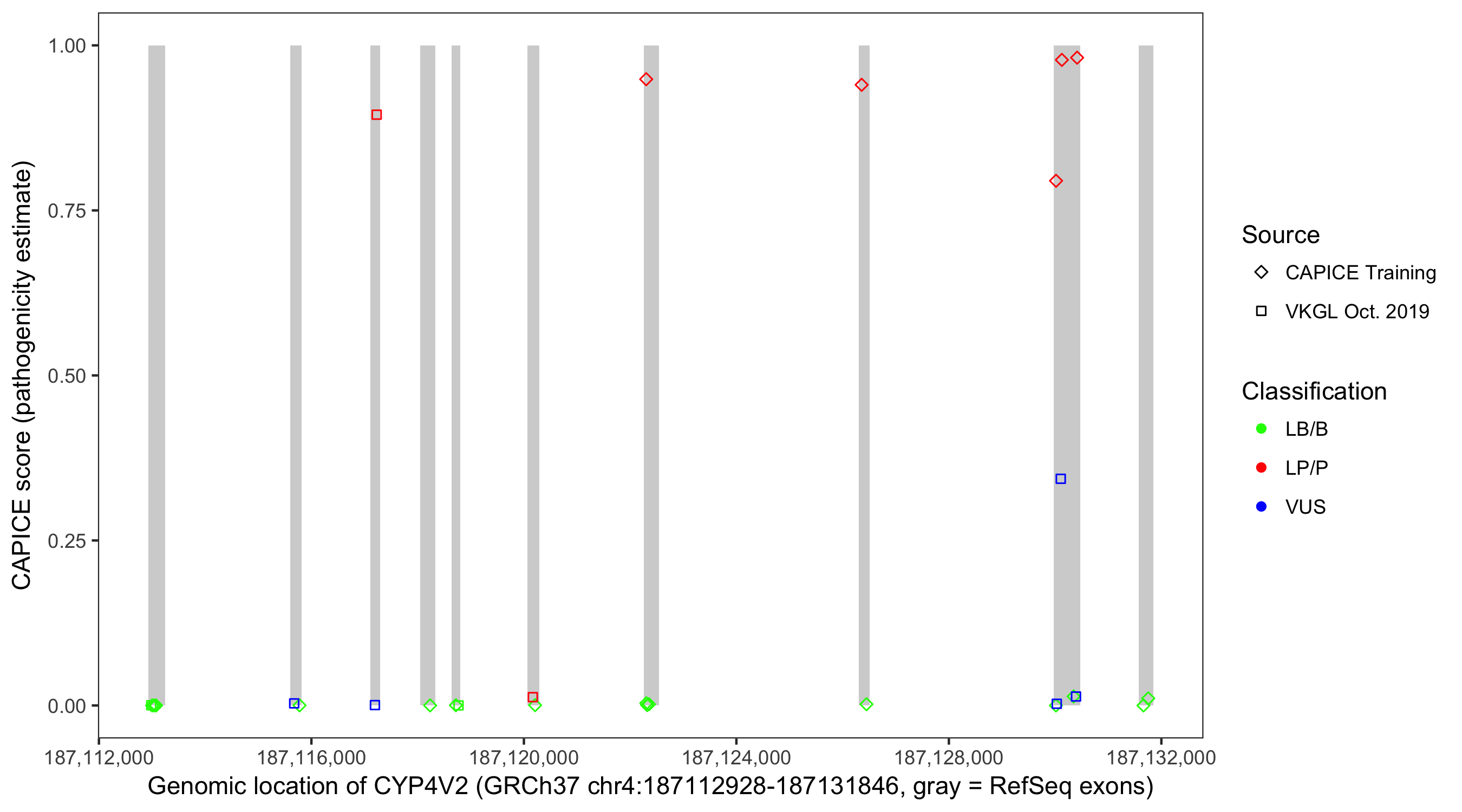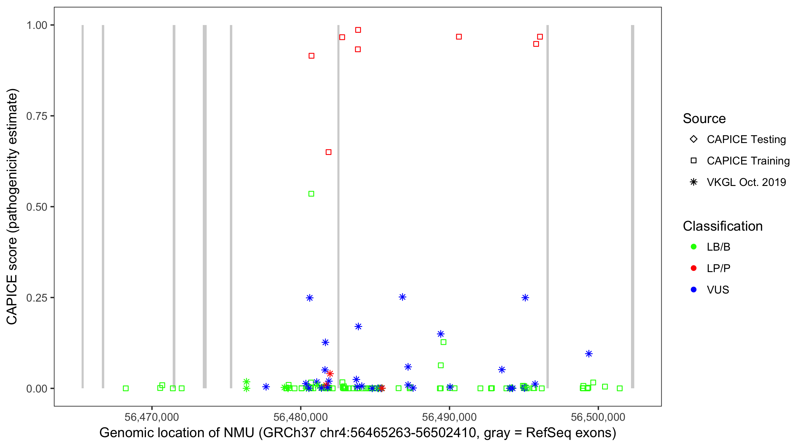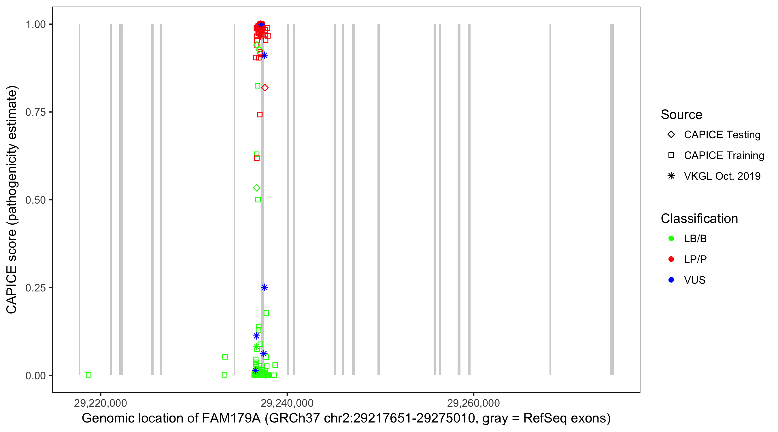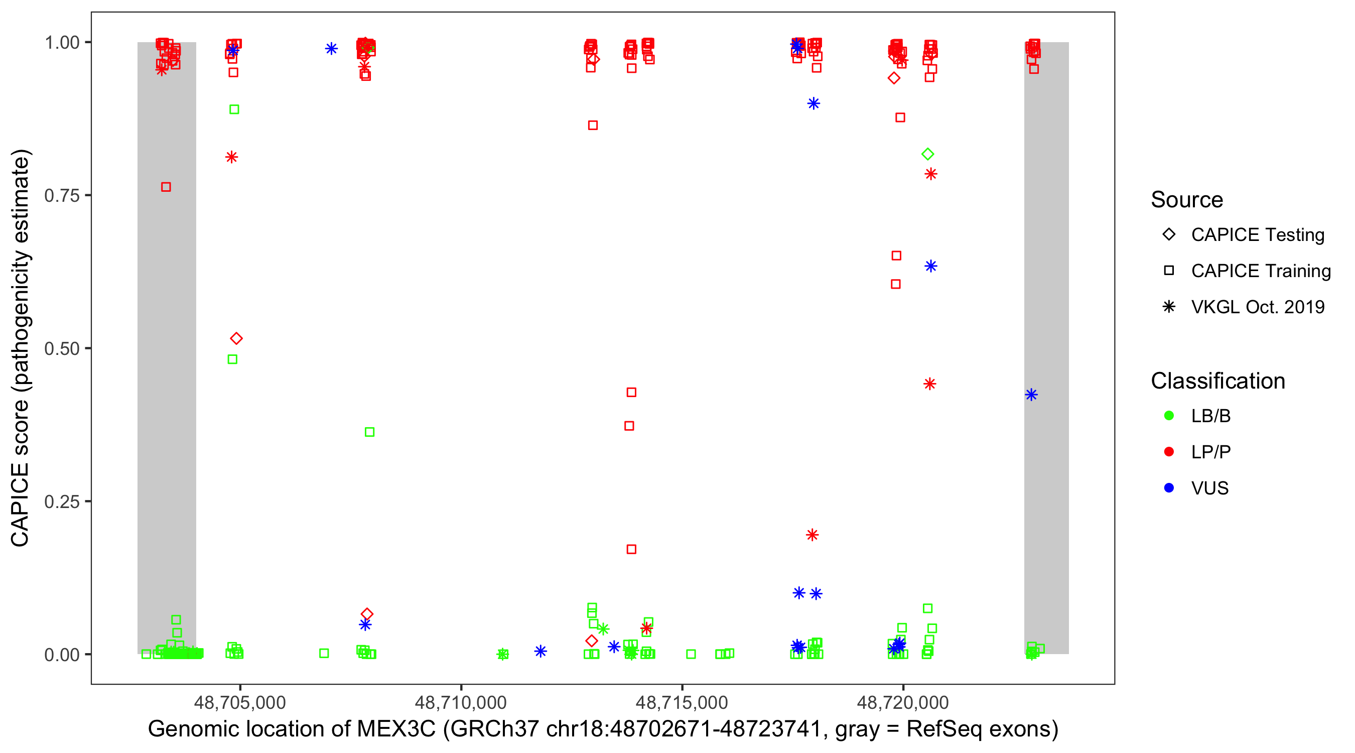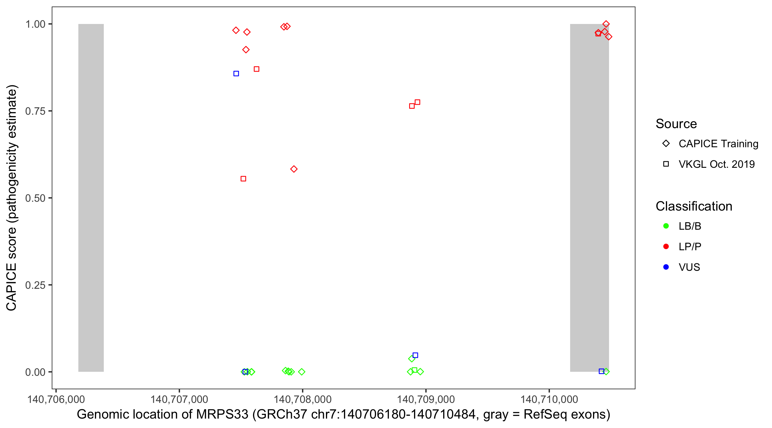 Shown are CAPICE train/test variants plus VKGL Oct 2019.