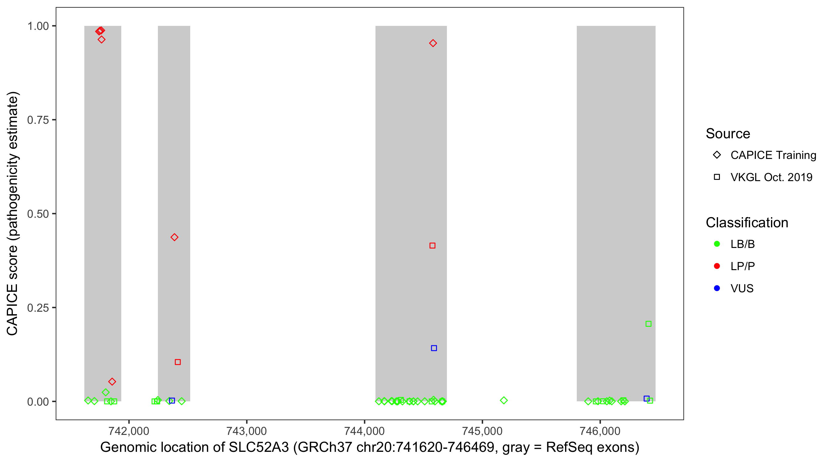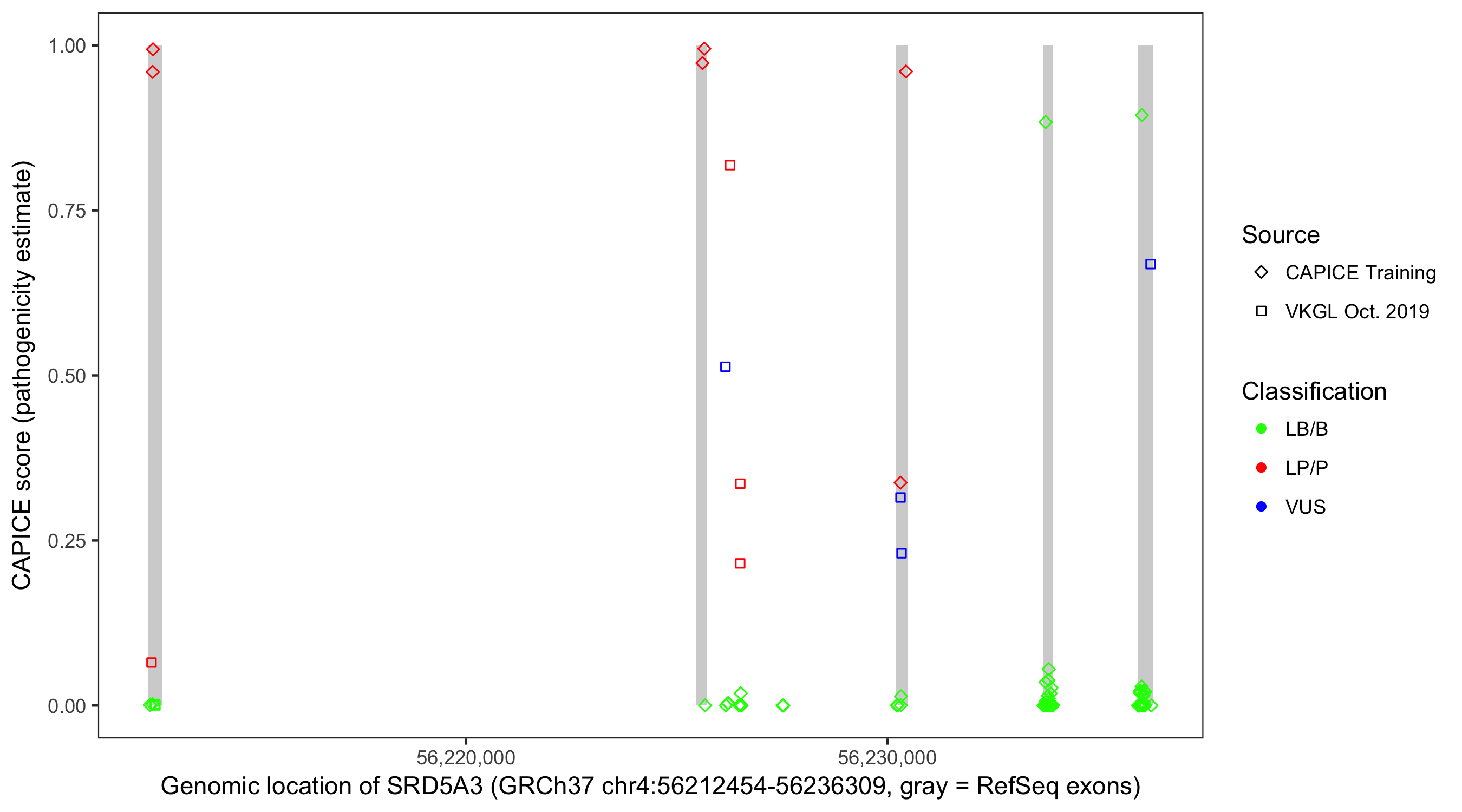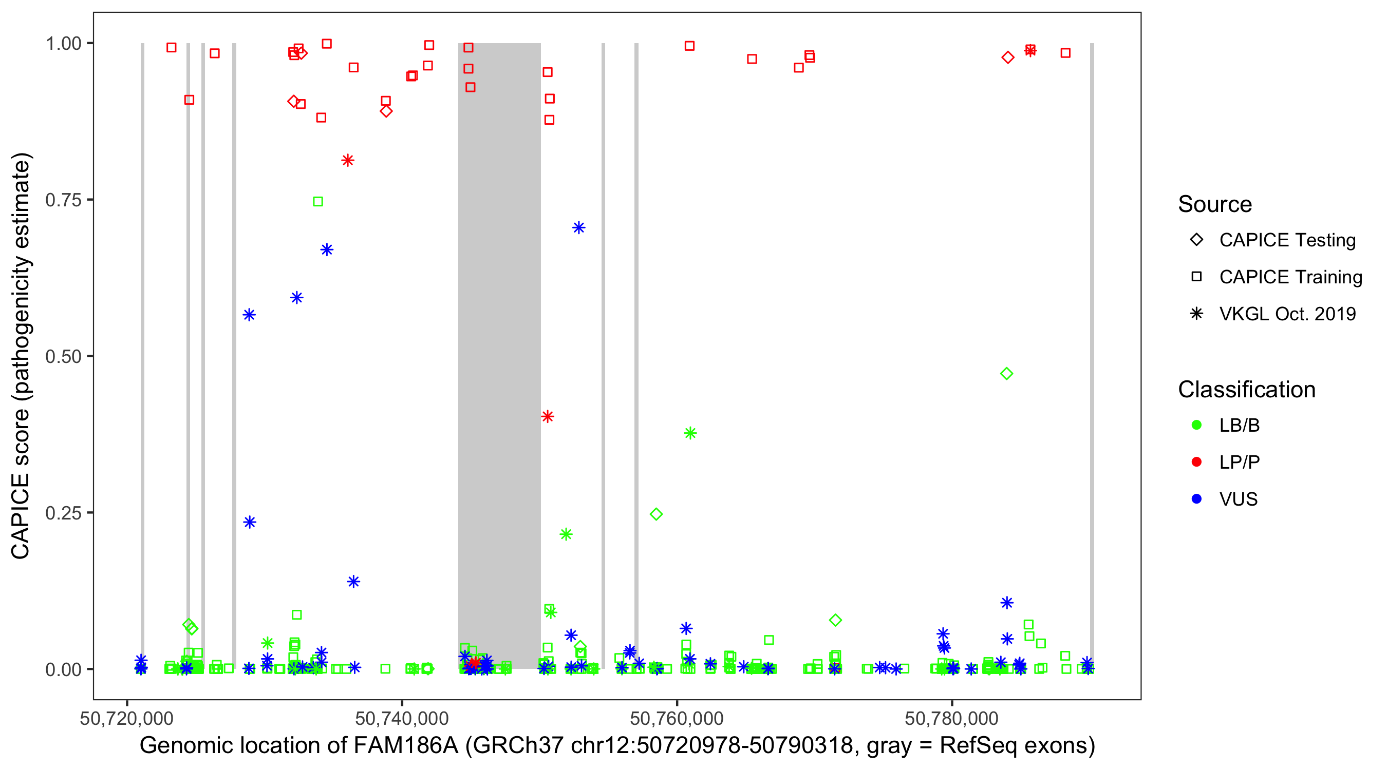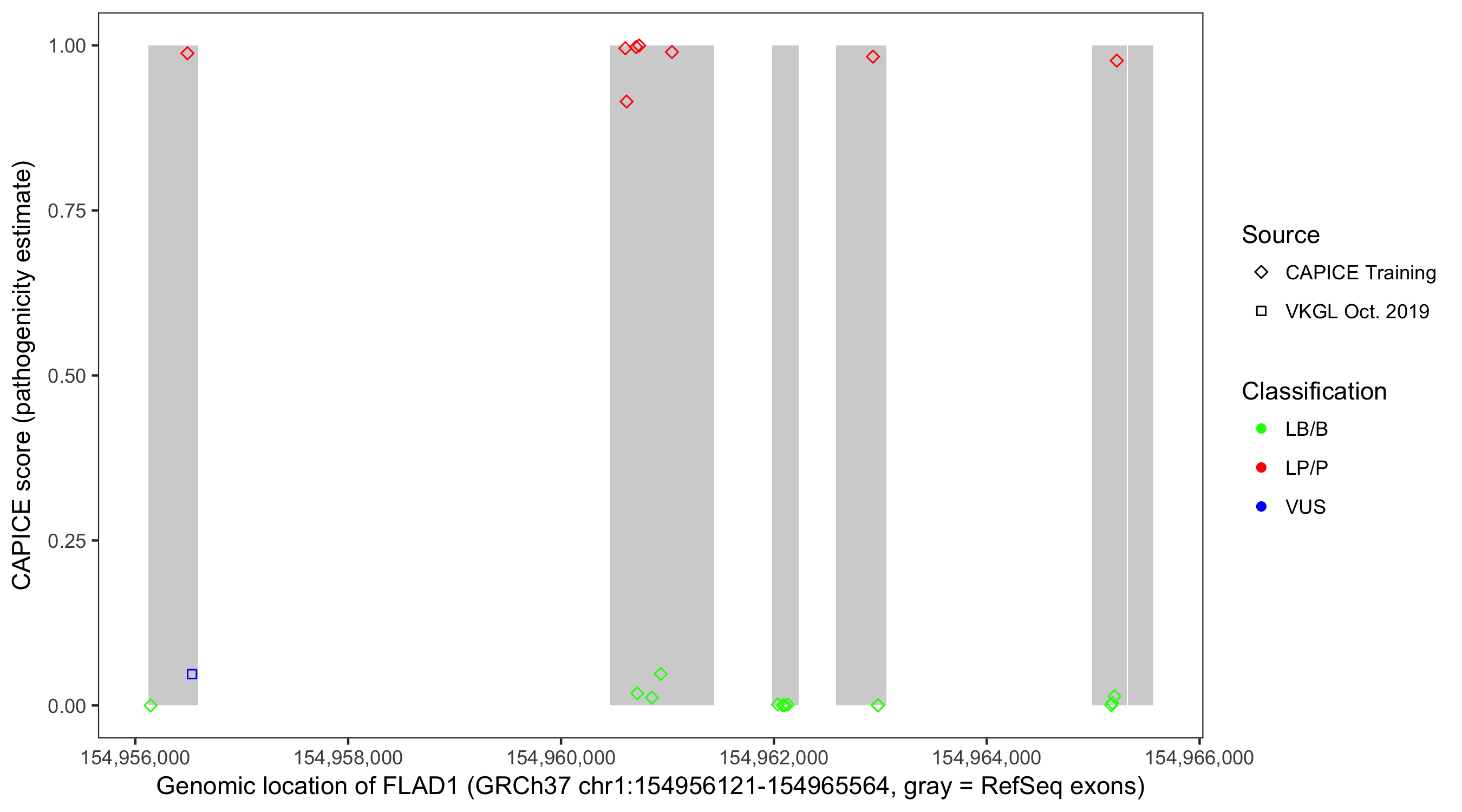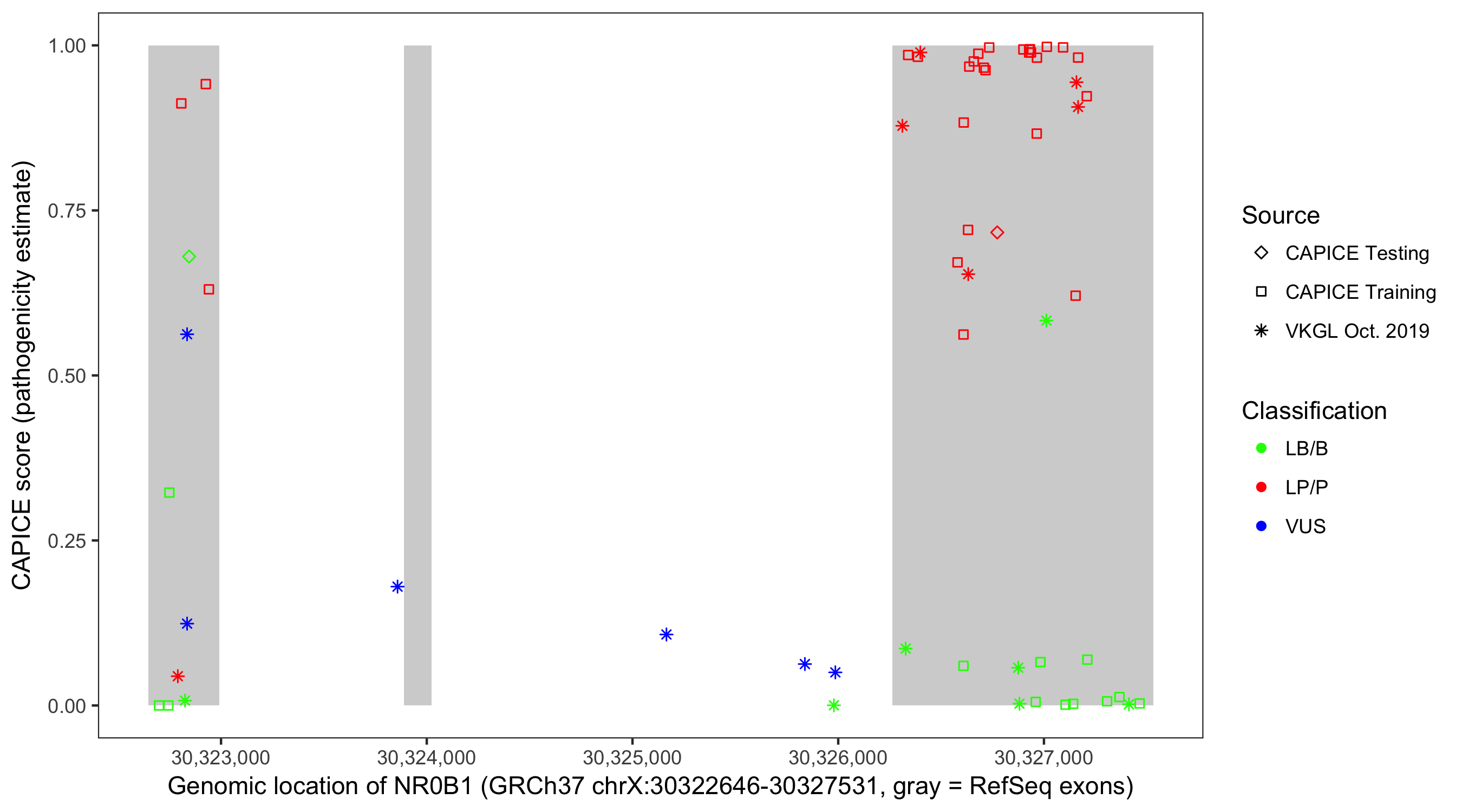 Shown are CAPICE train/test variants plus VKGL Oct 2019.