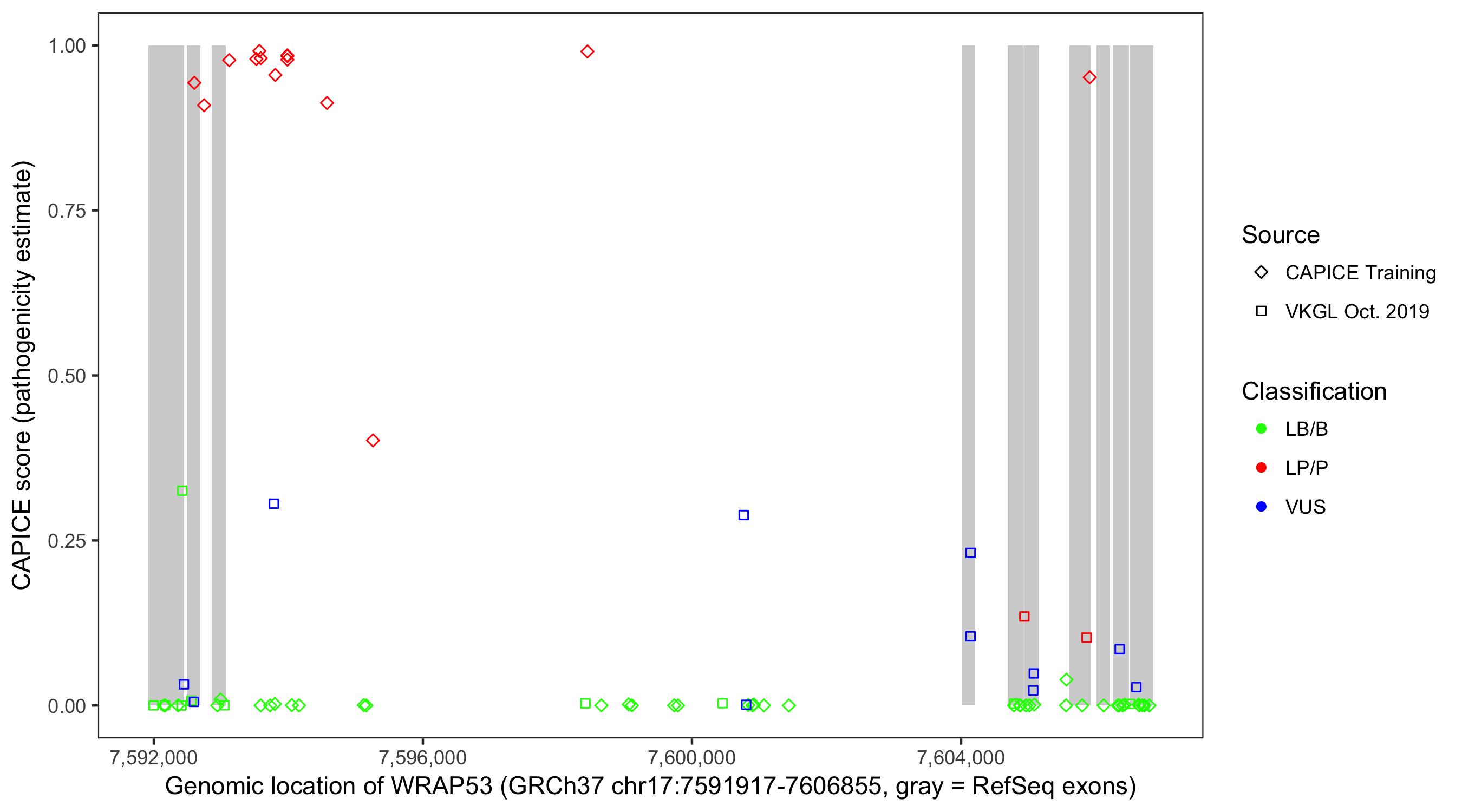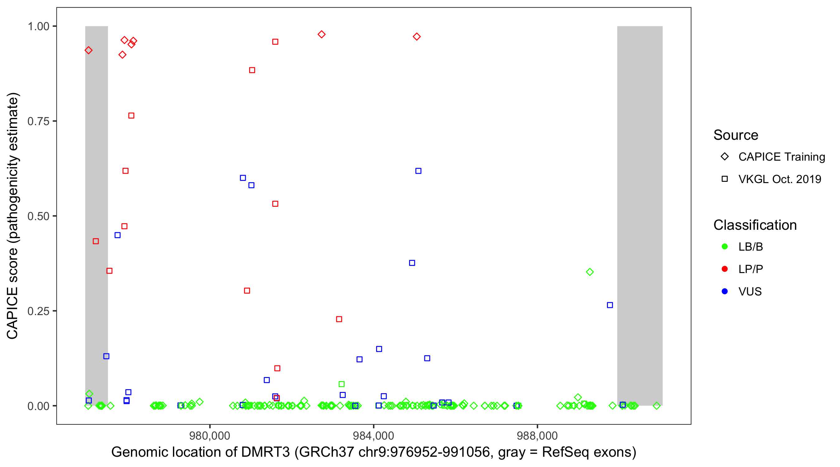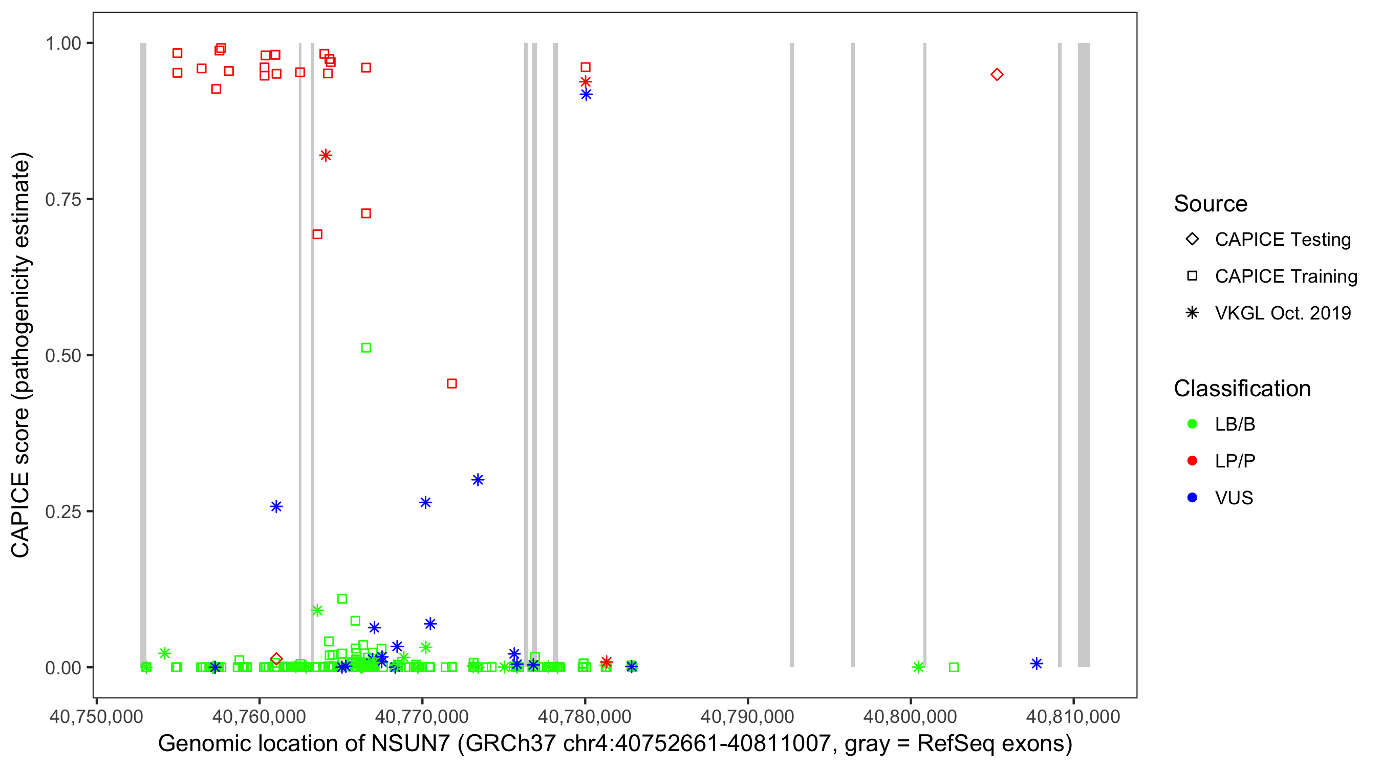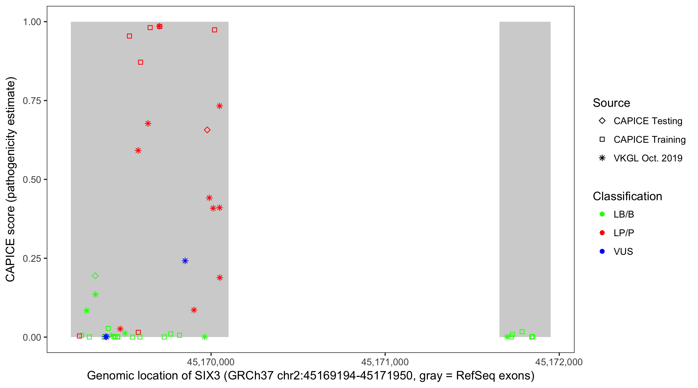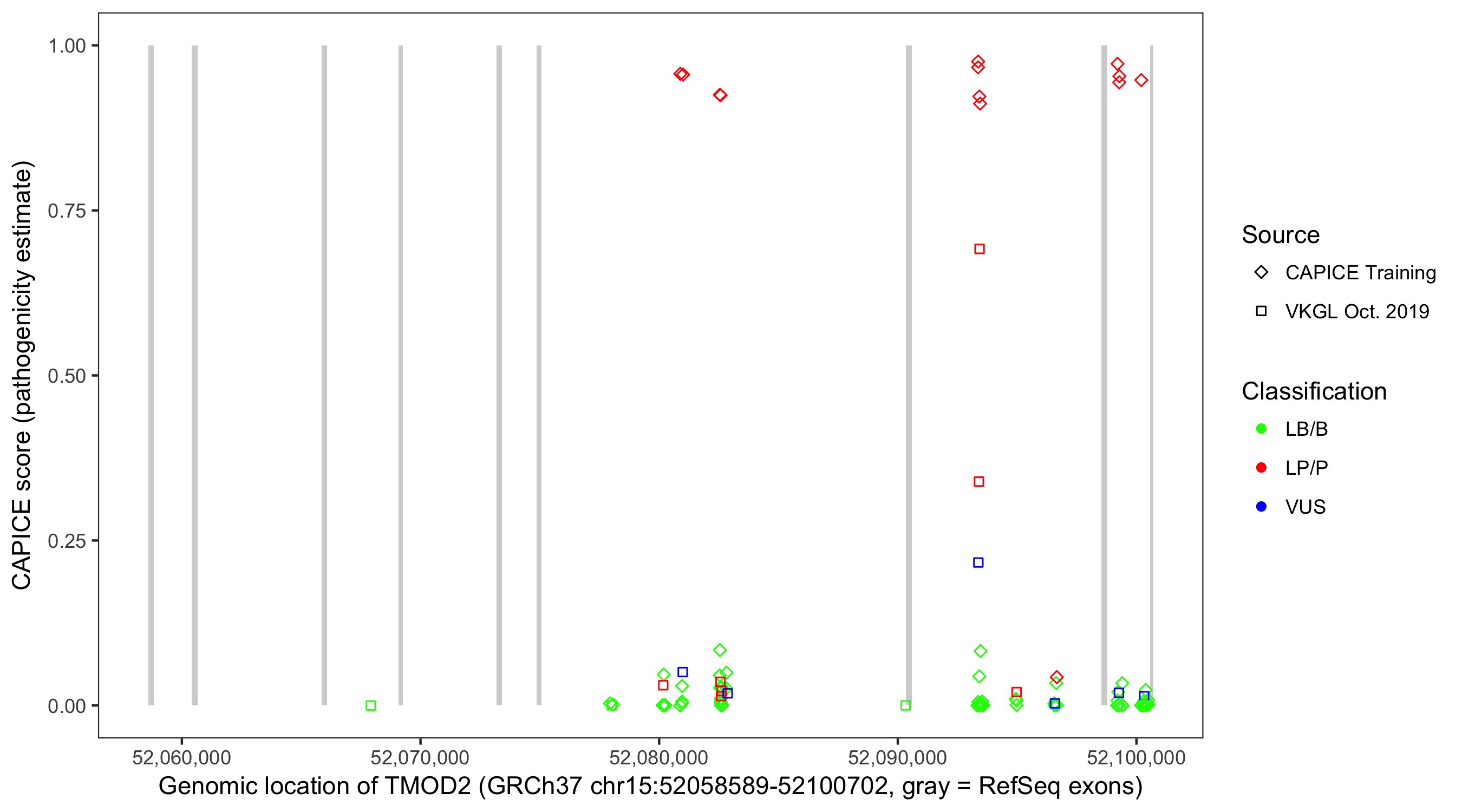 Shown are CAPICE train/test variants plus VKGL Oct 2019.