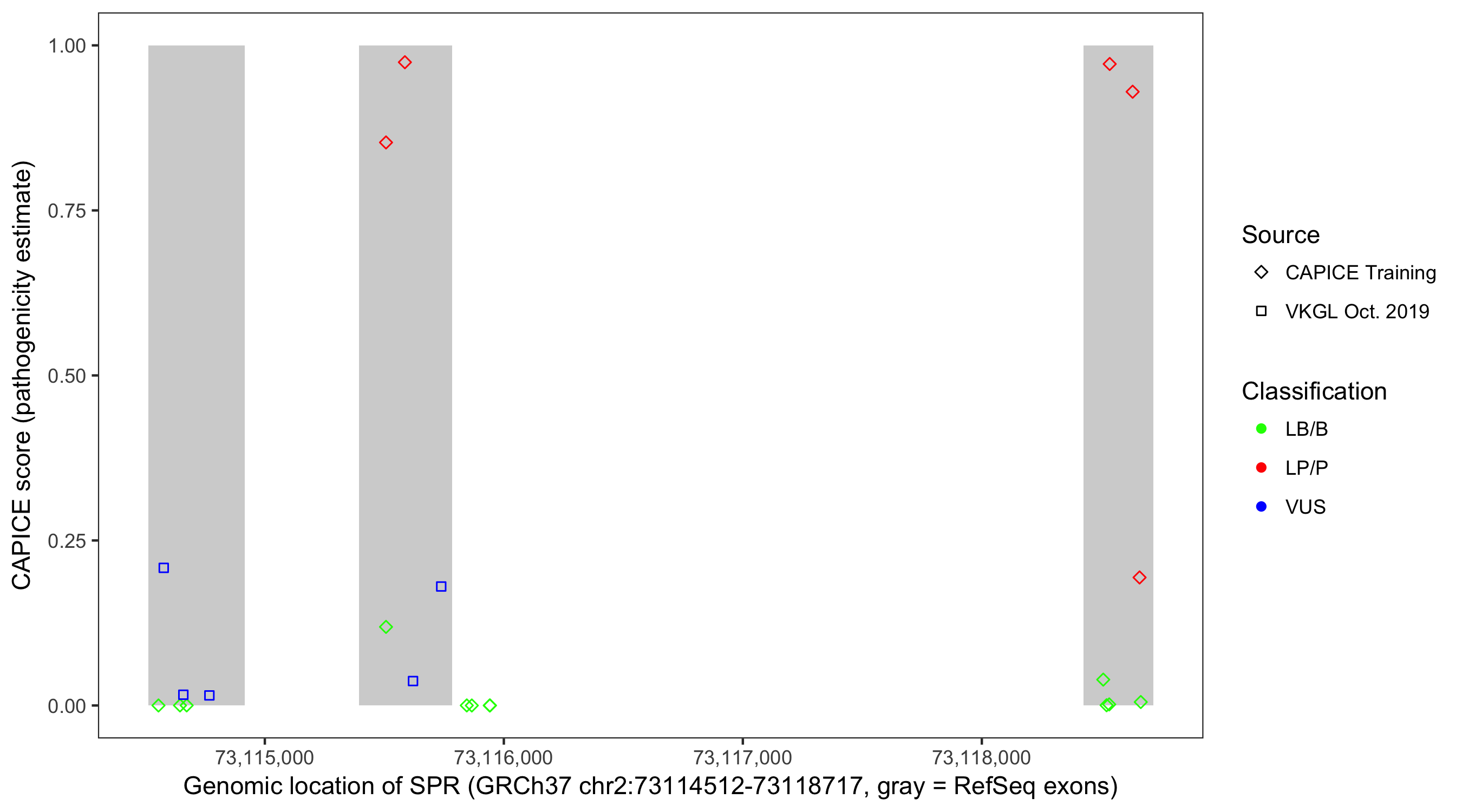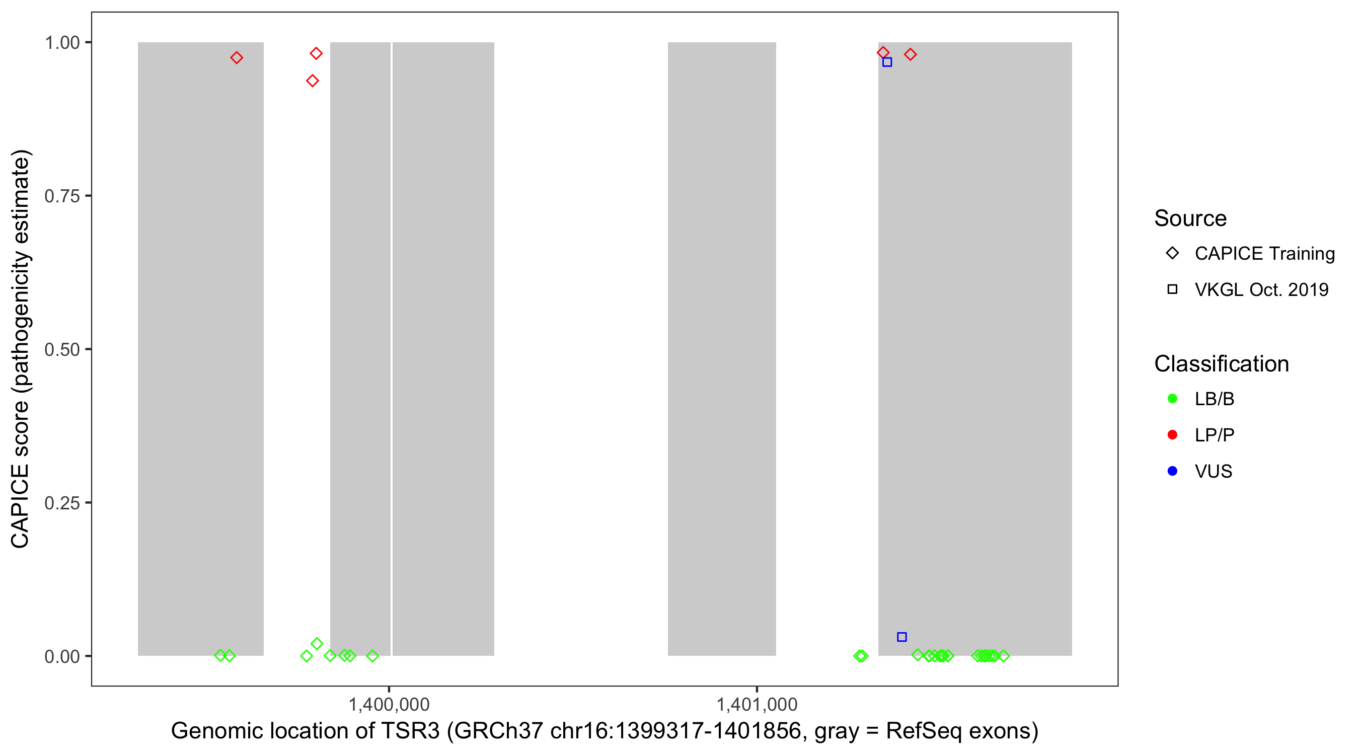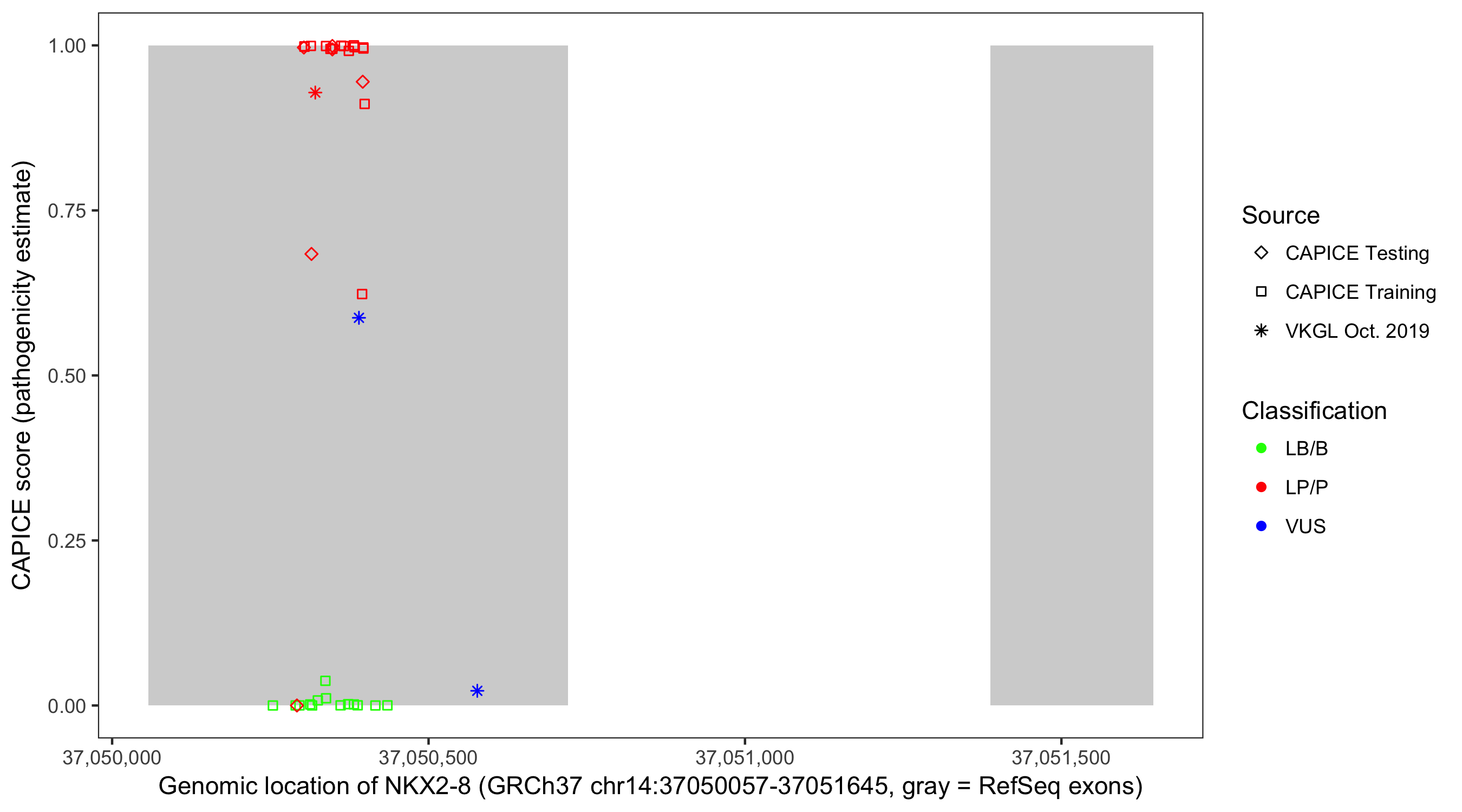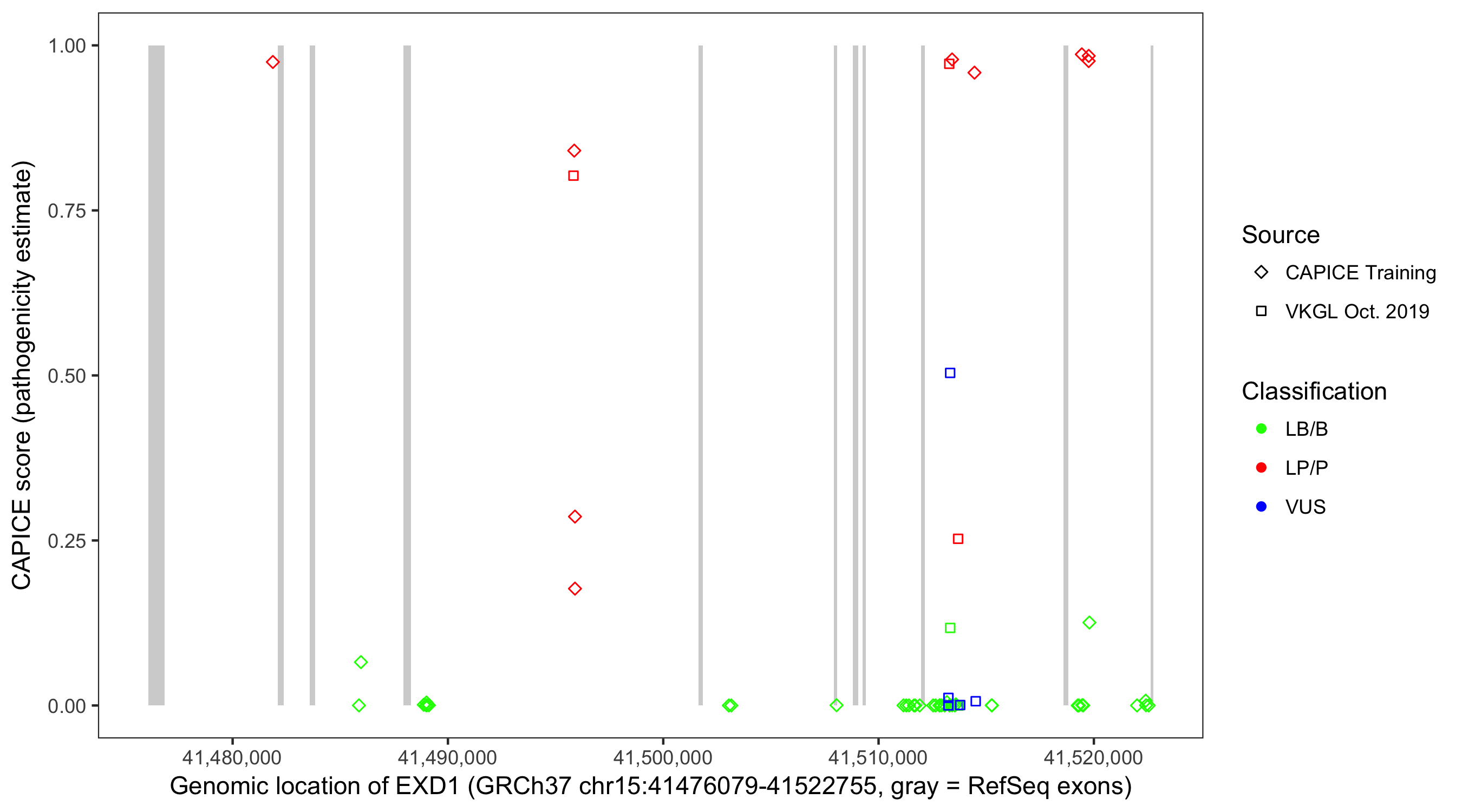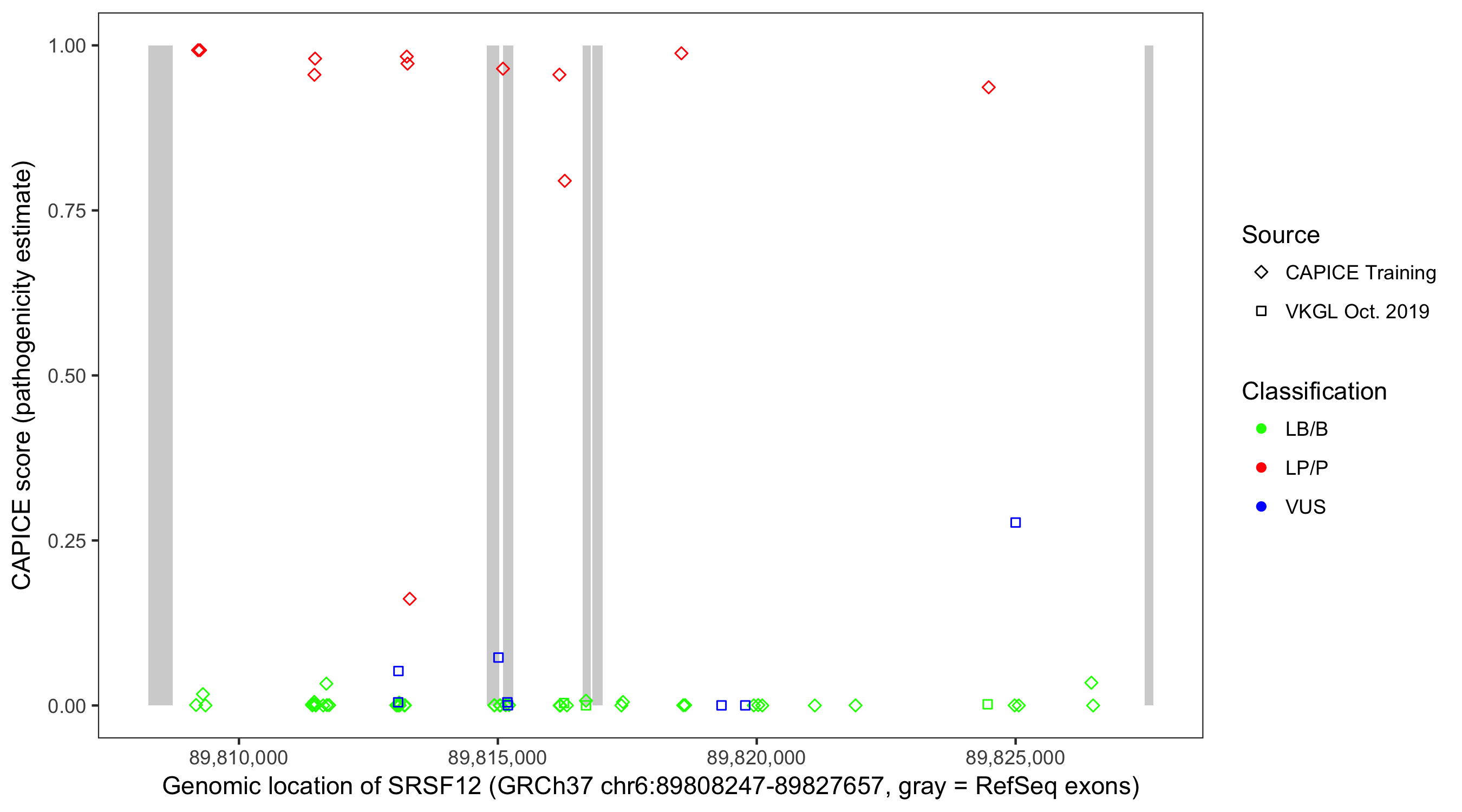 Shown are CAPICE train/test variants plus VKGL Oct 2019.