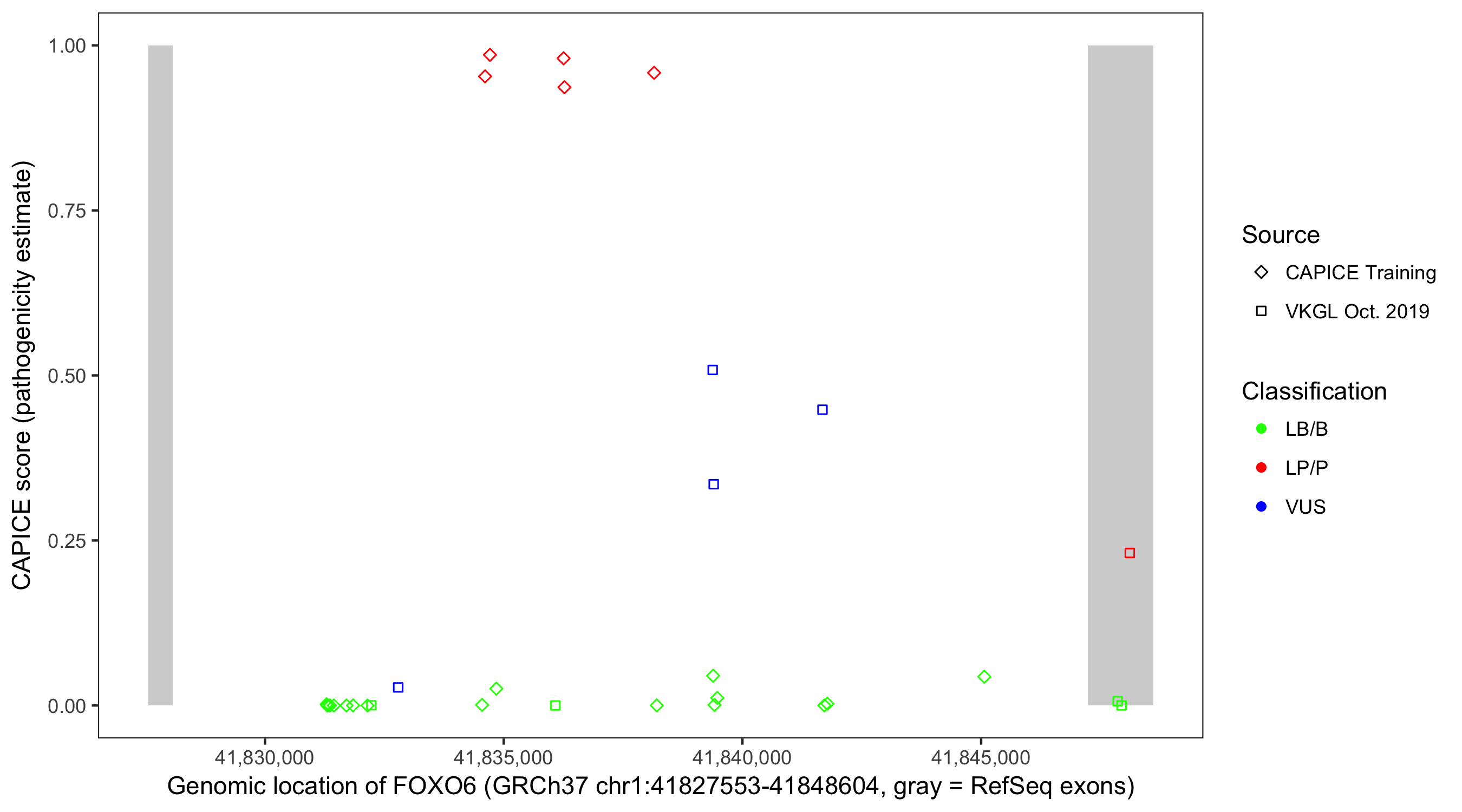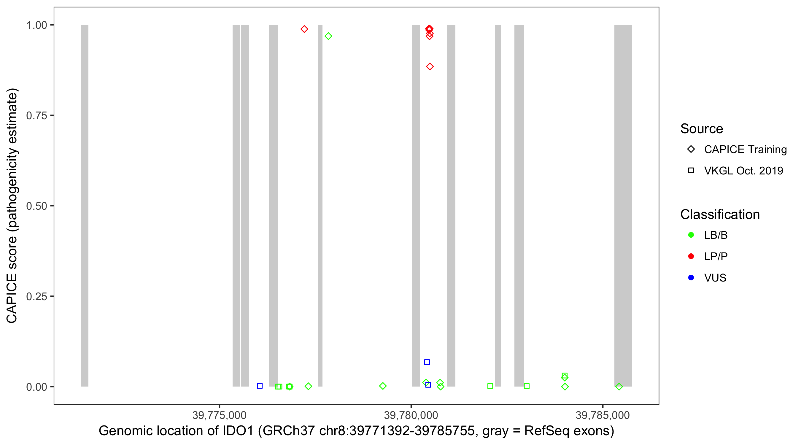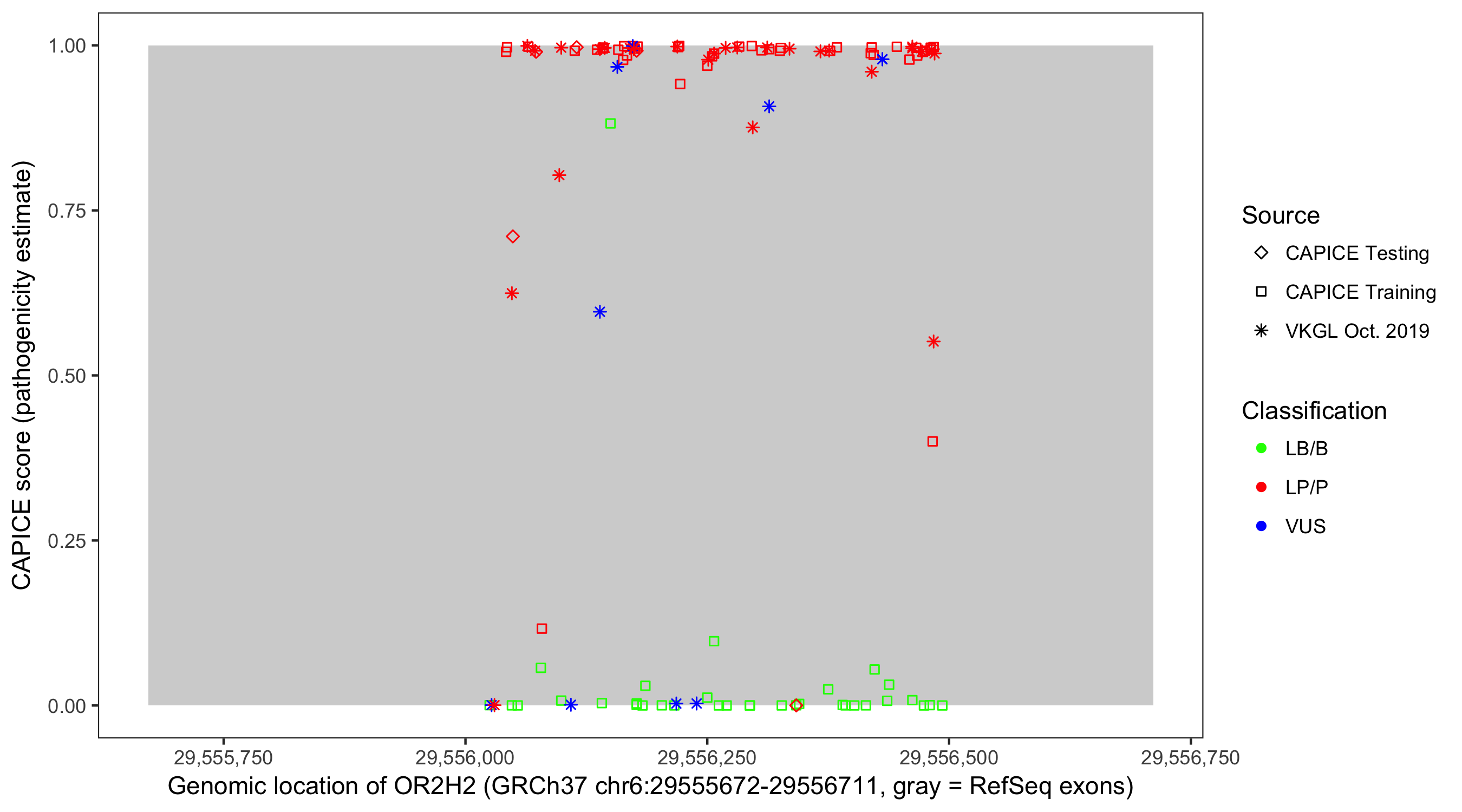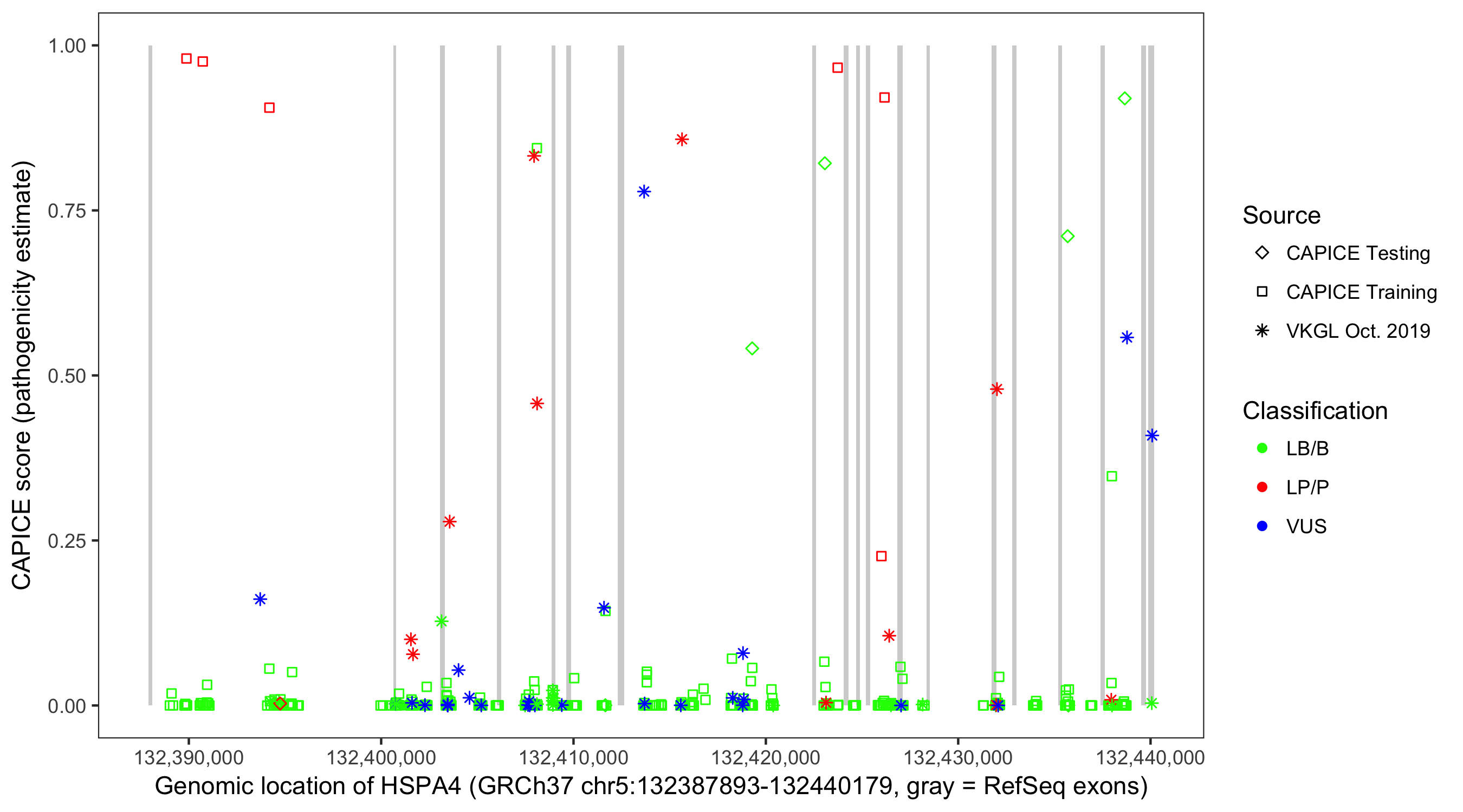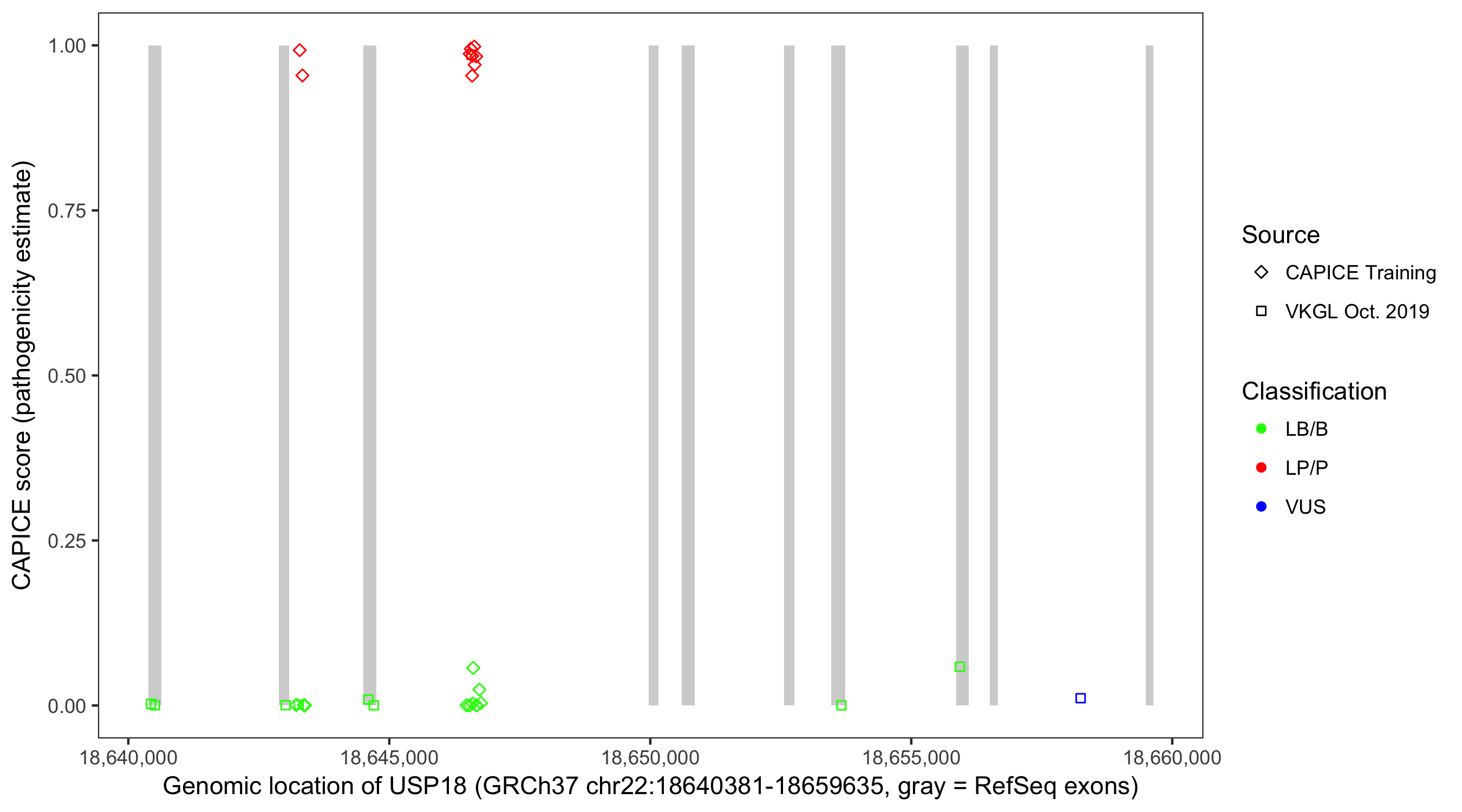 Shown are CAPICE train/test variants plus VKGL Oct 2019.