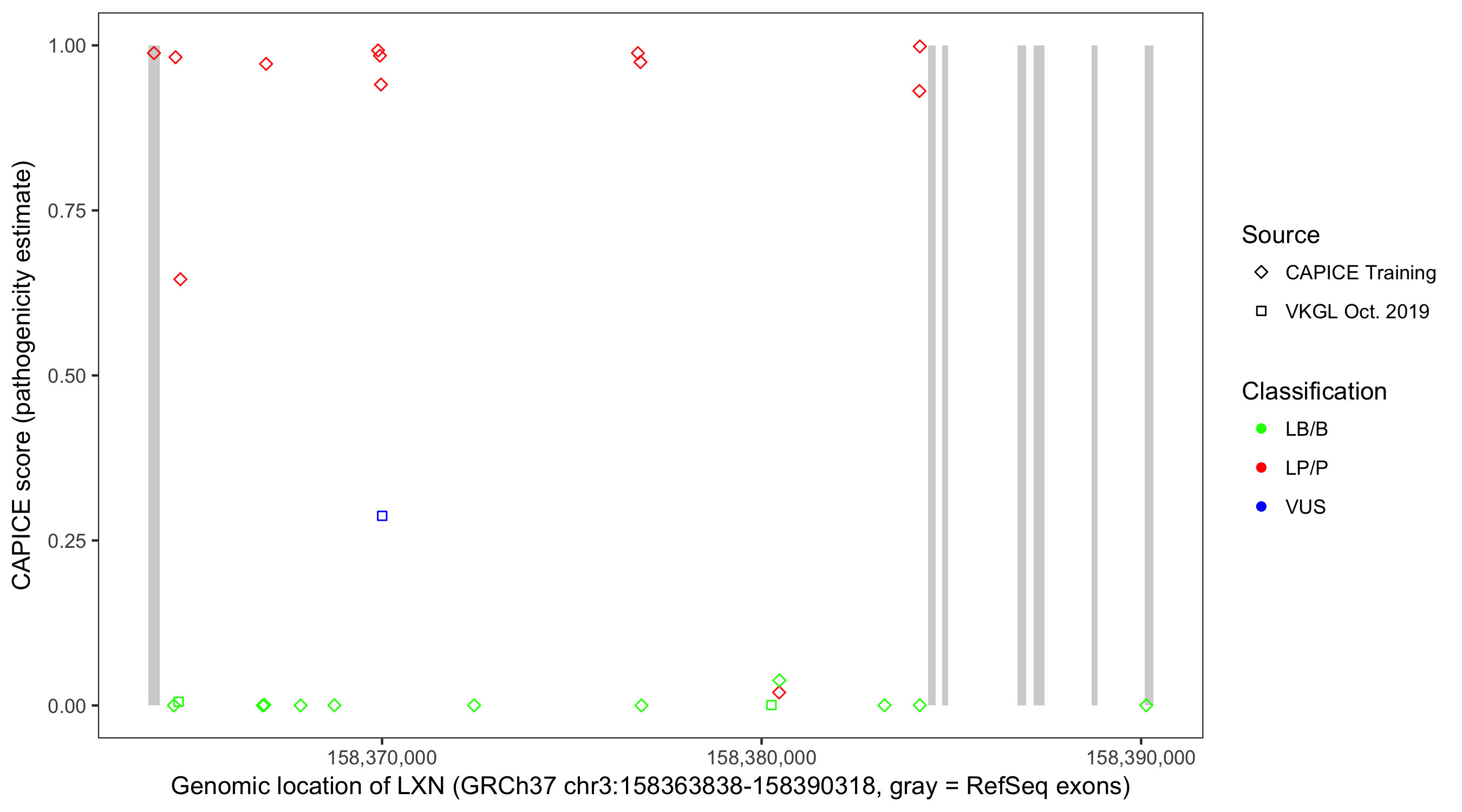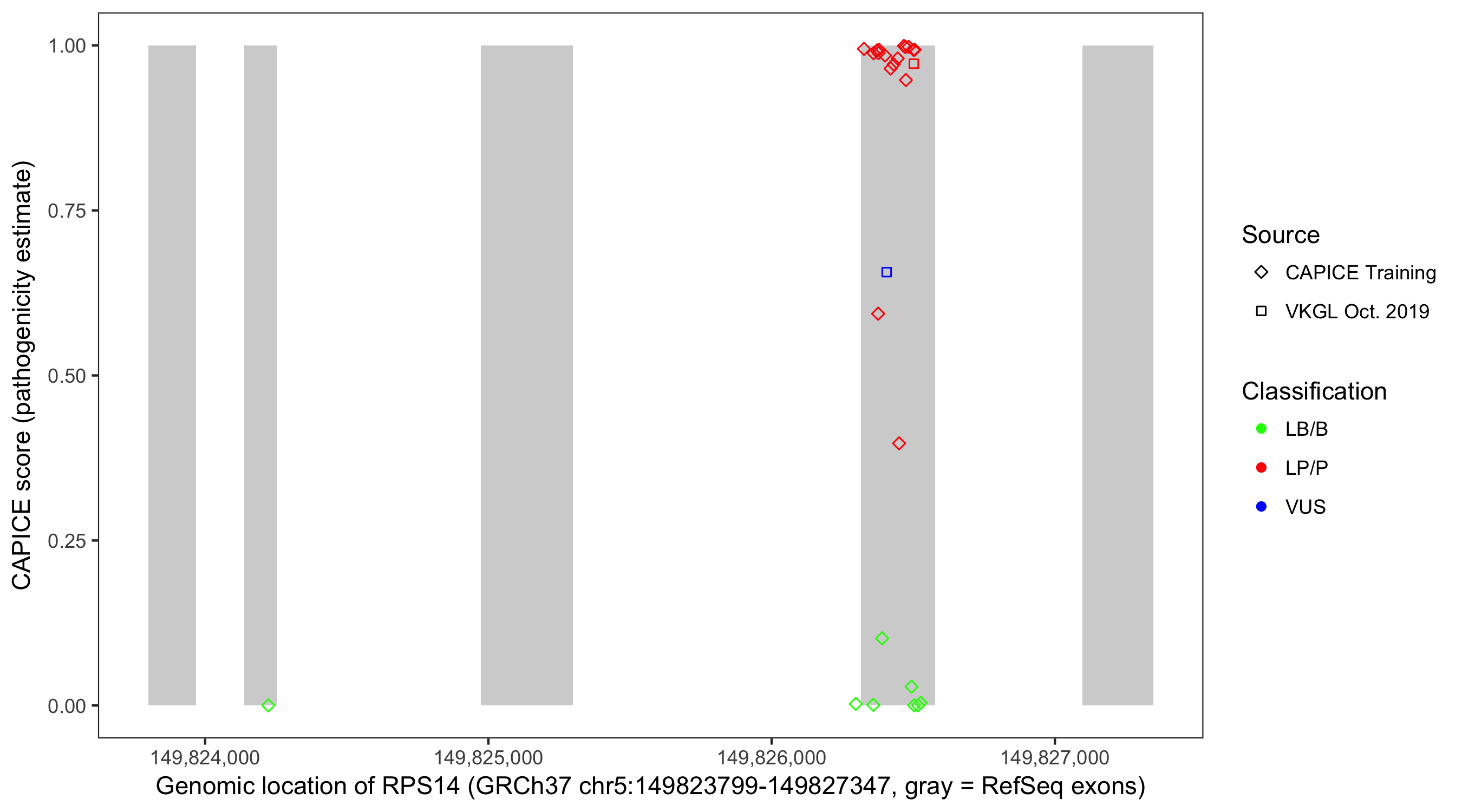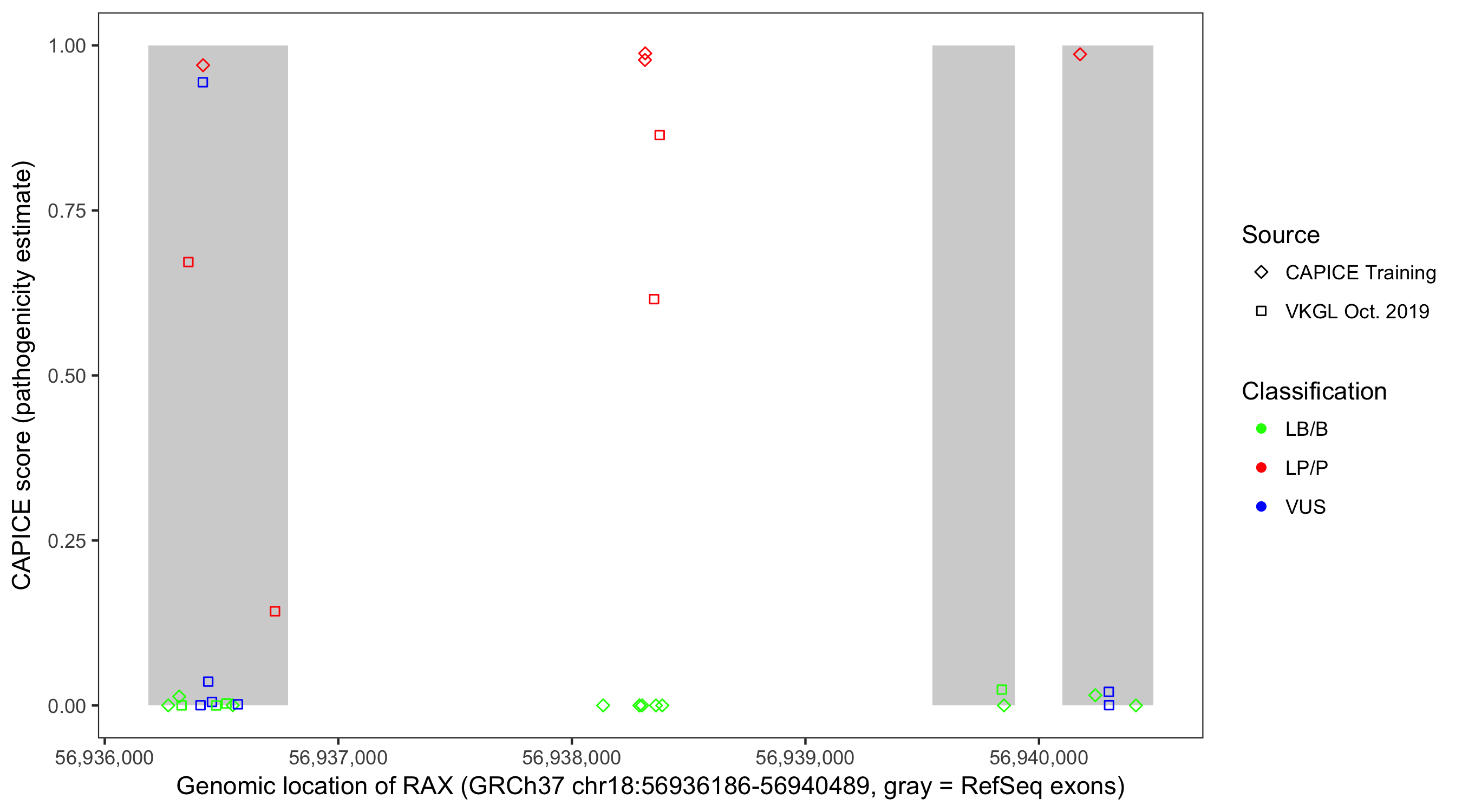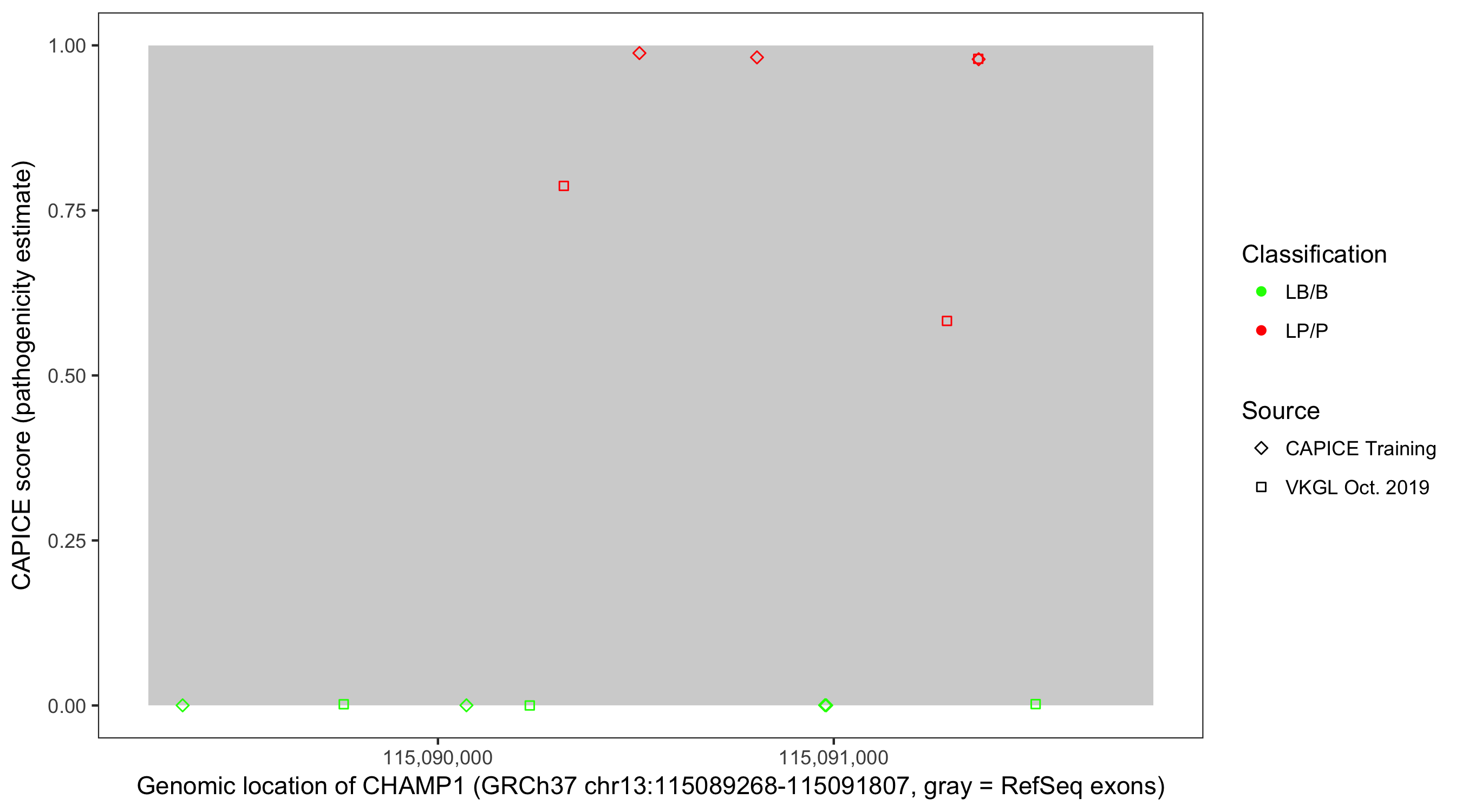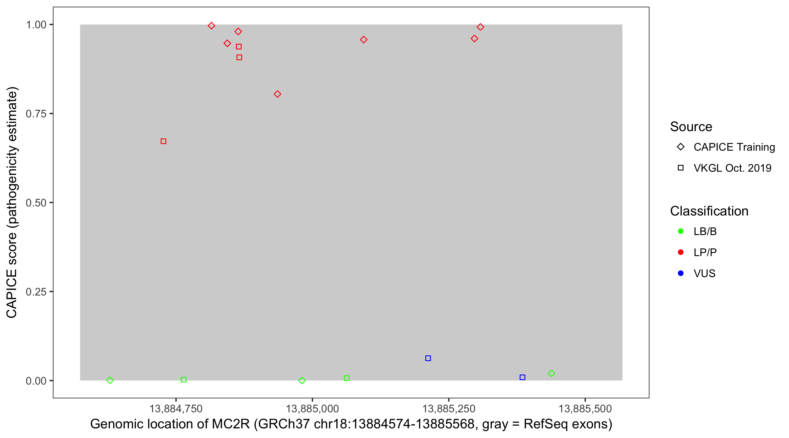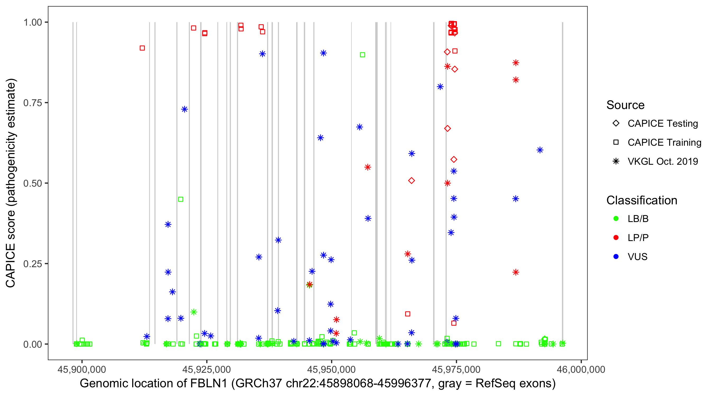 Shown are CAPICE train/test variants plus VKGL Oct 2019.