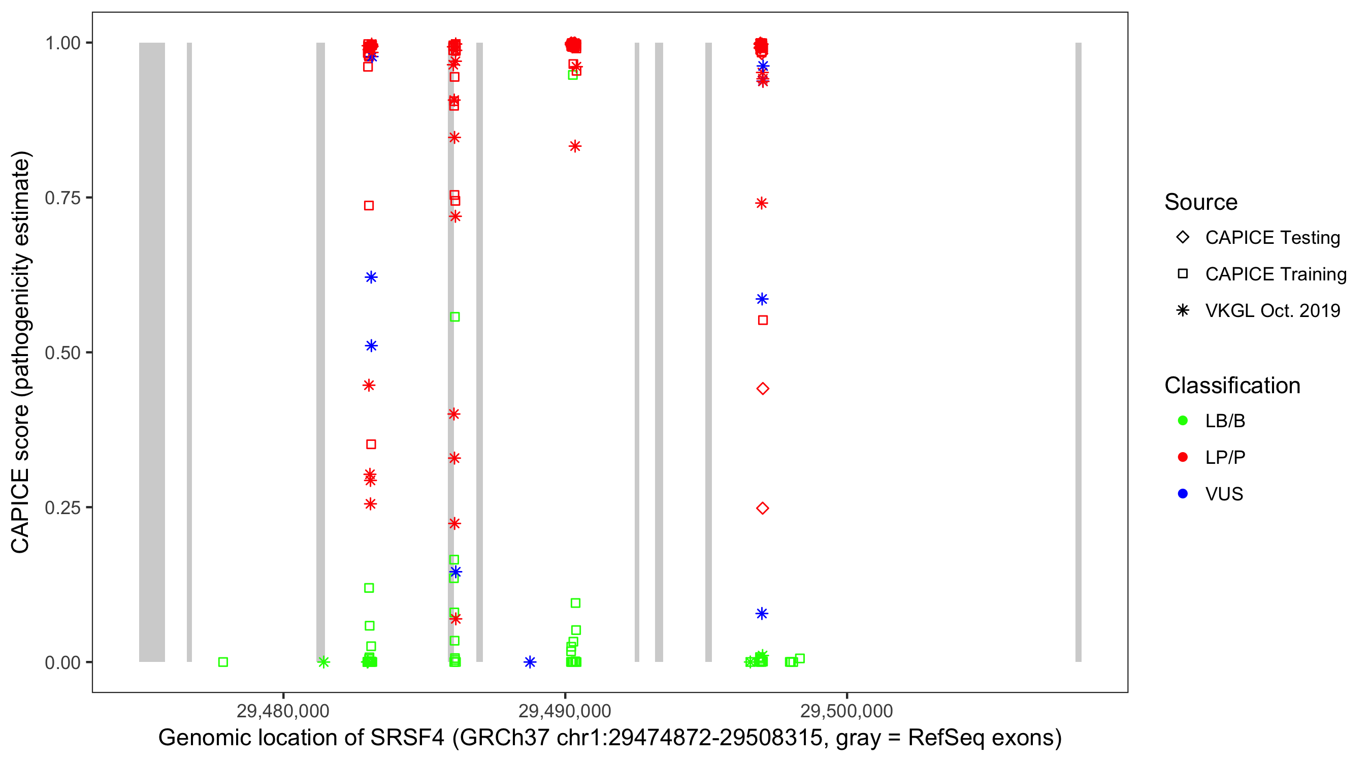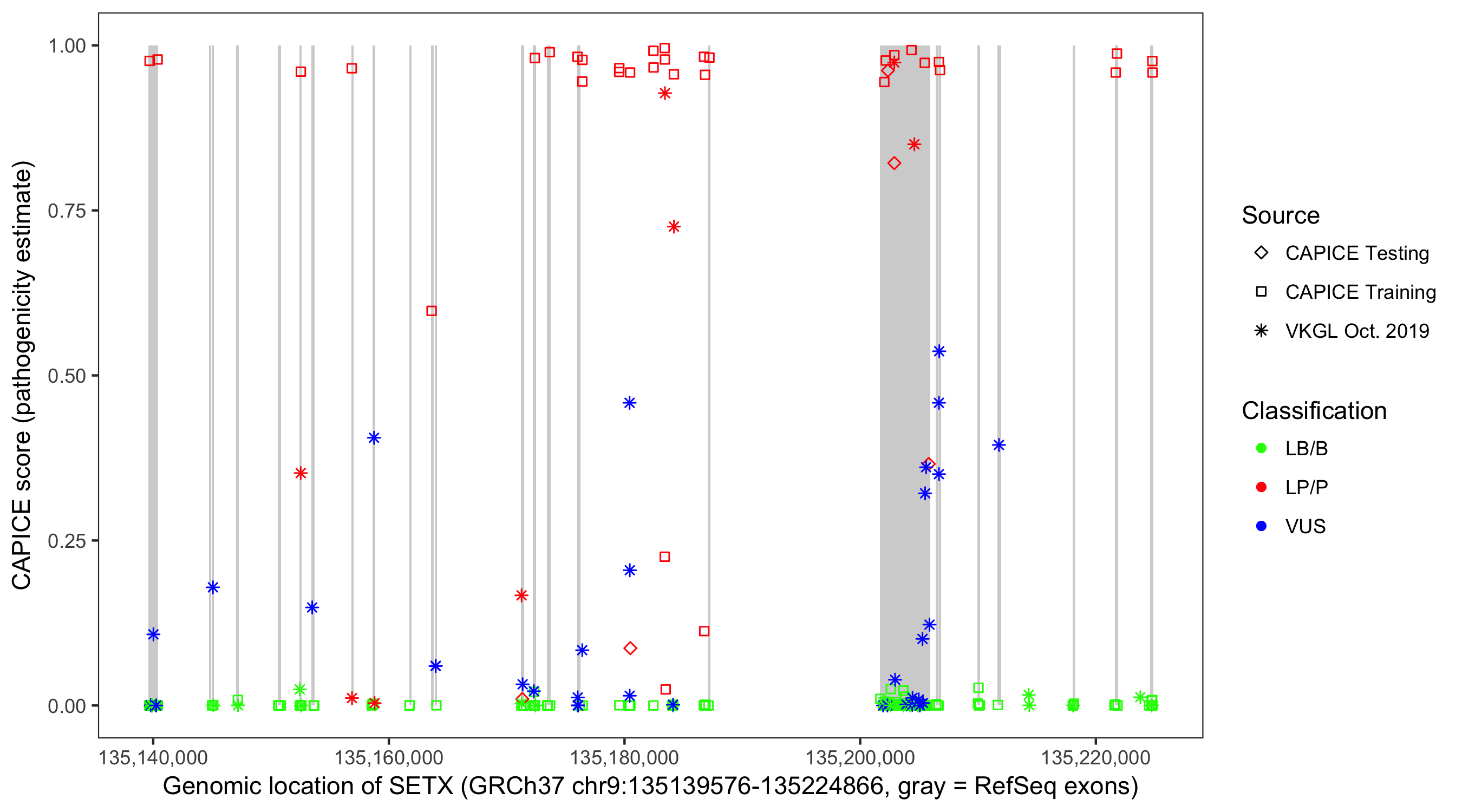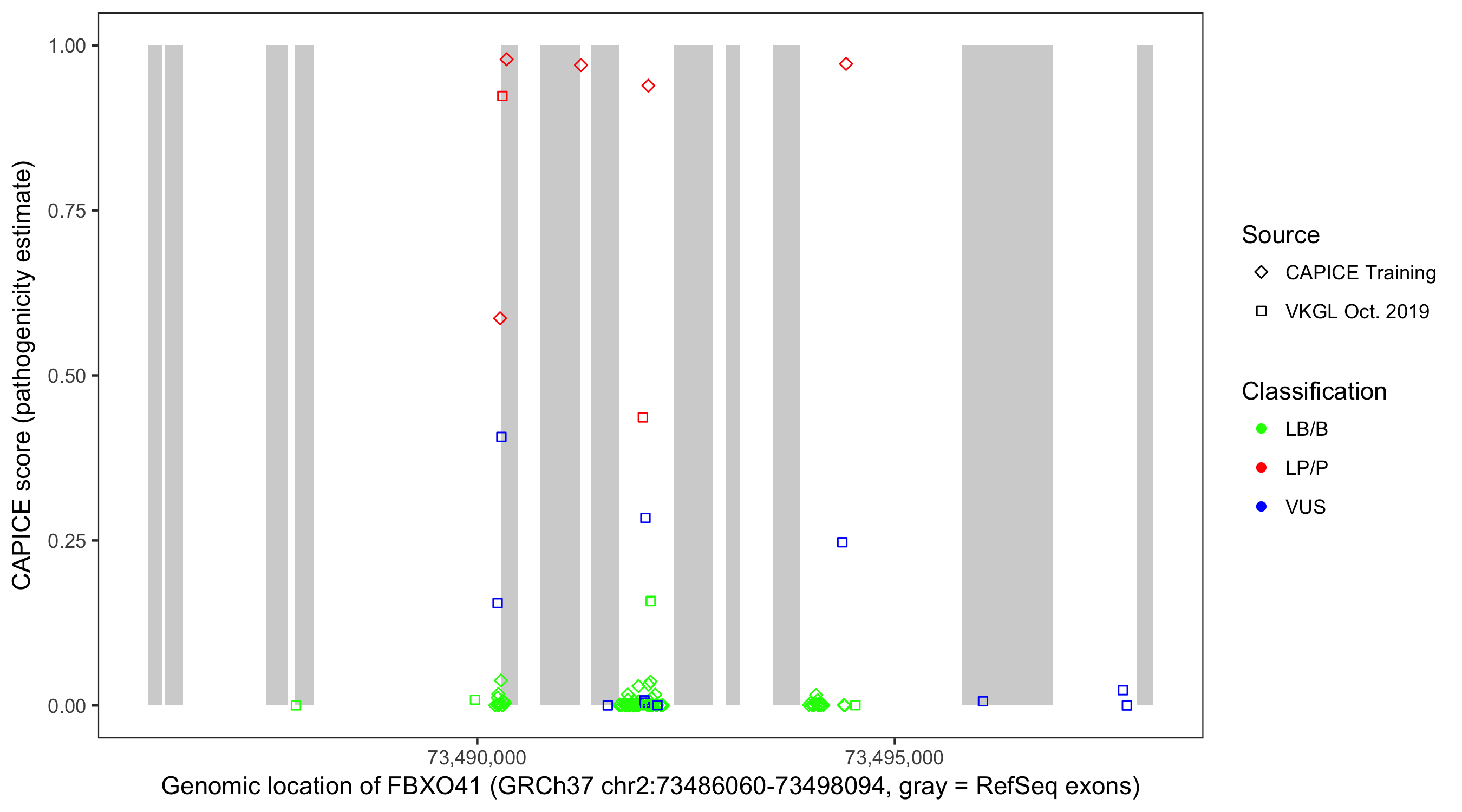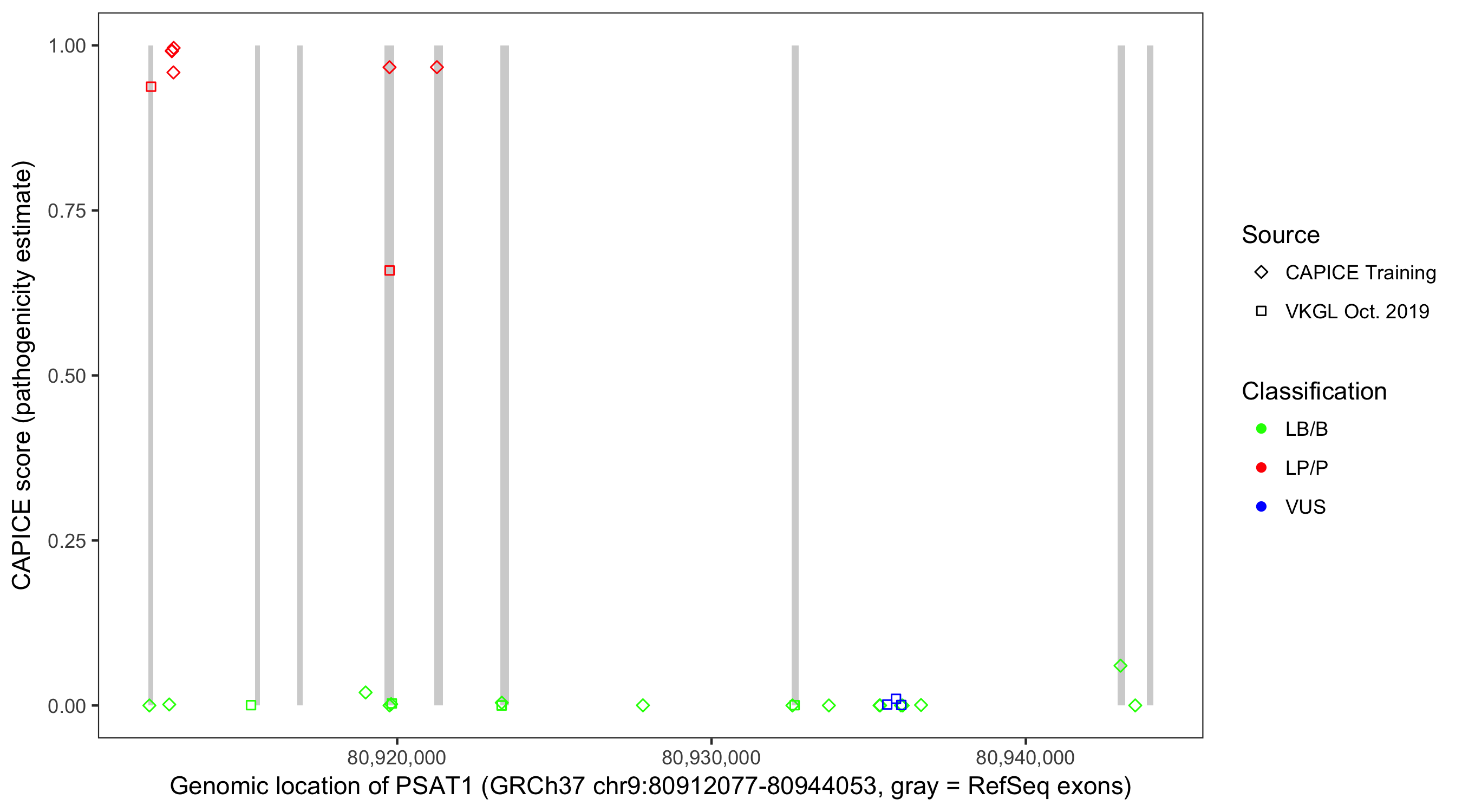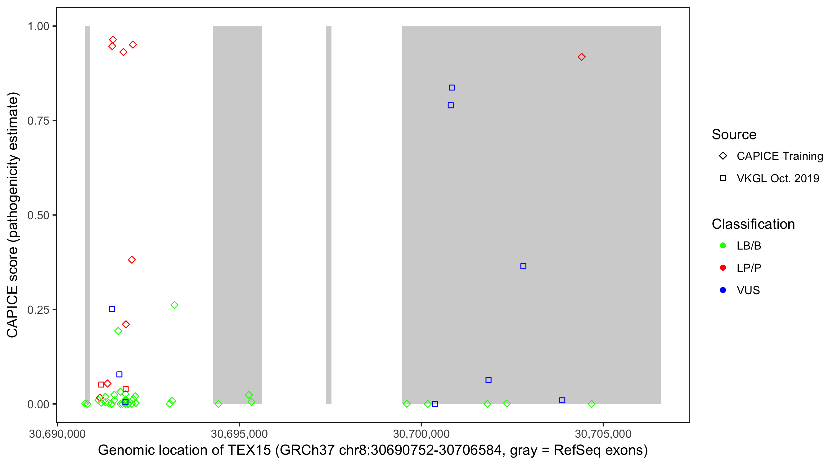 Shown are CAPICE train/test variants plus VKGL Oct 2019.