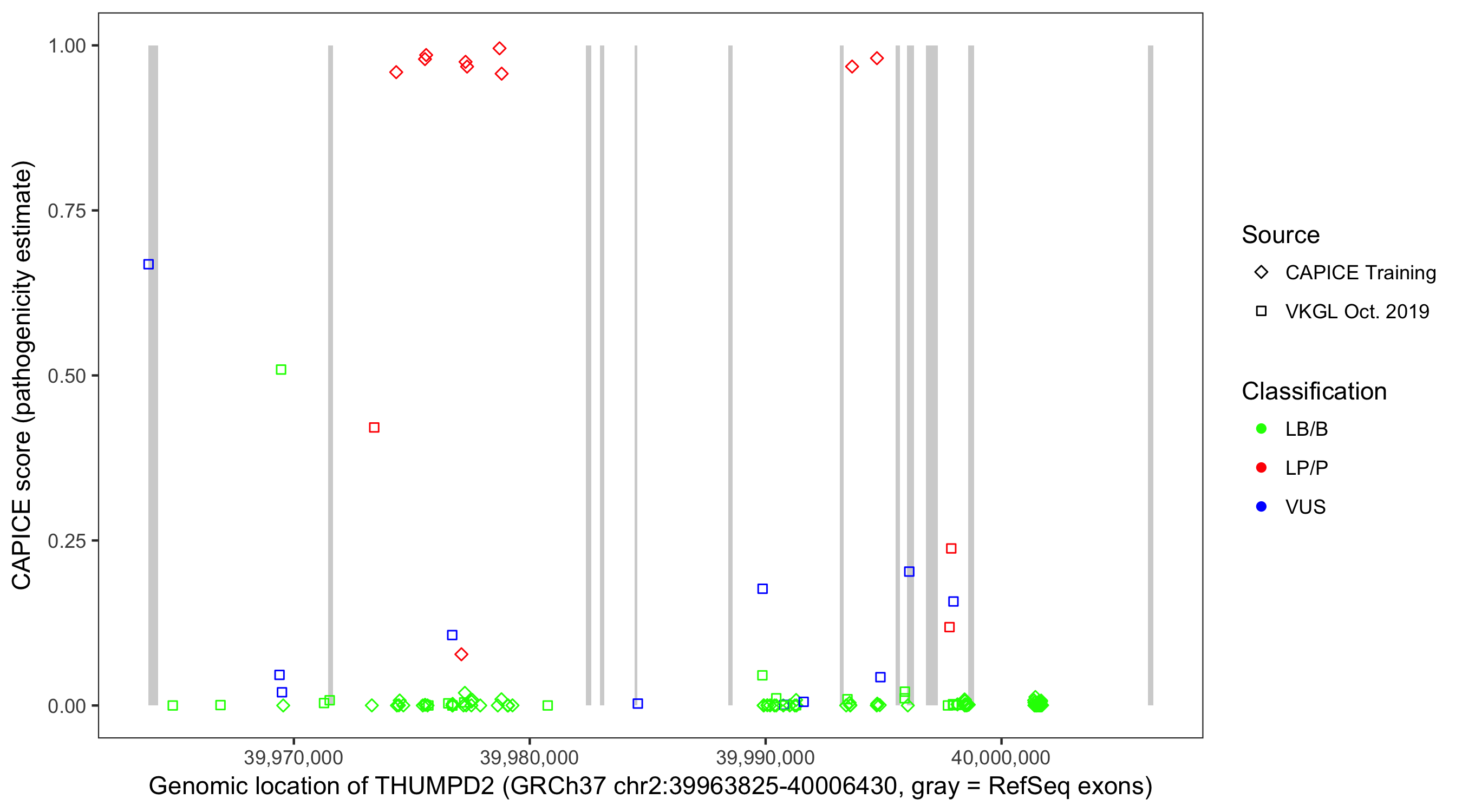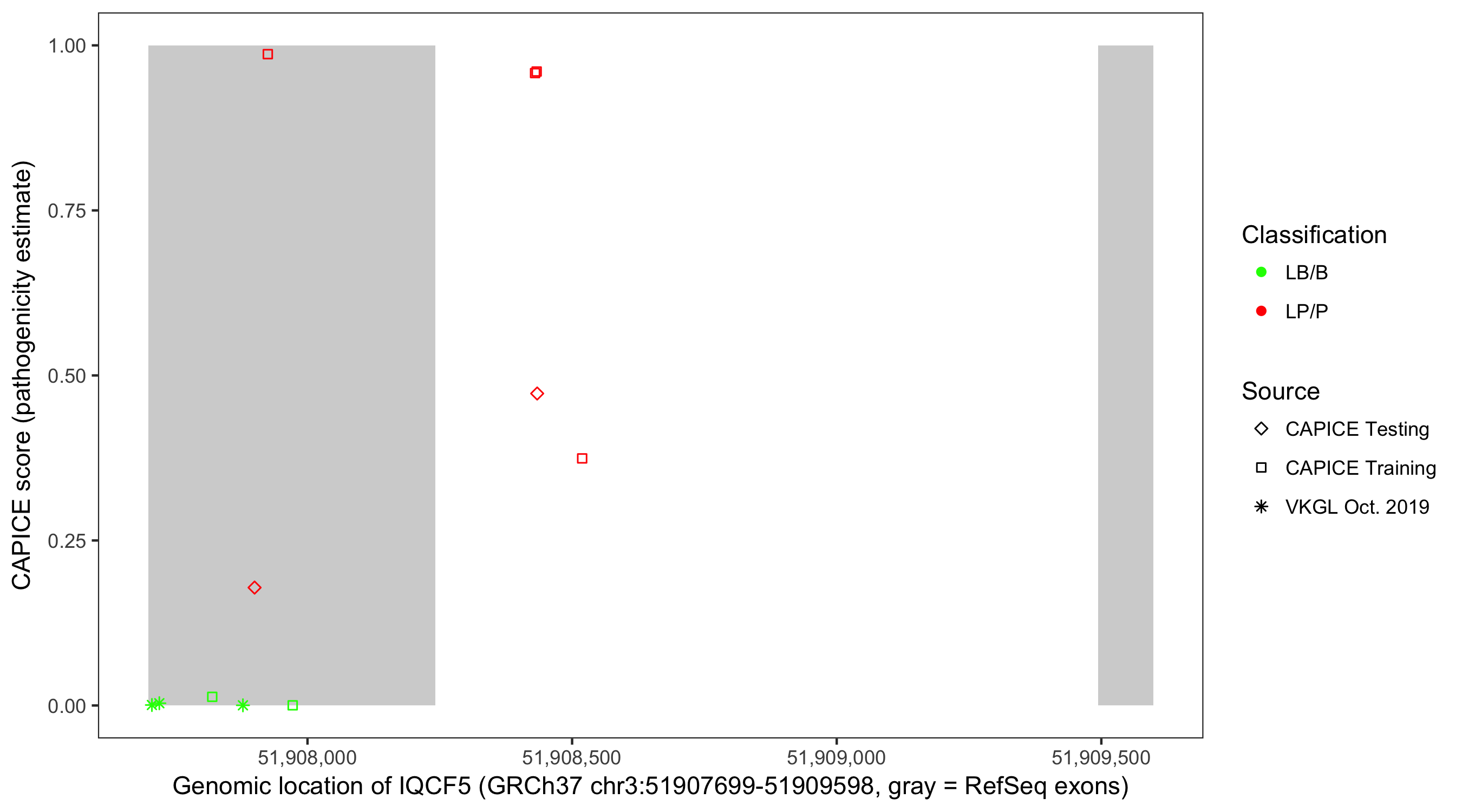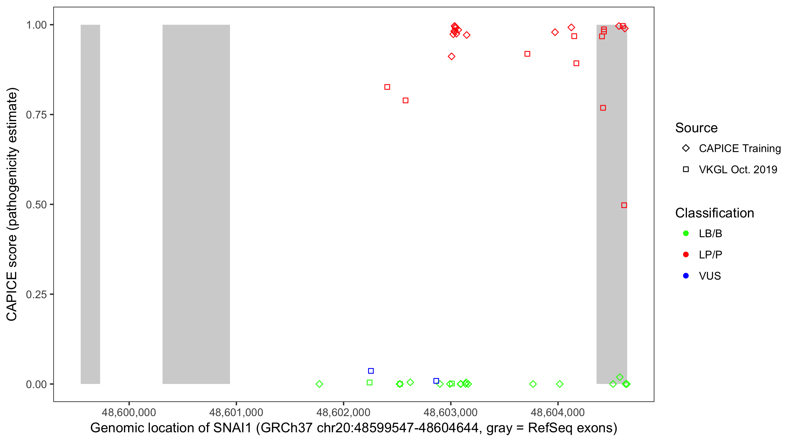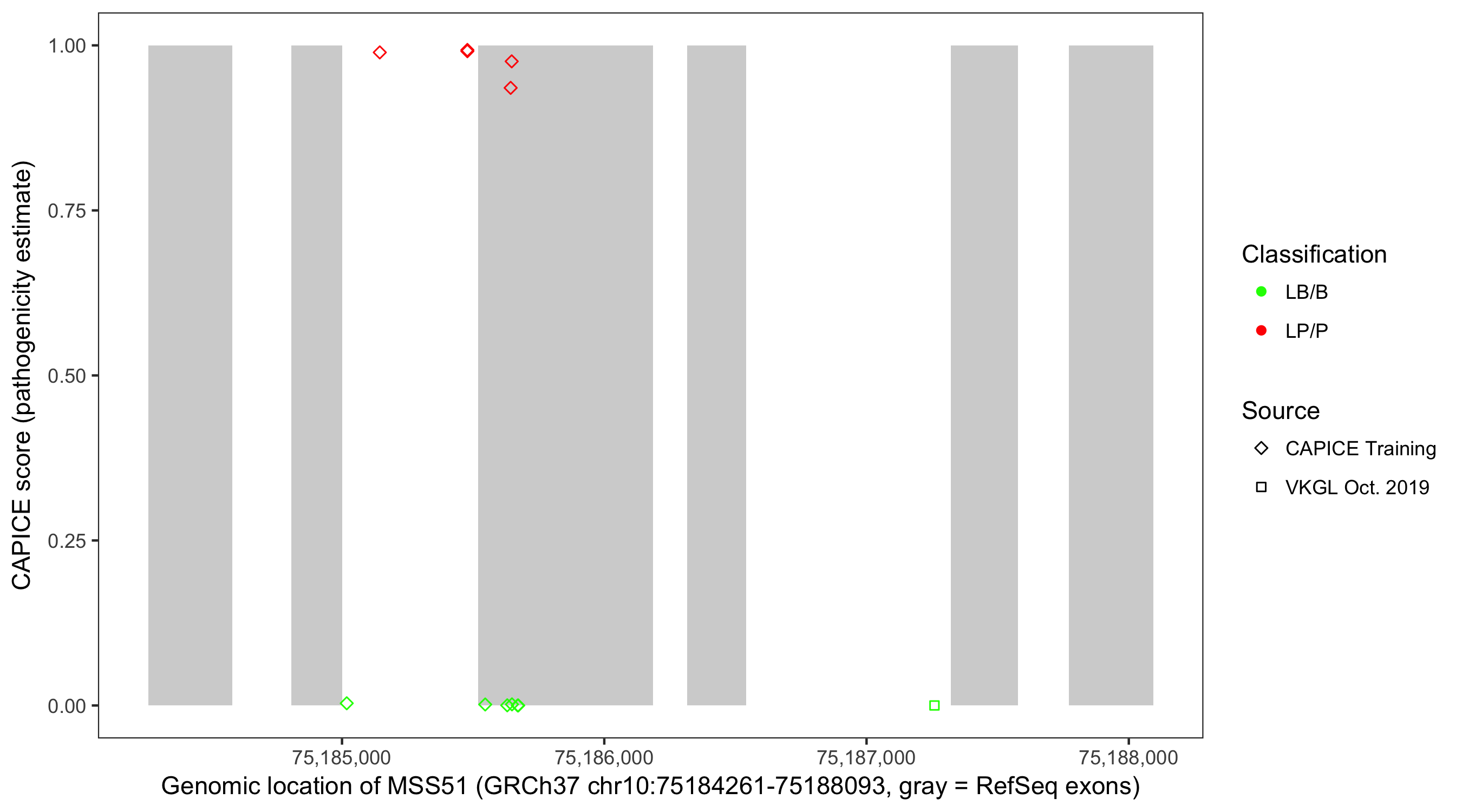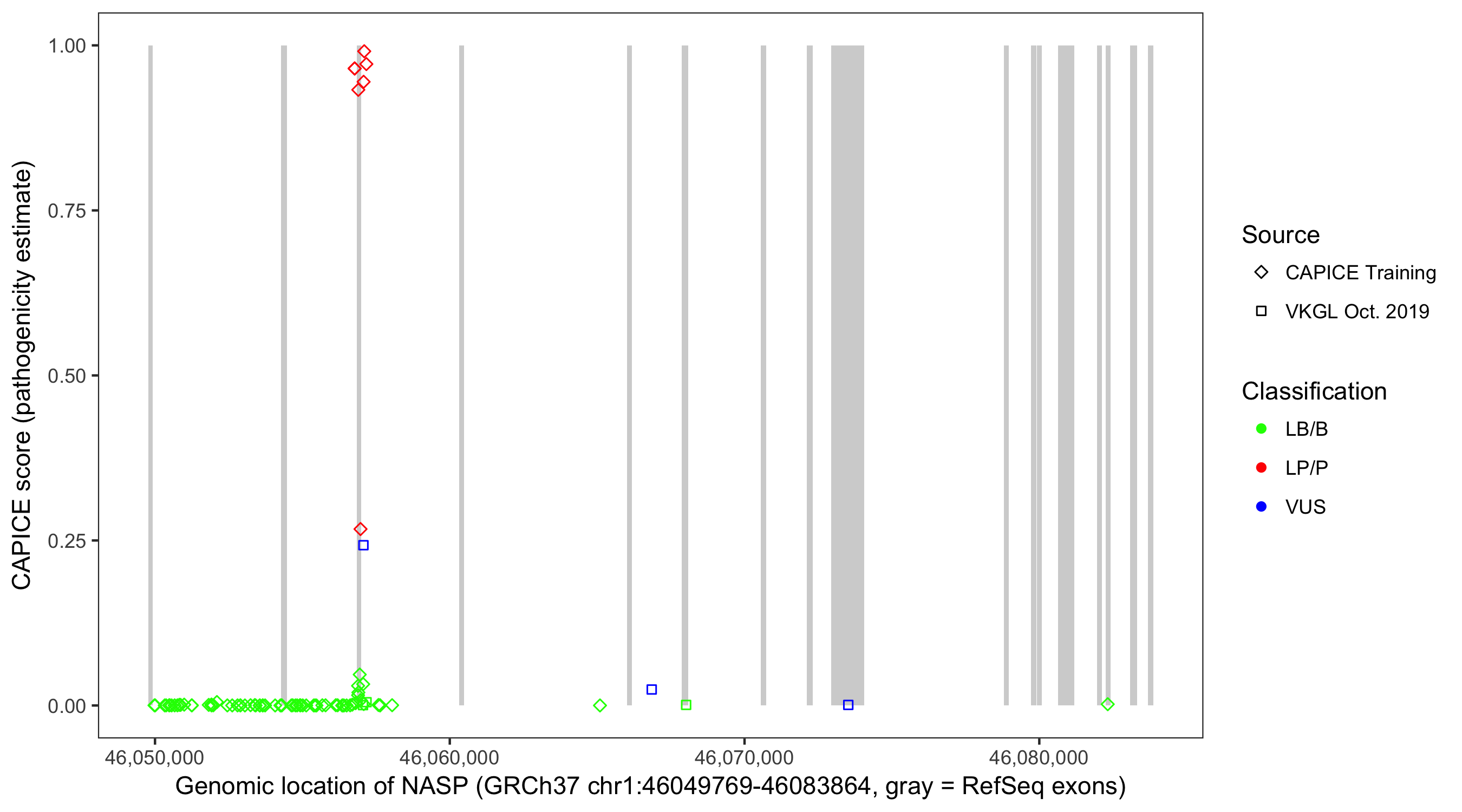 Shown are CAPICE train/test variants plus VKGL Oct 2019.