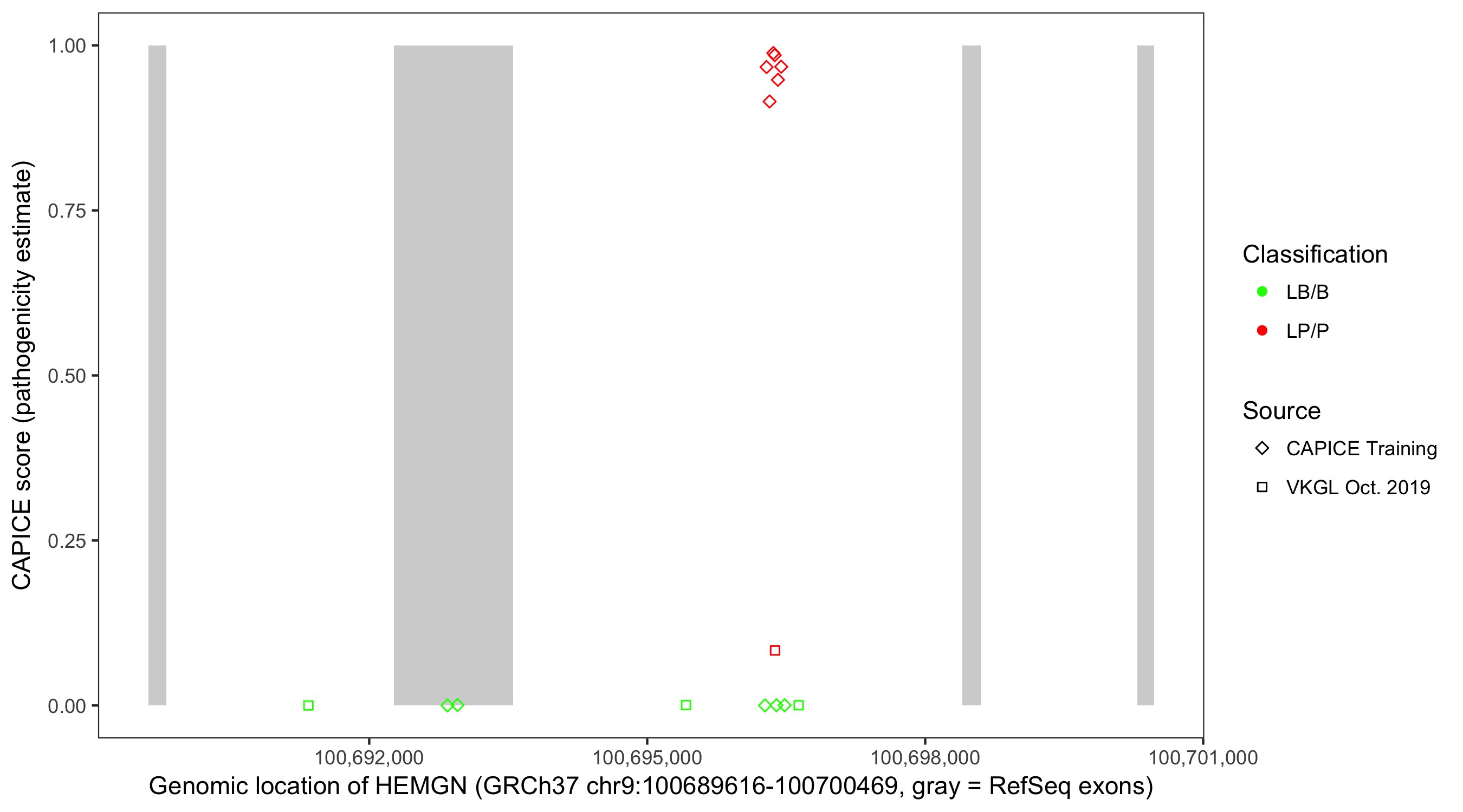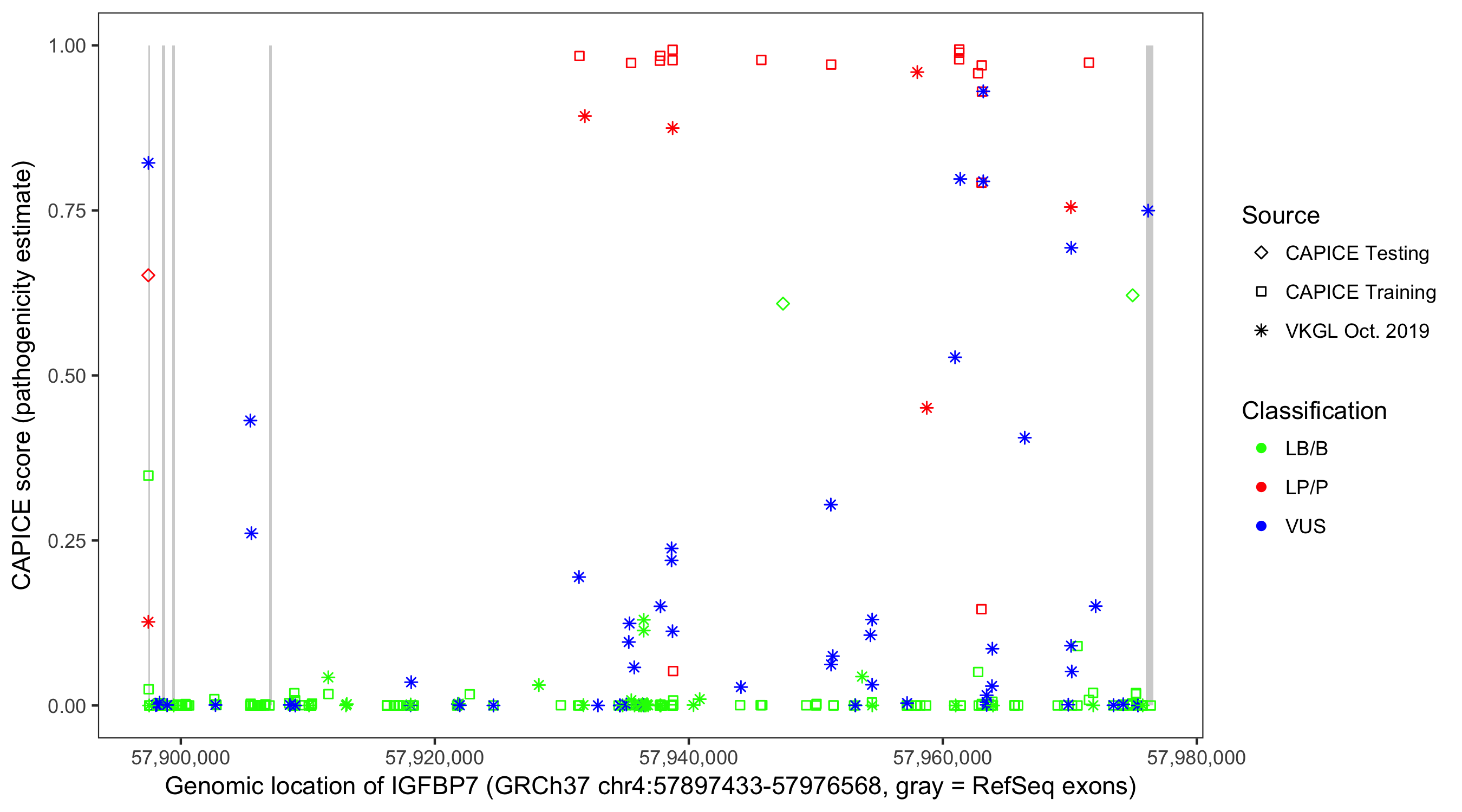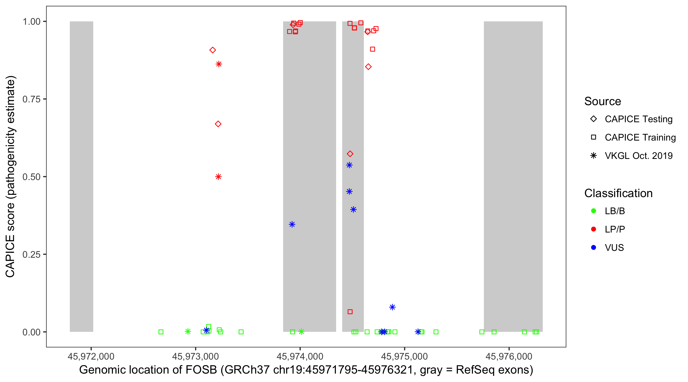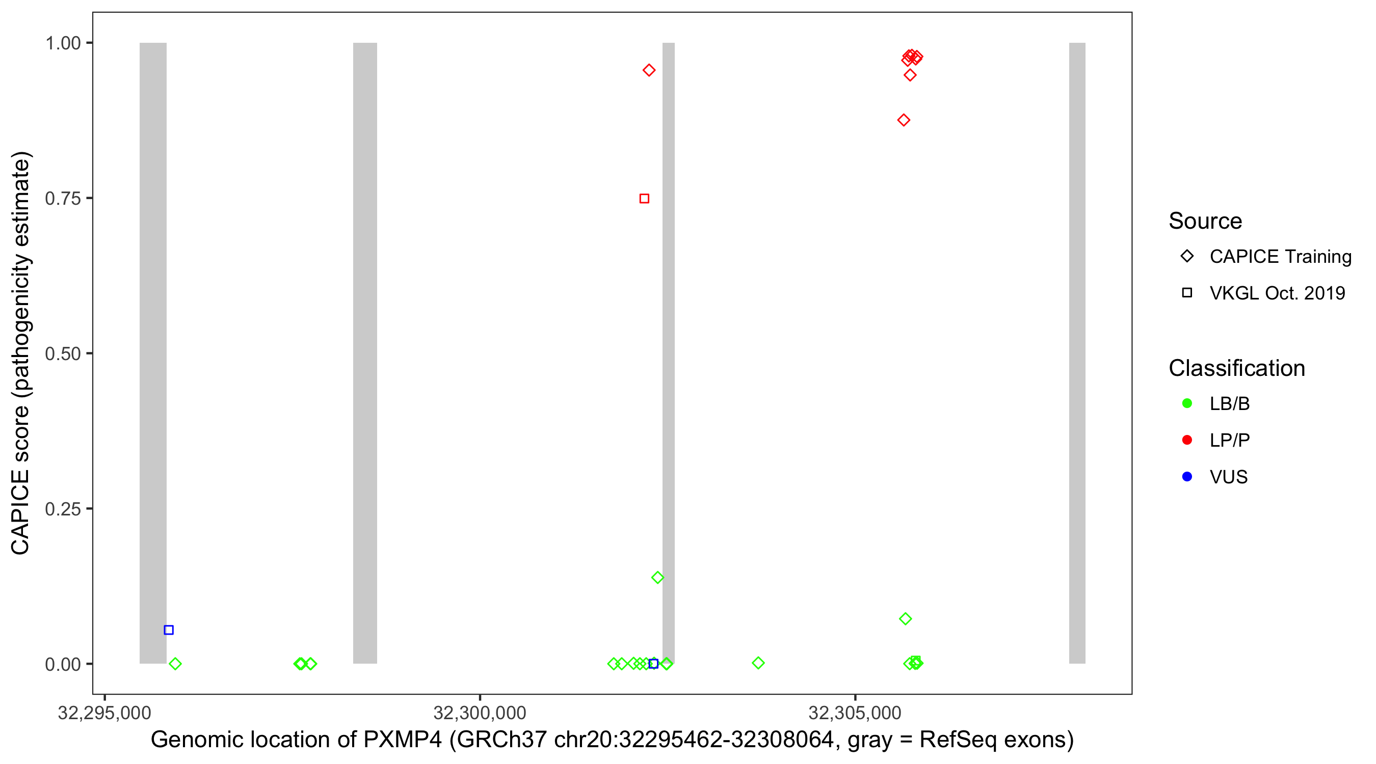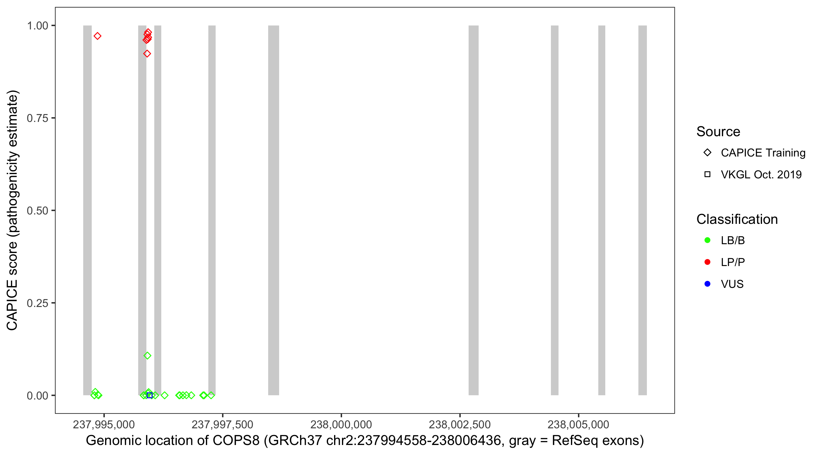 Shown are CAPICE train/test variants plus VKGL Oct 2019.