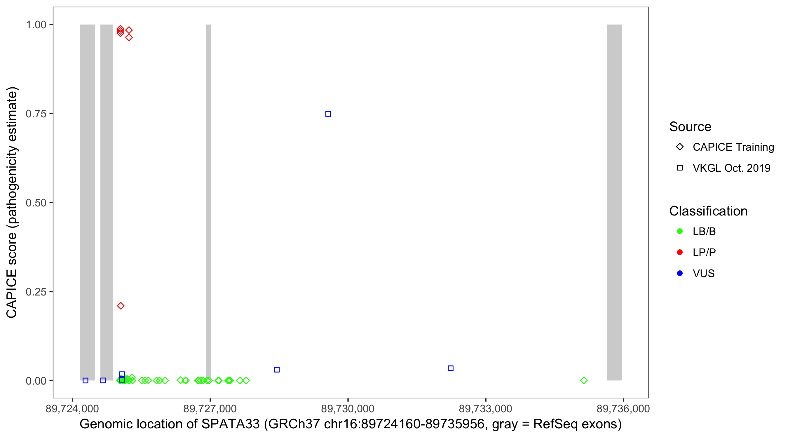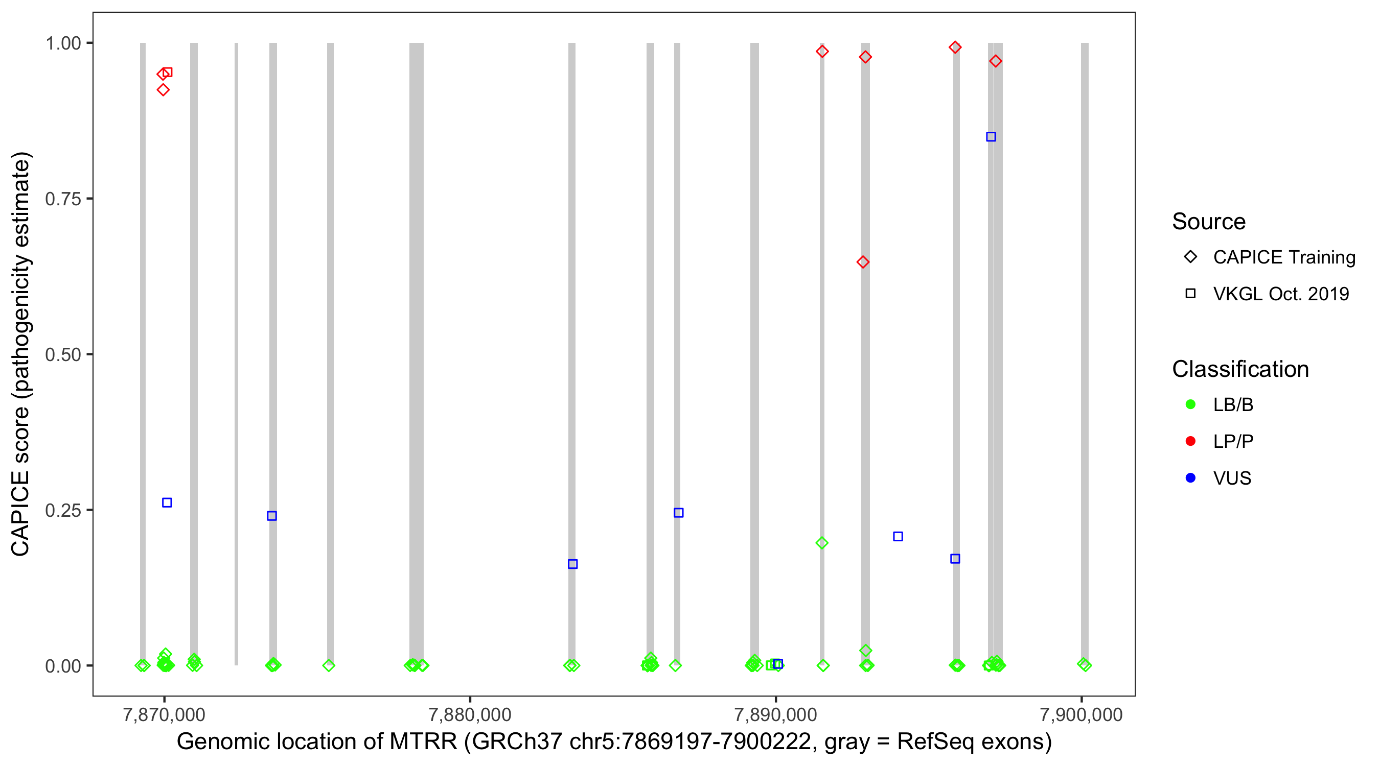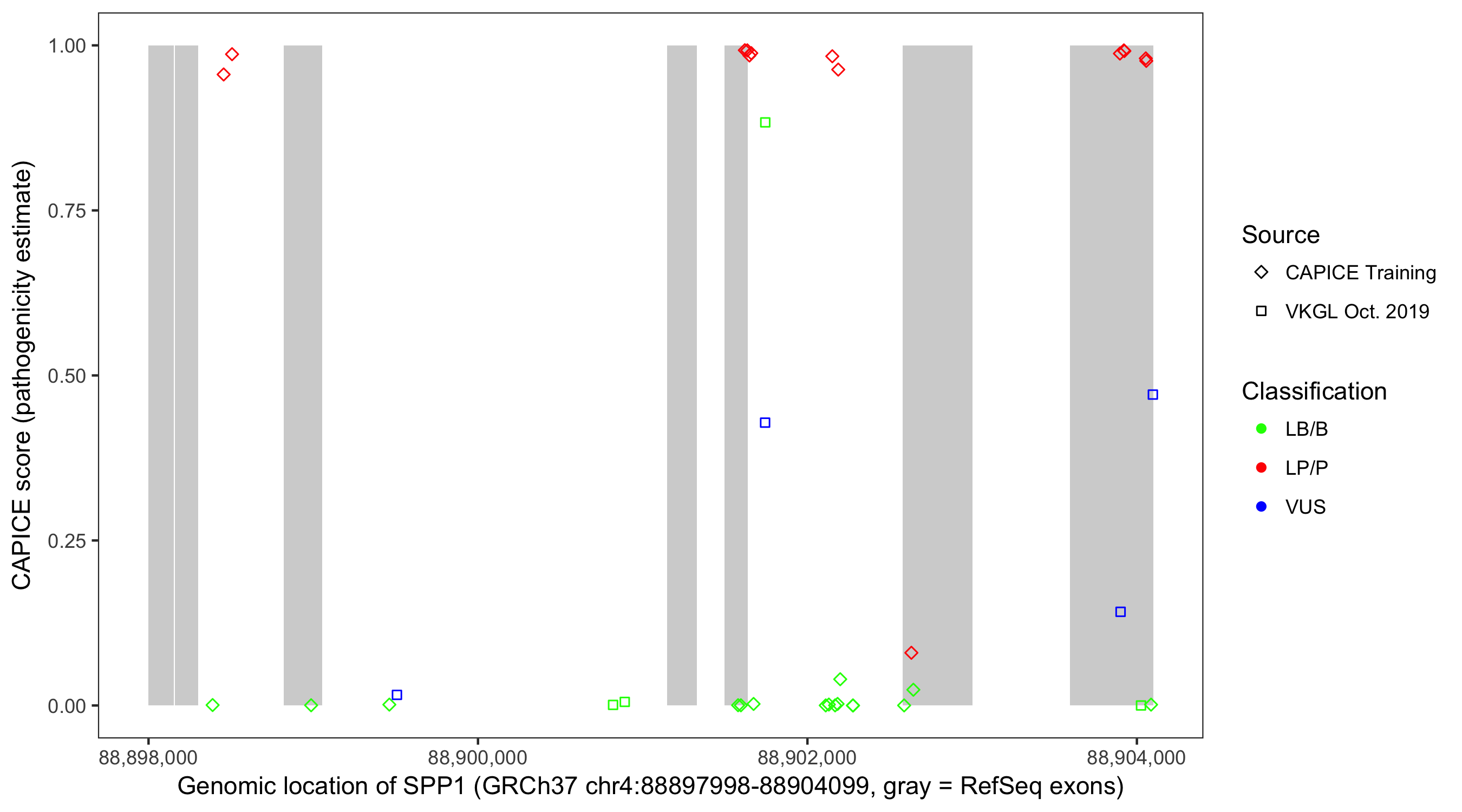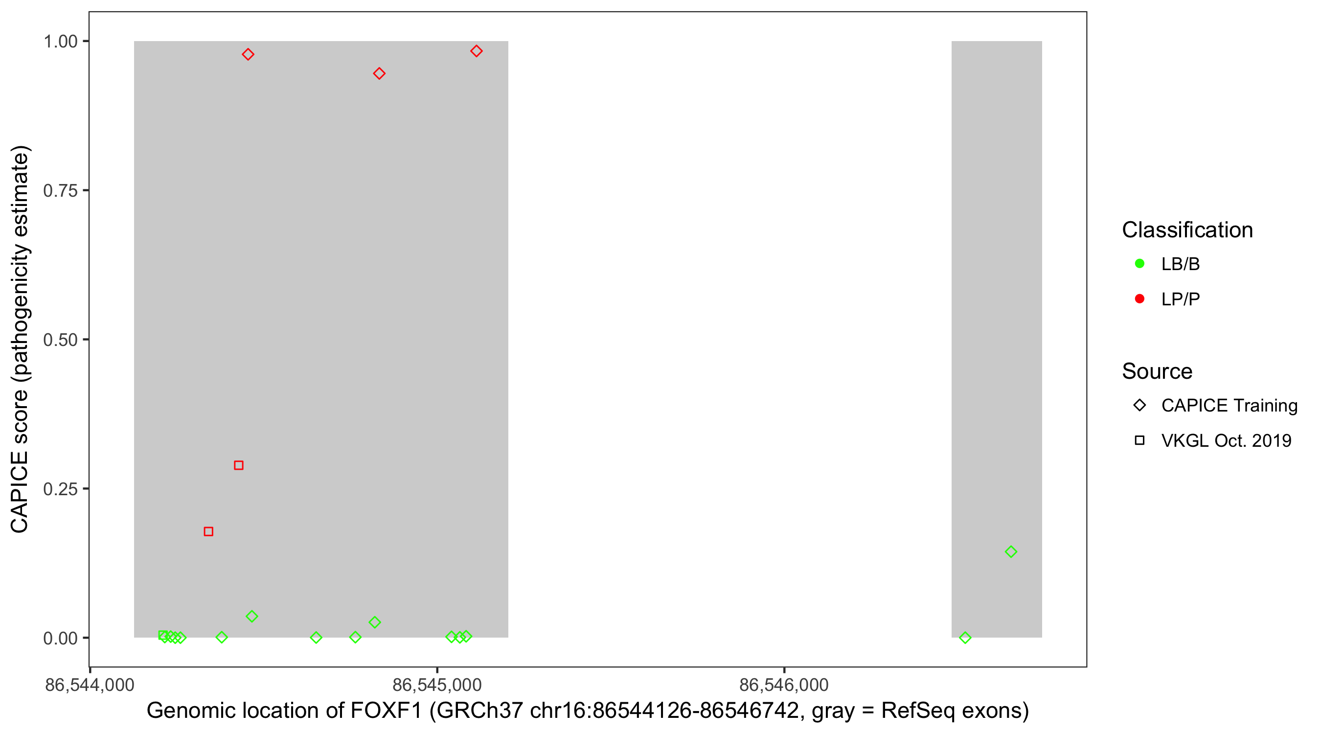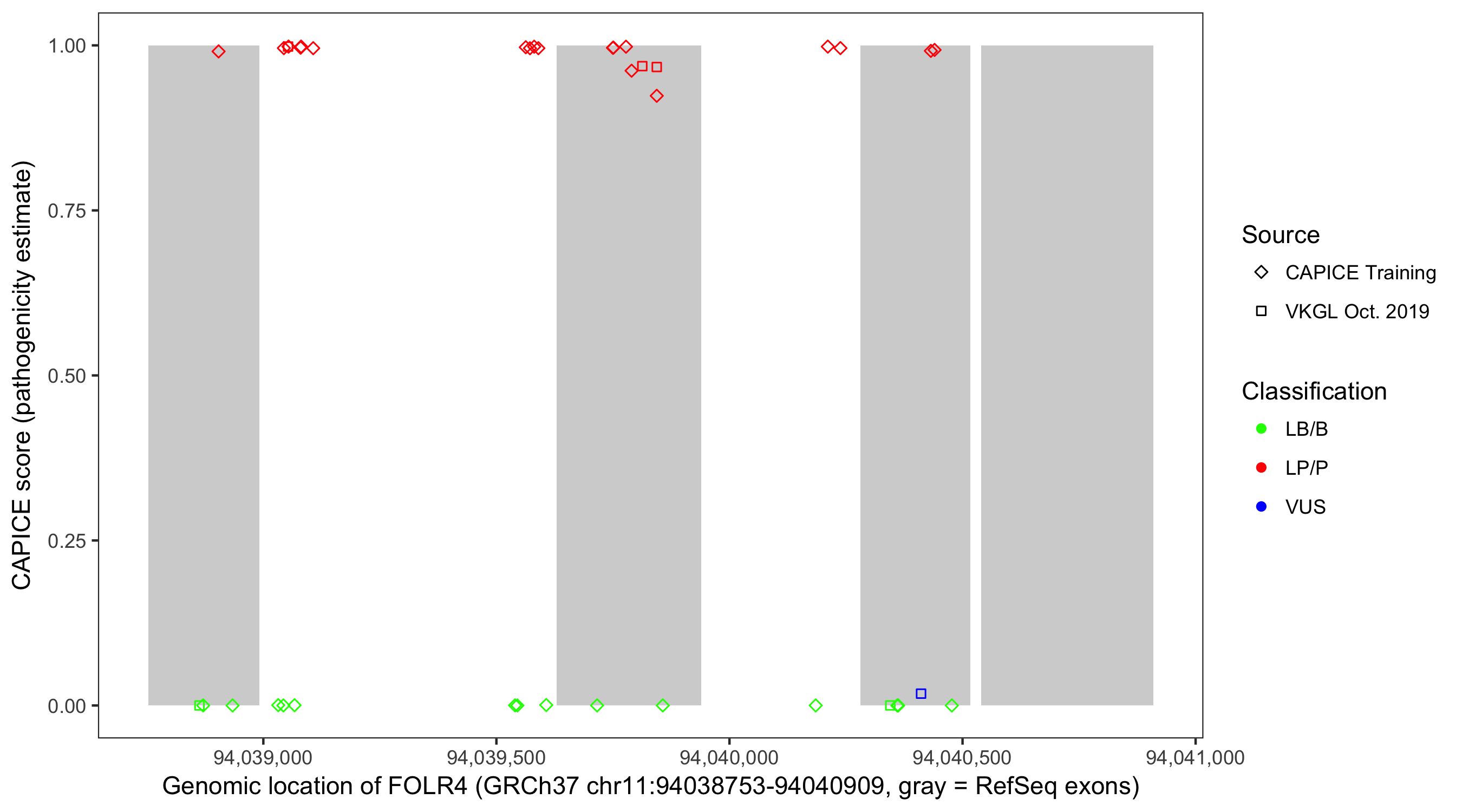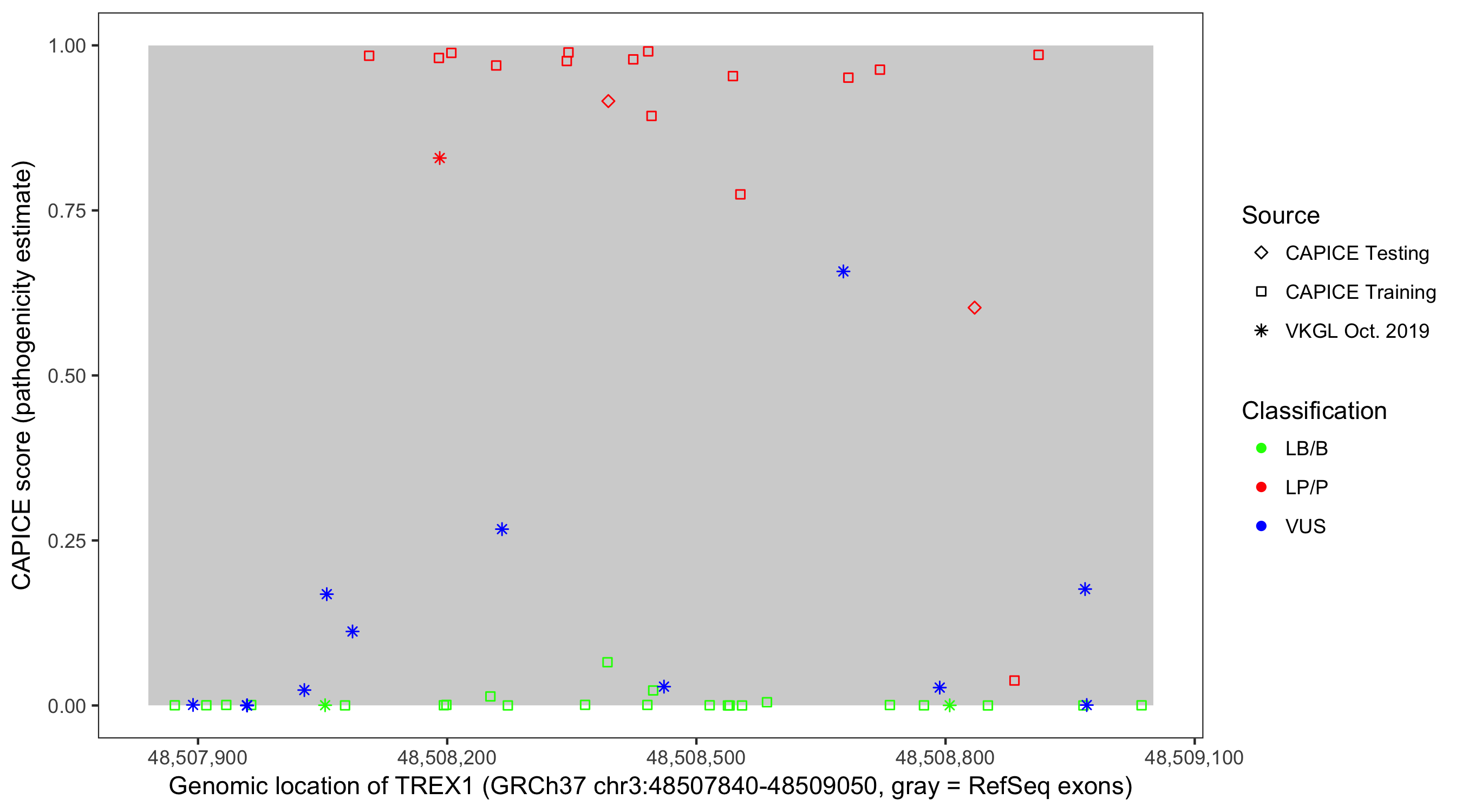 Shown are CAPICE train/test variants plus VKGL Oct 2019.