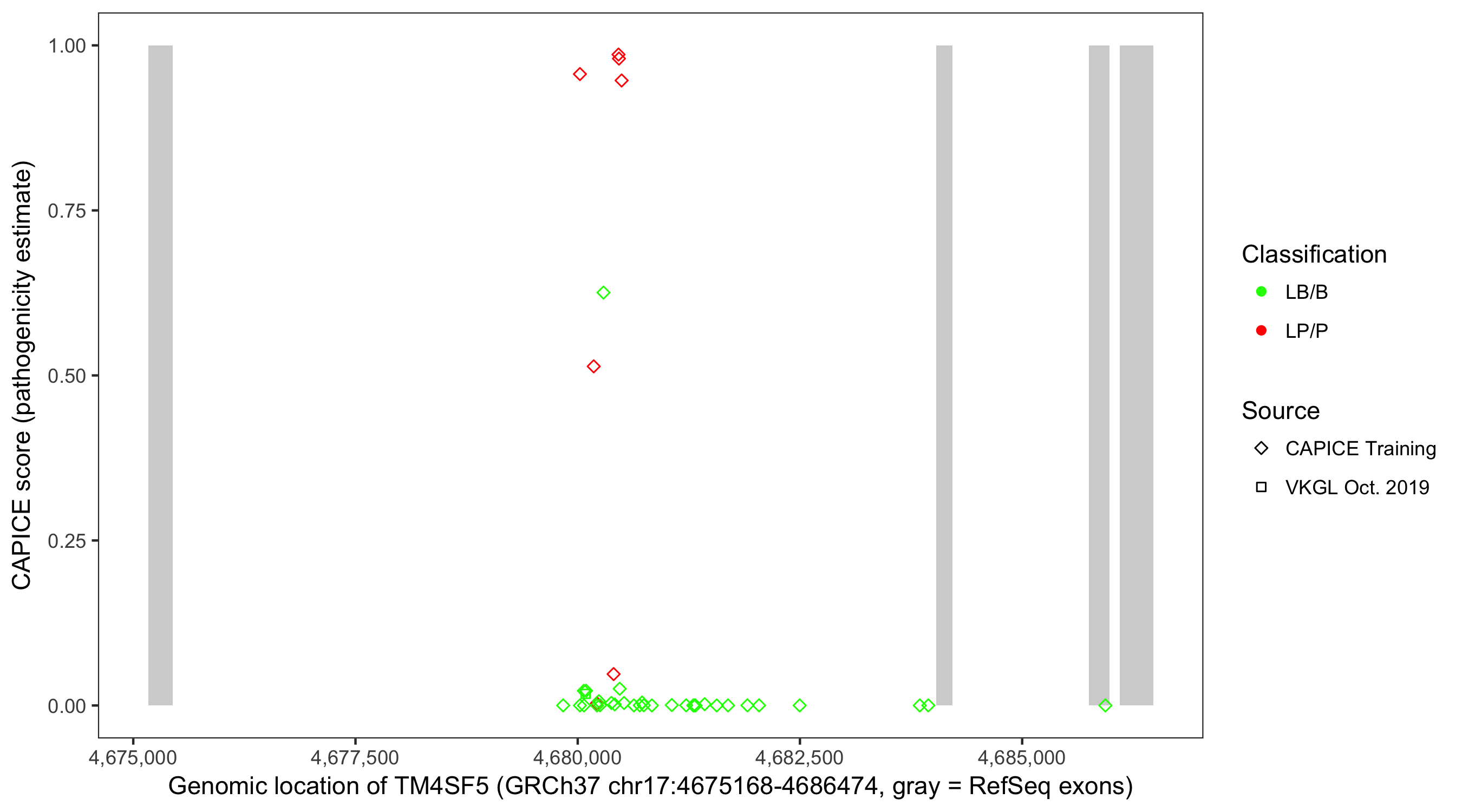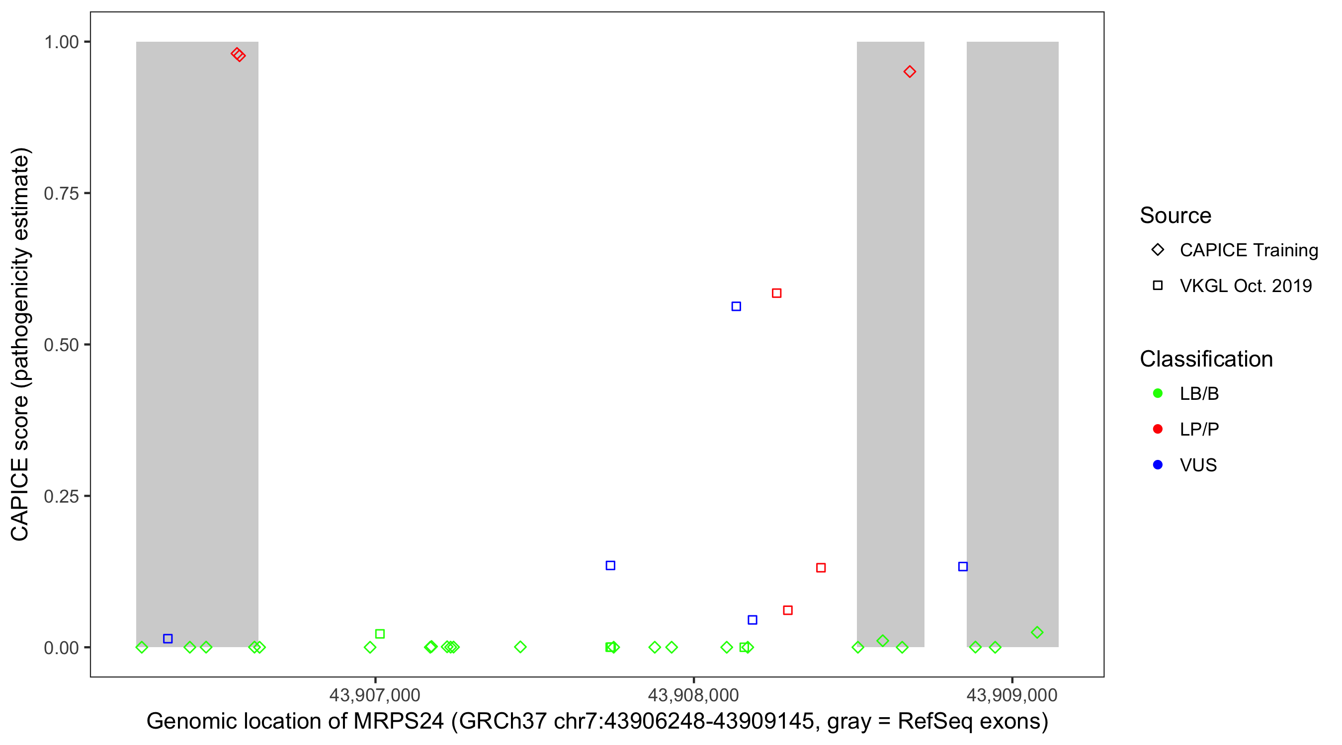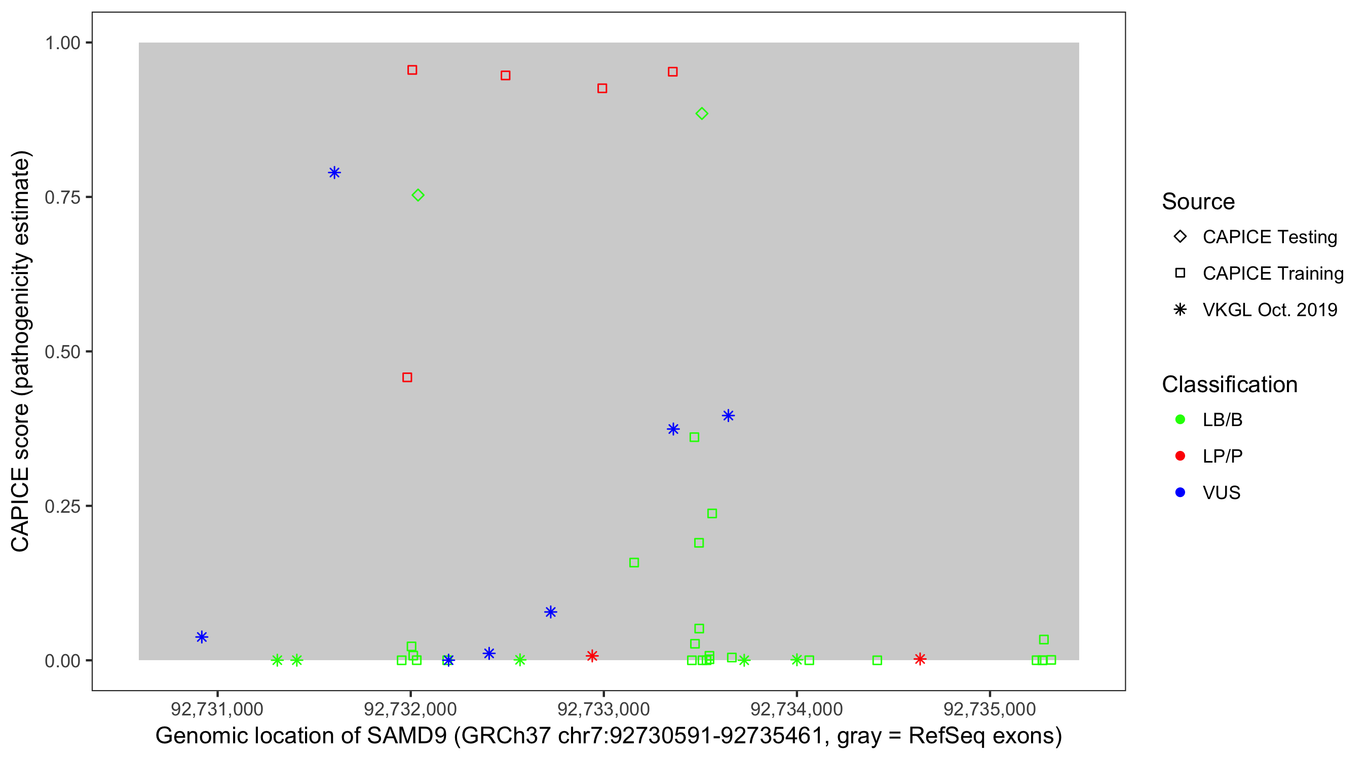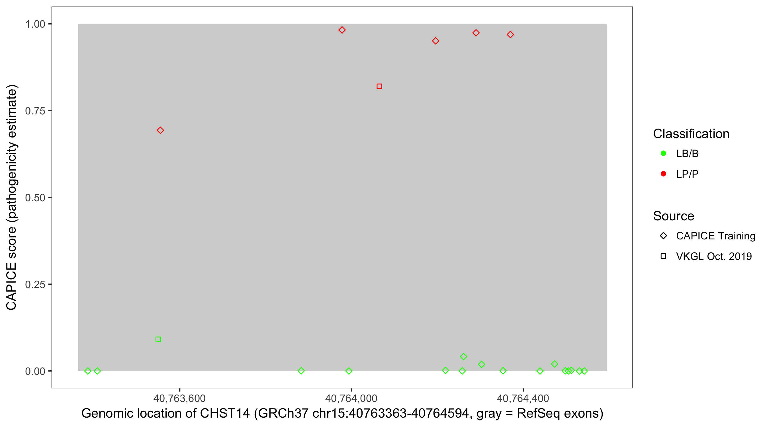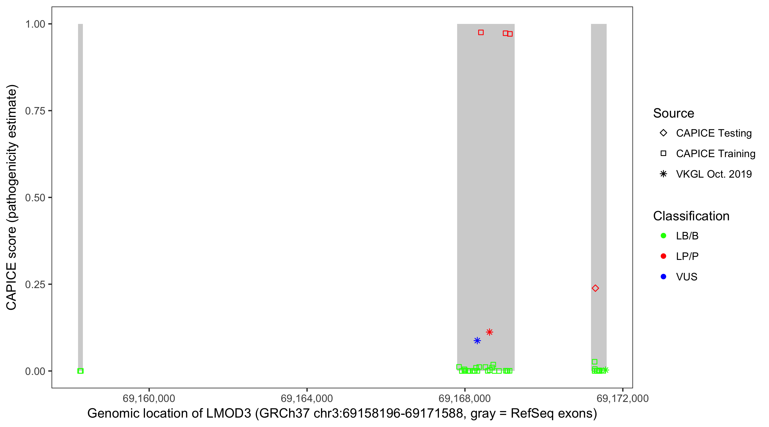 Shown are CAPICE train/test variants plus VKGL Oct 2019.