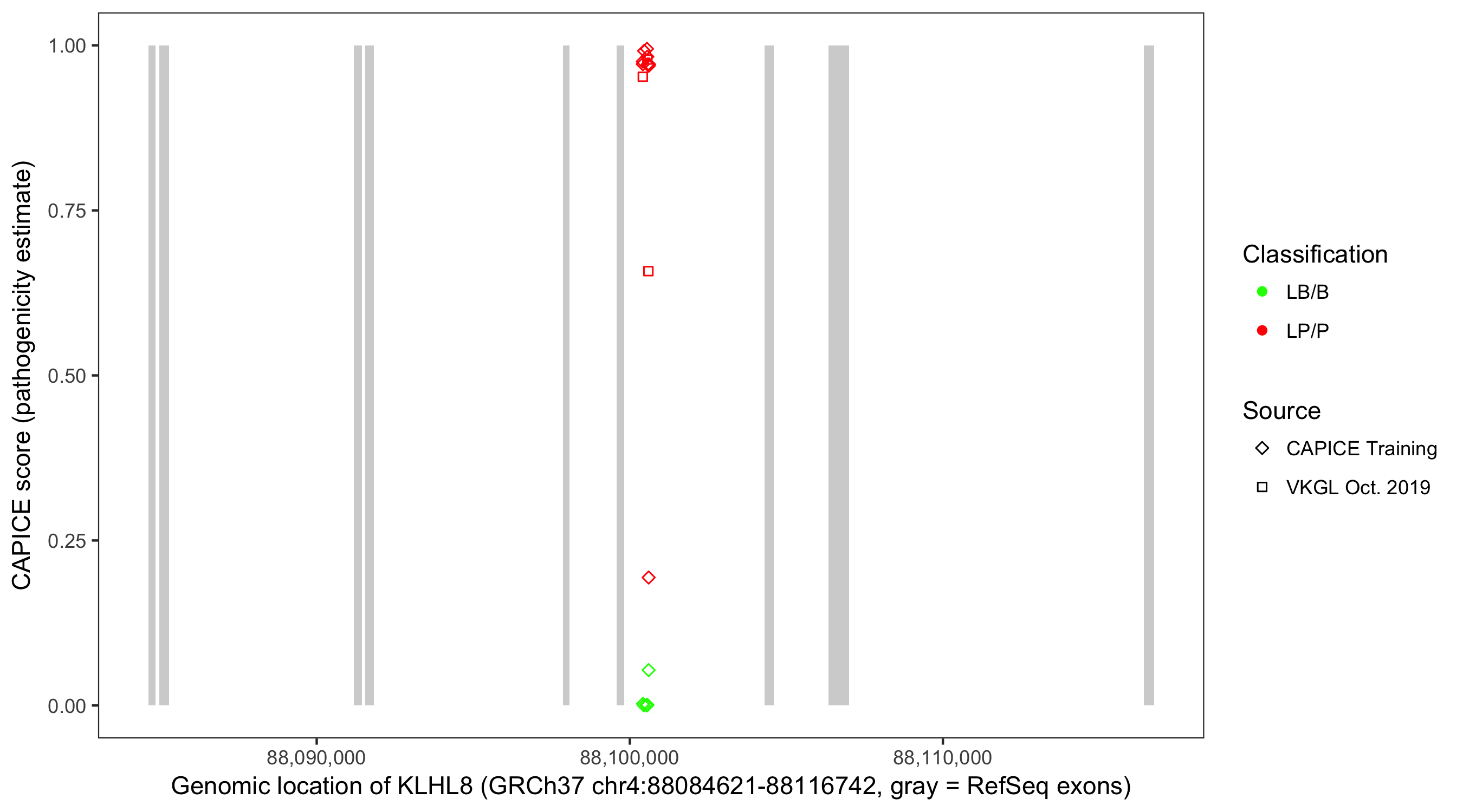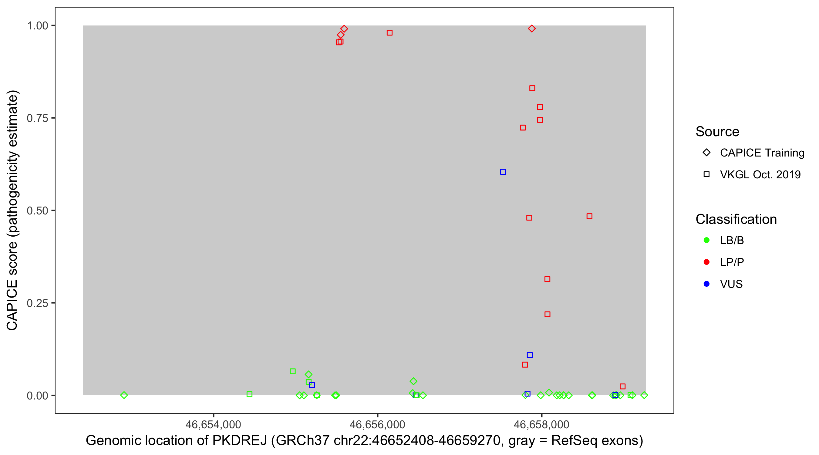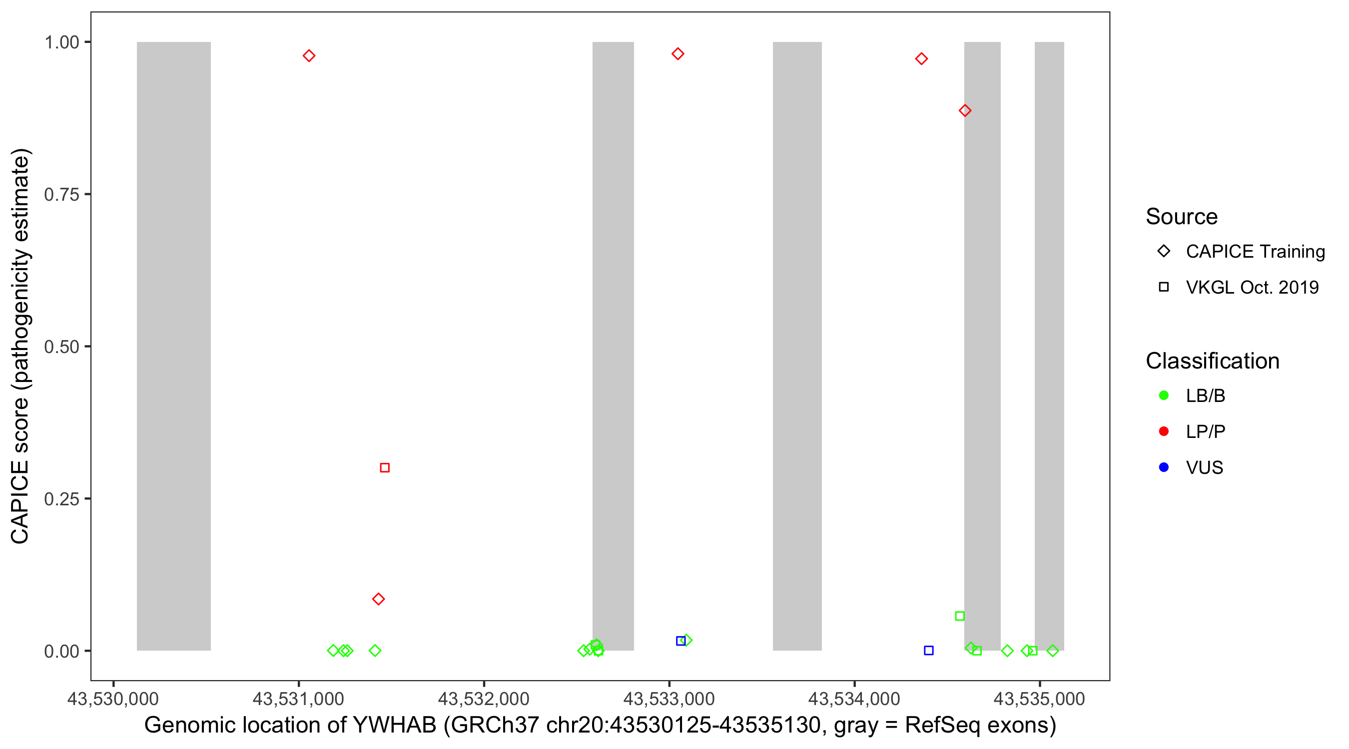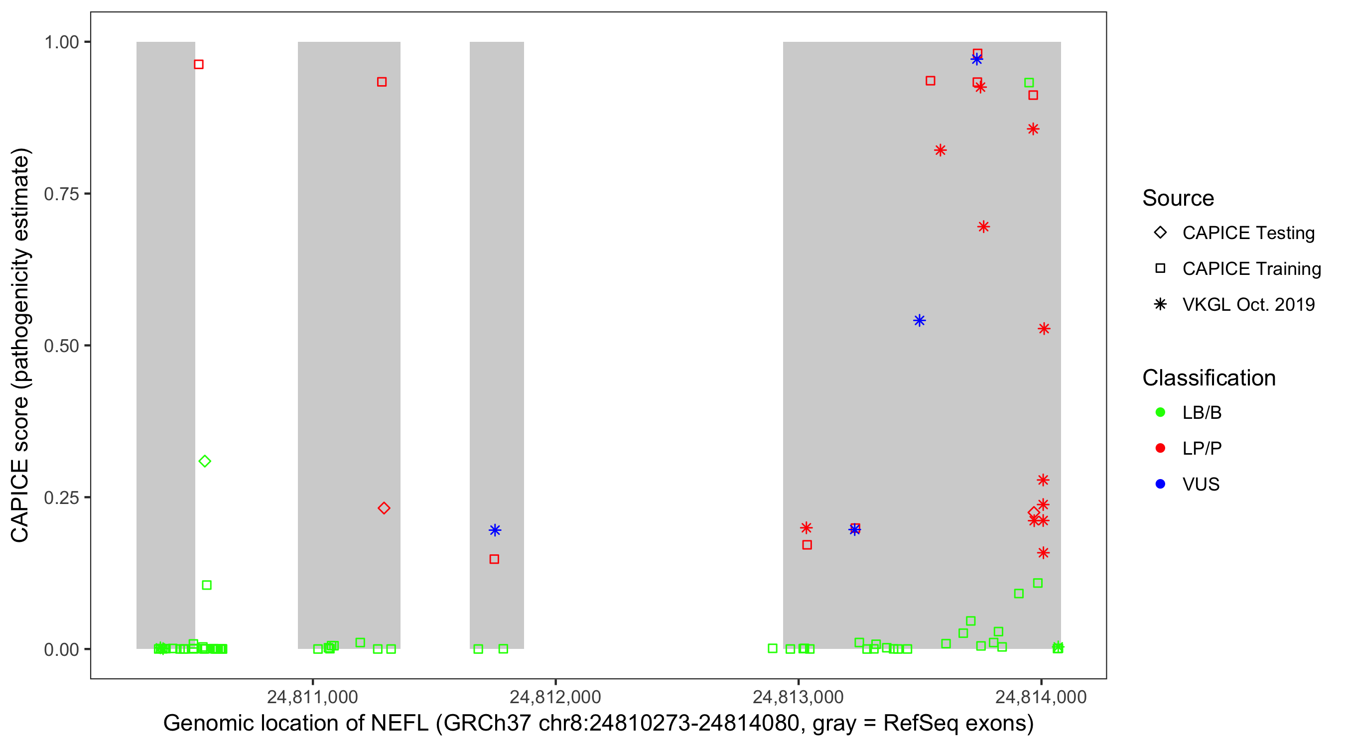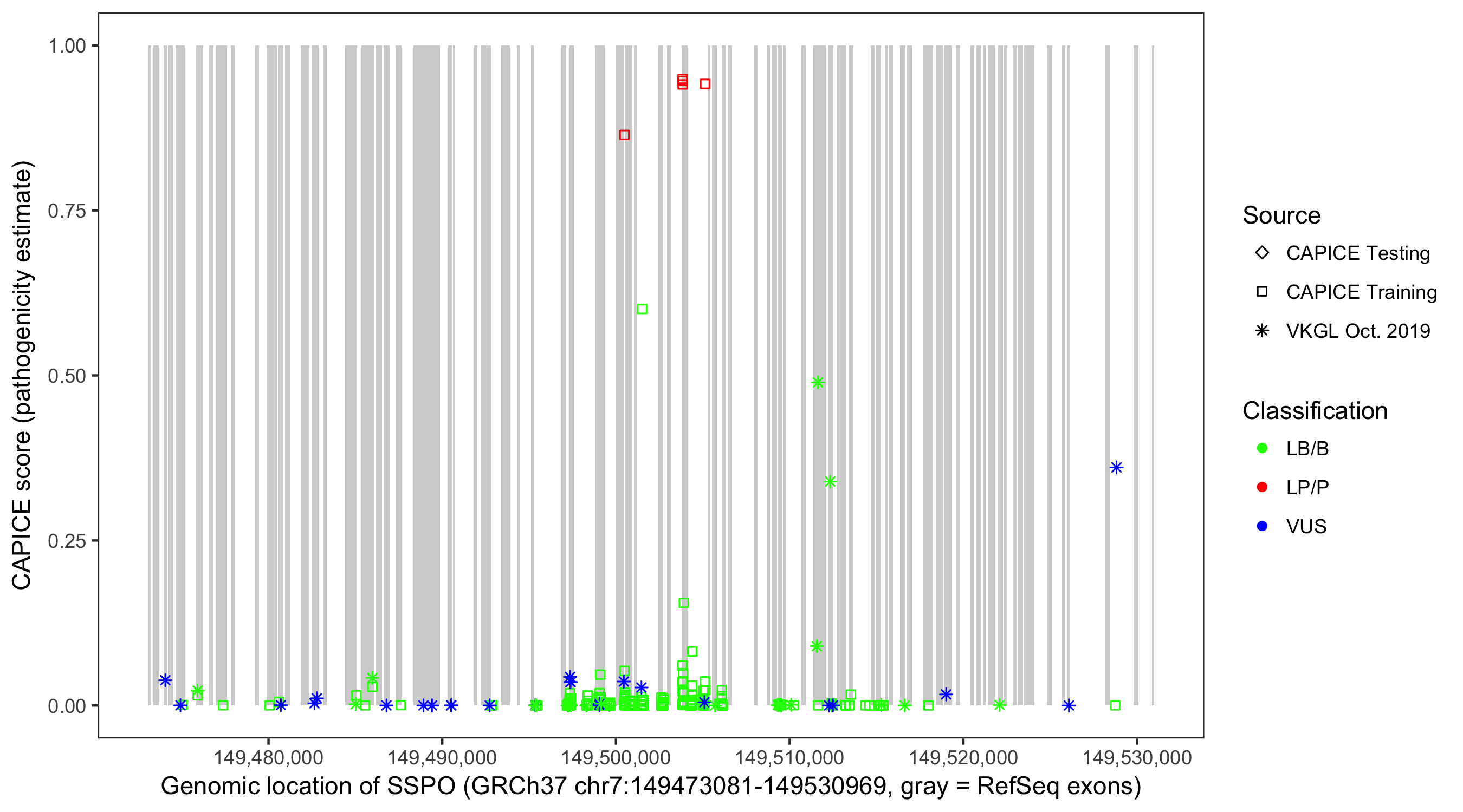 Shown are CAPICE train/test variants plus VKGL Oct 2019.