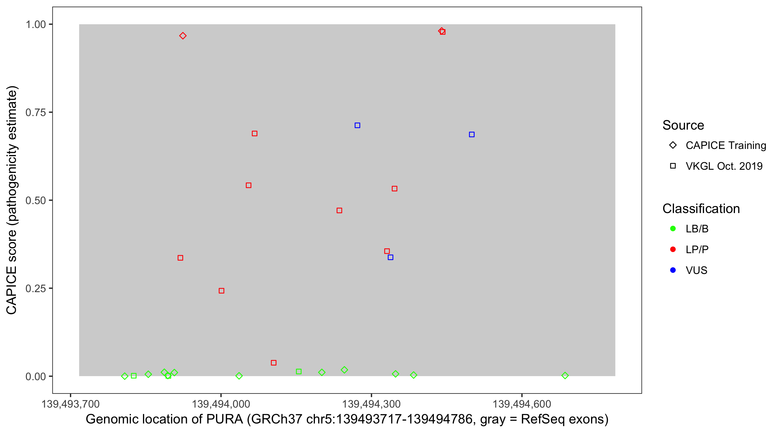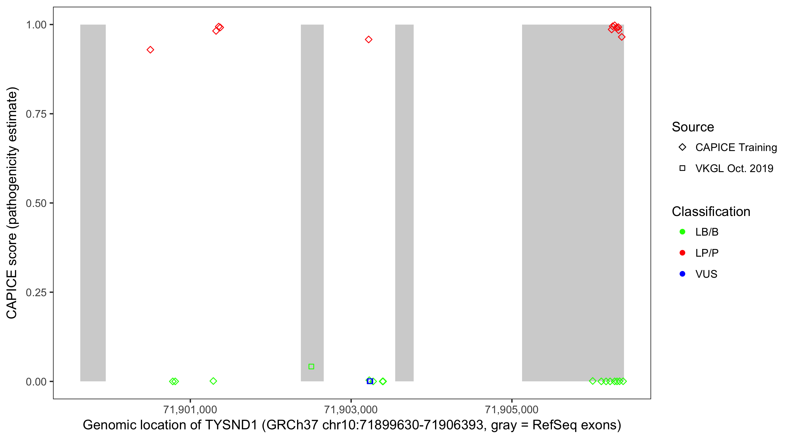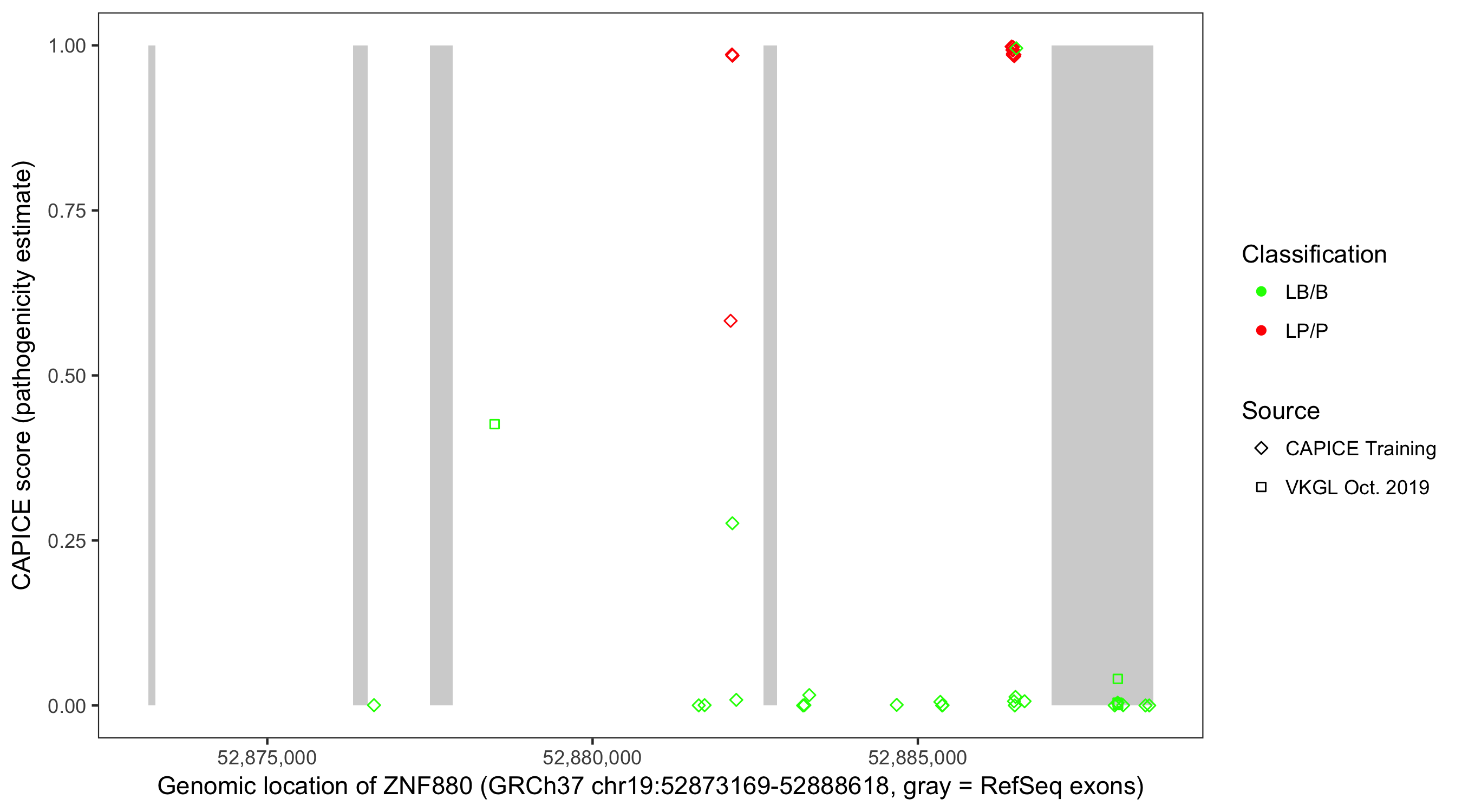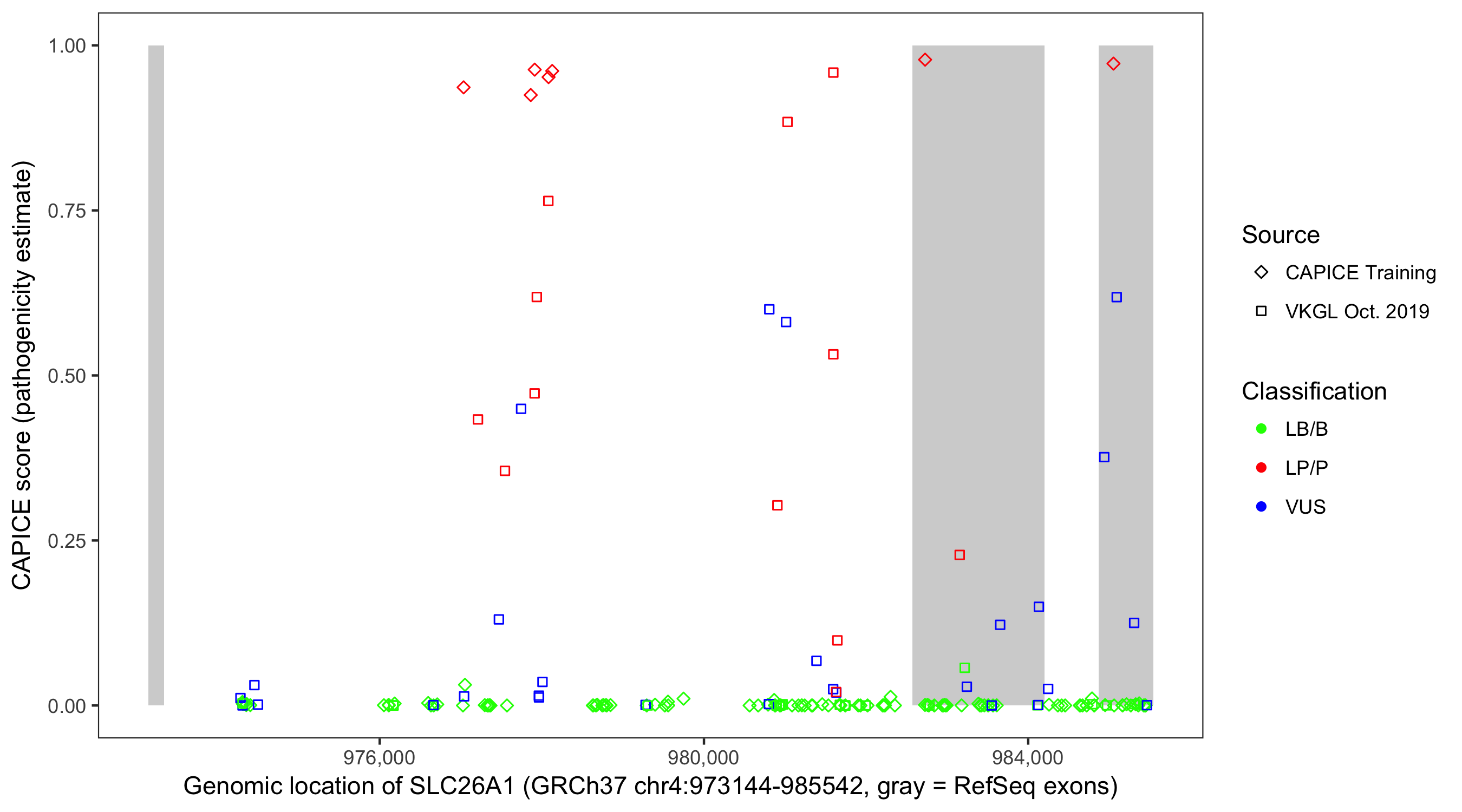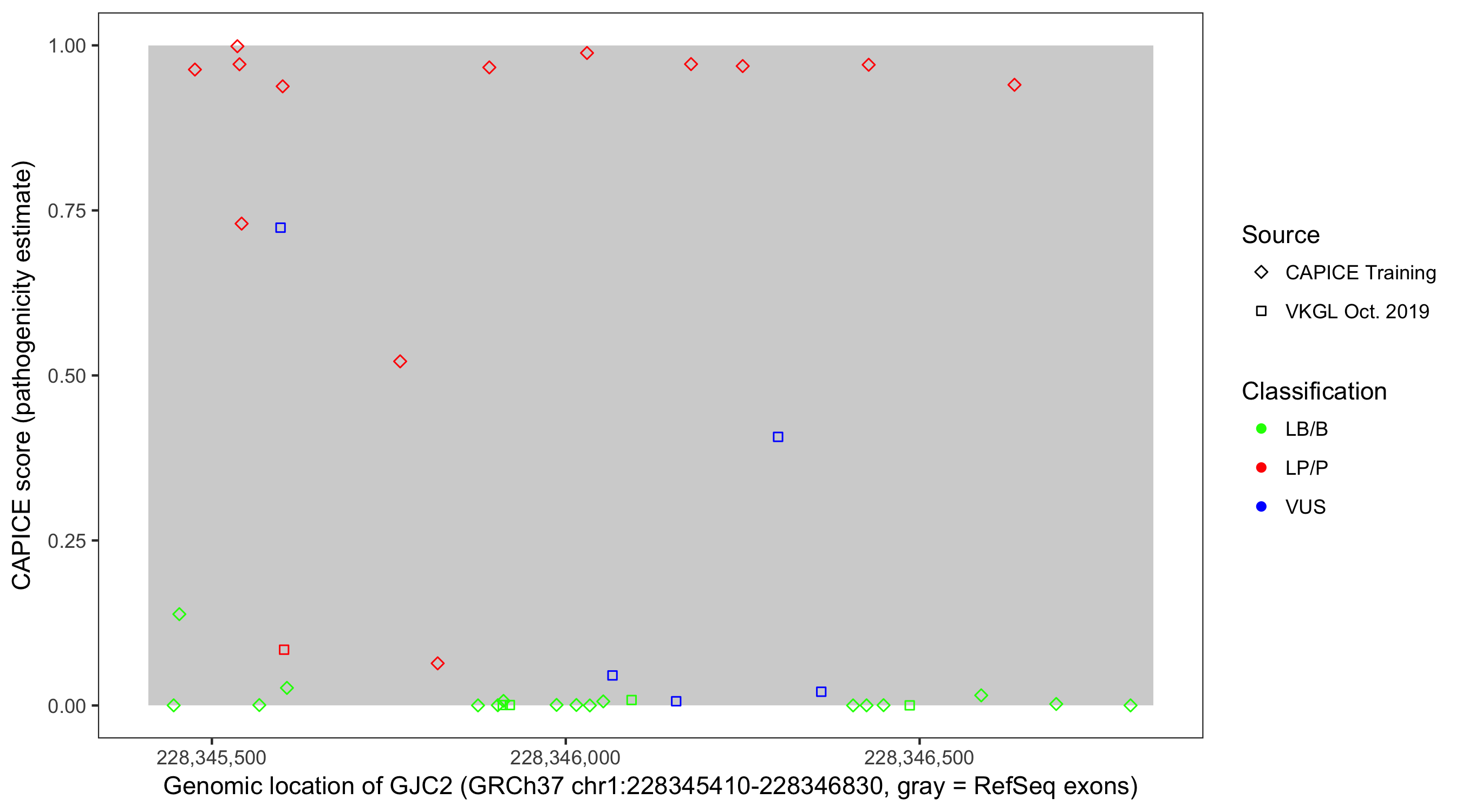 Shown are CAPICE train/test variants plus VKGL Oct 2019.