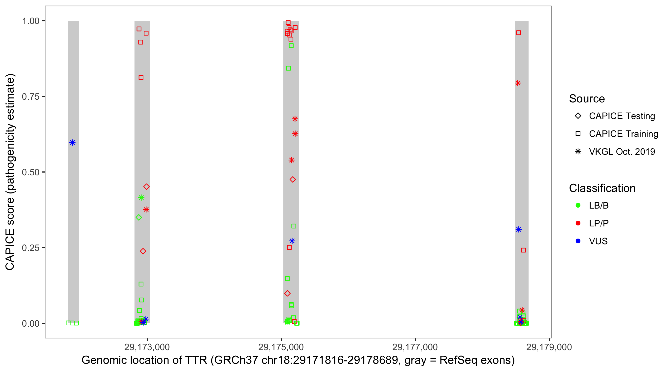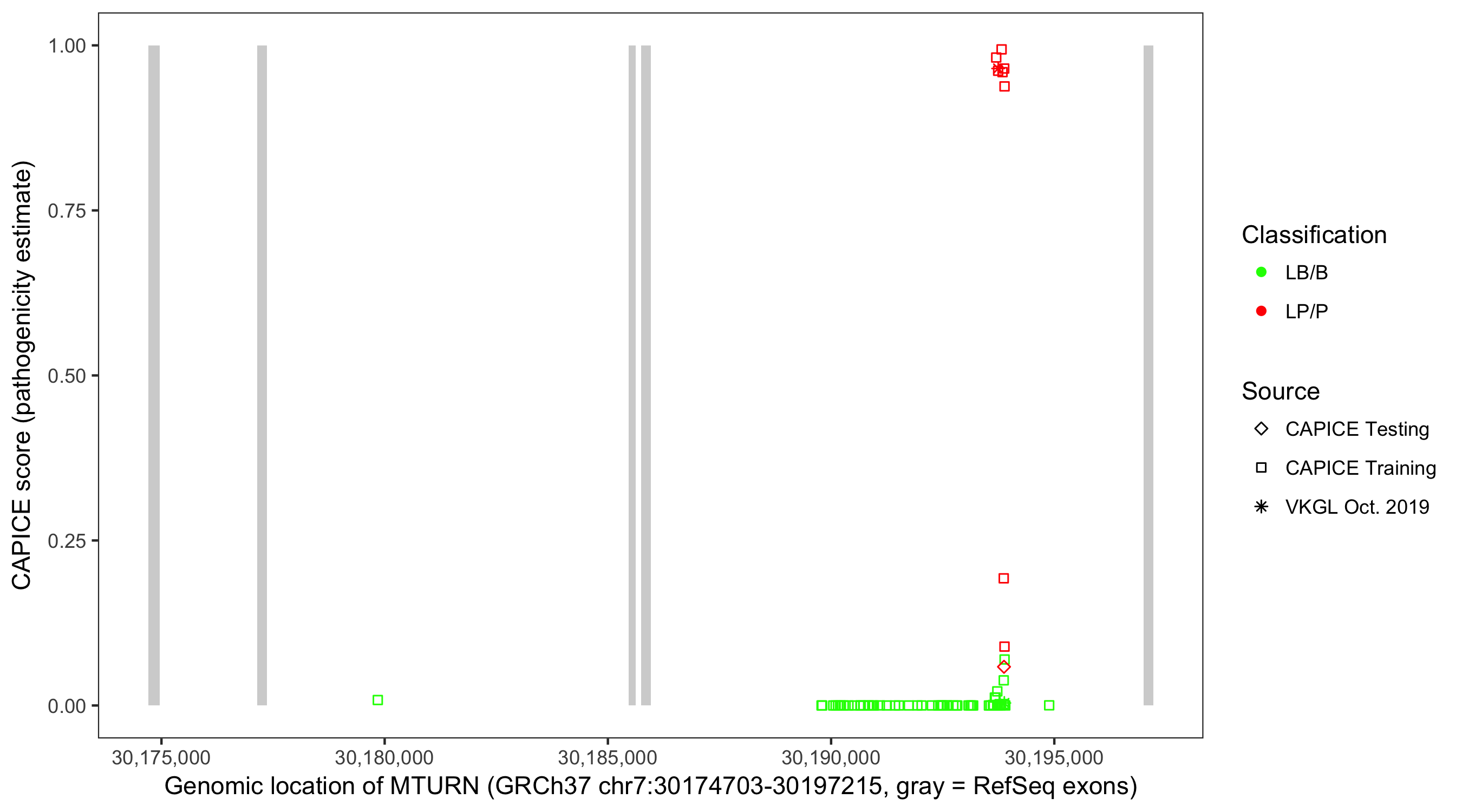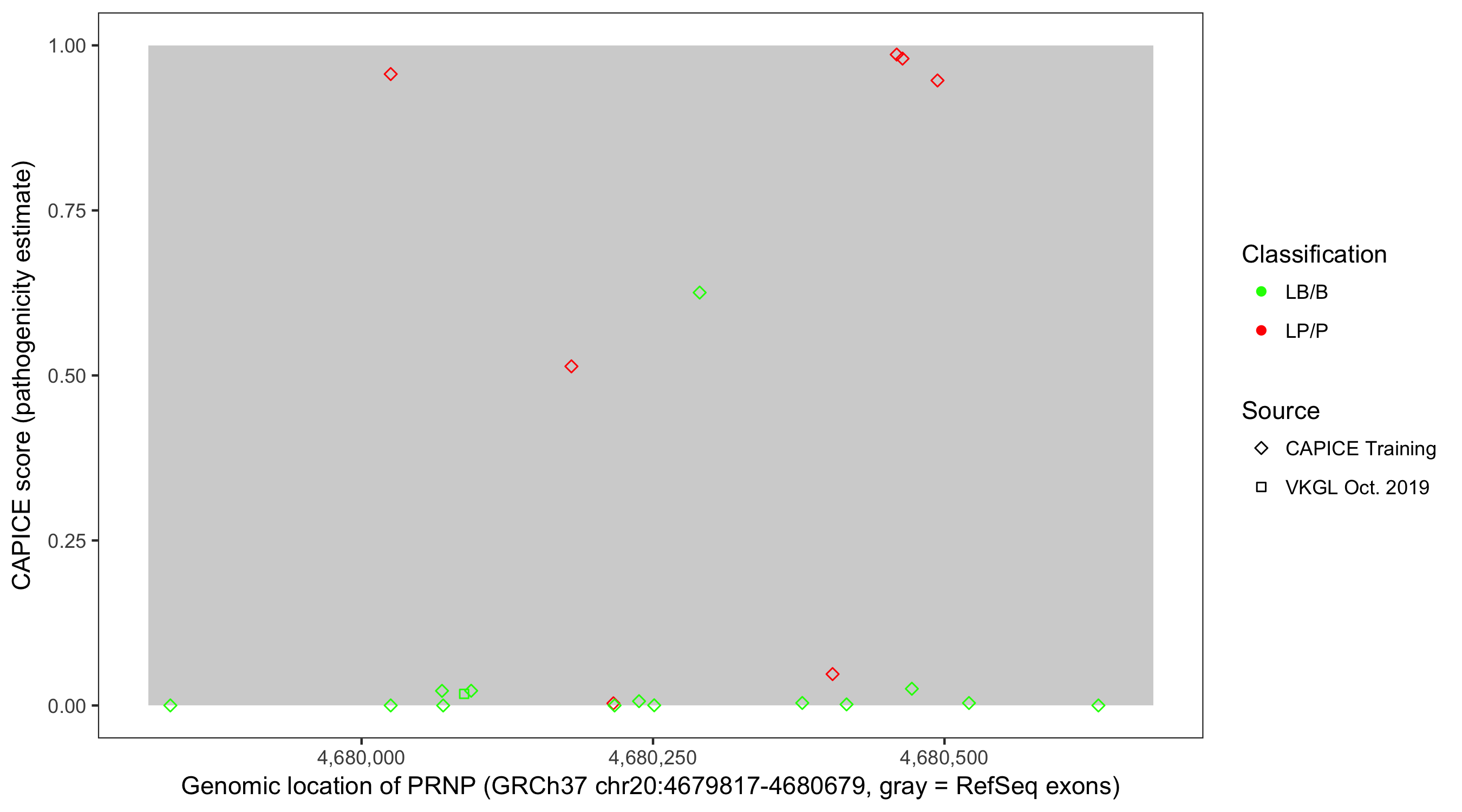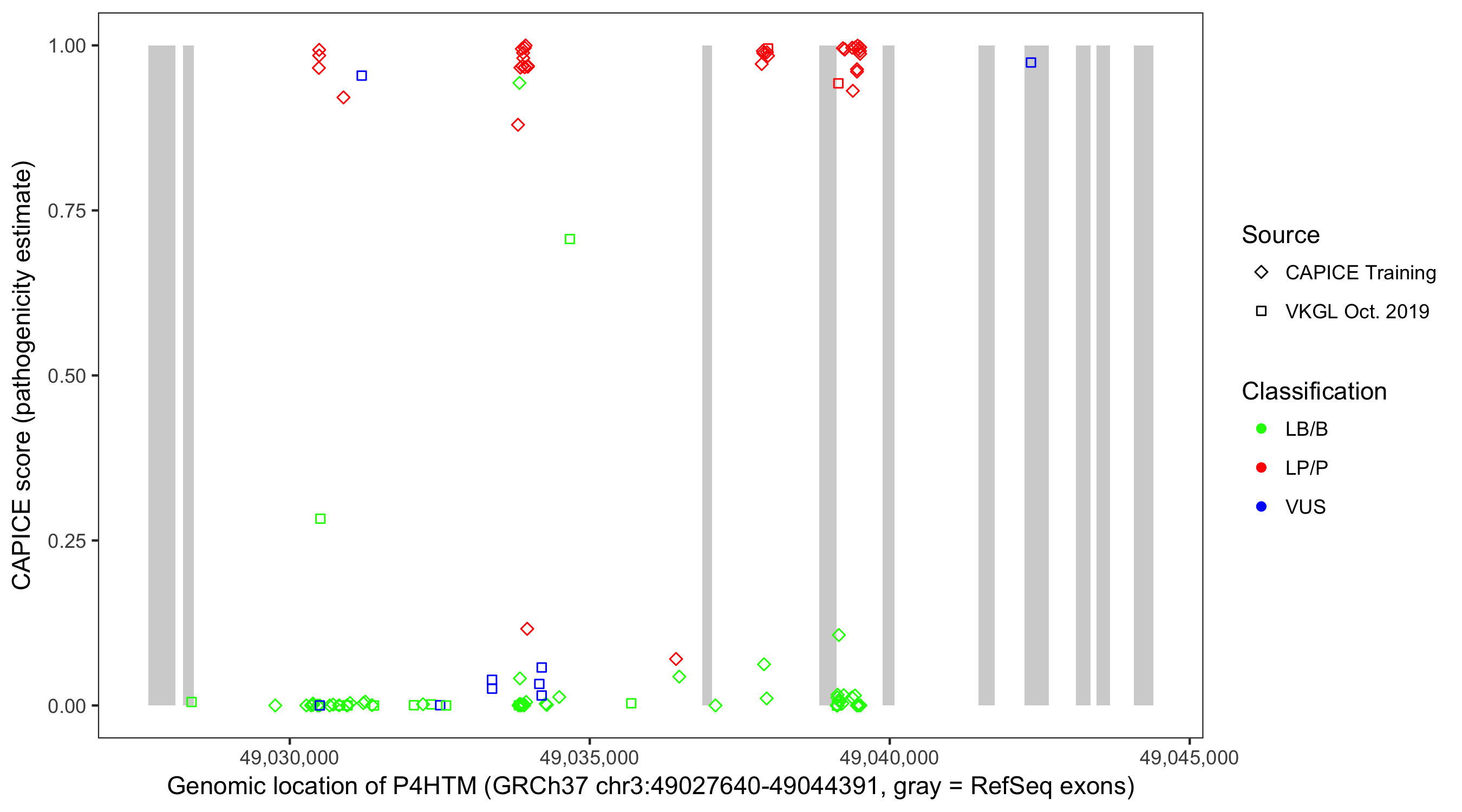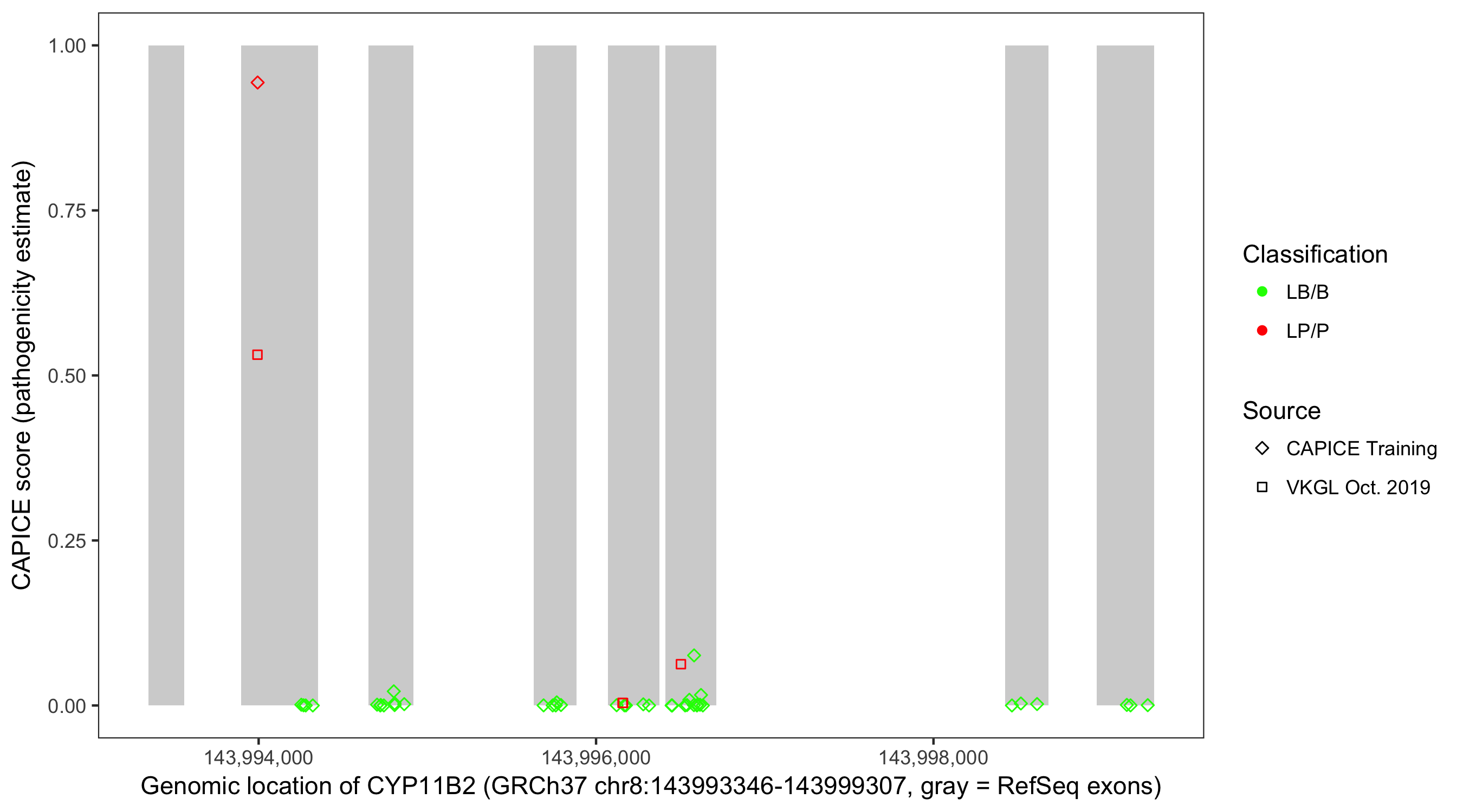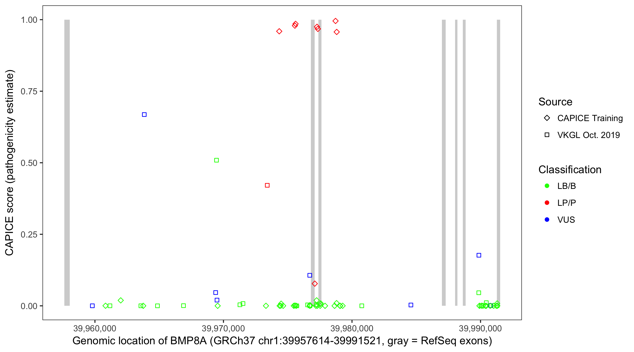 Shown are CAPICE train/test variants plus VKGL Oct 2019.