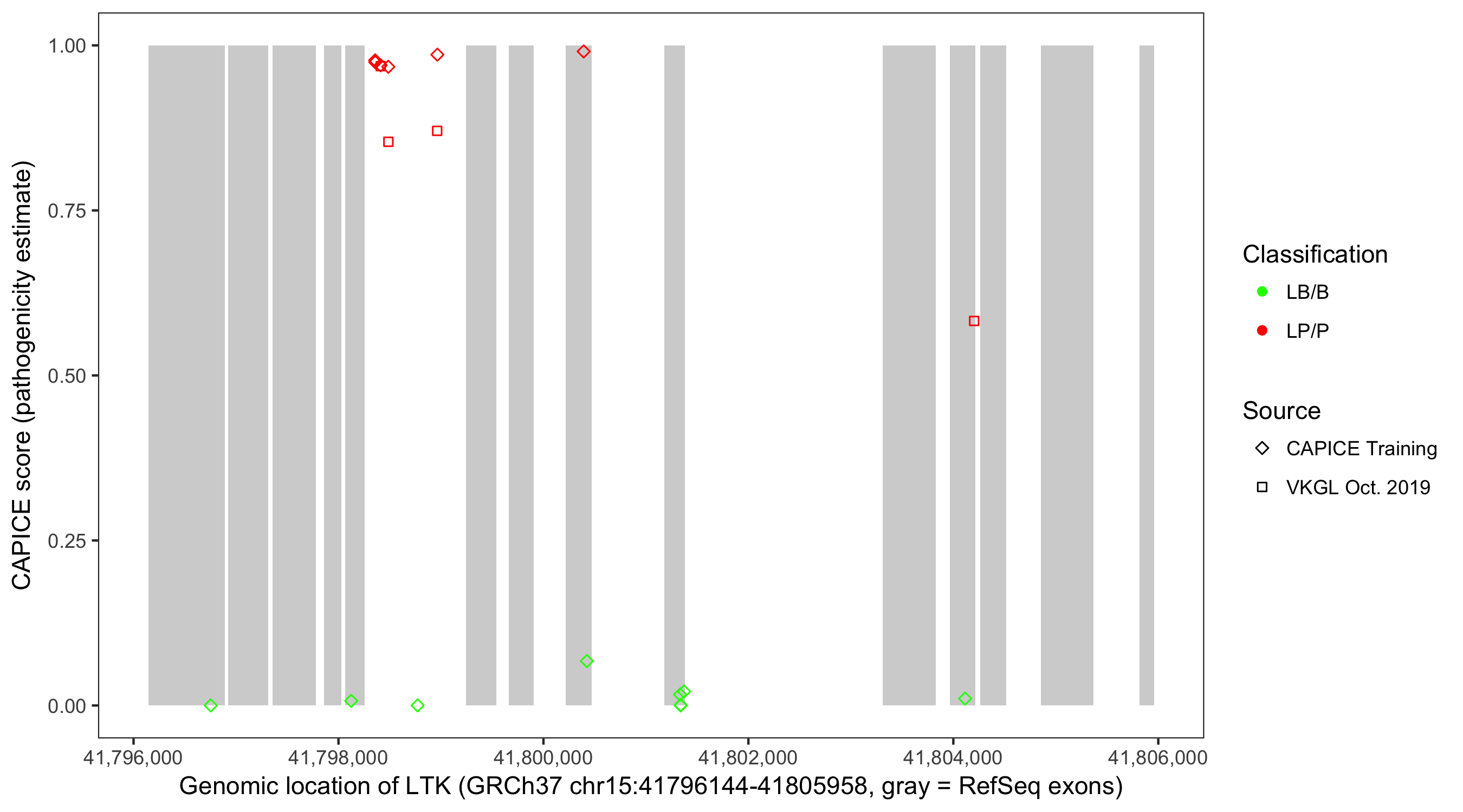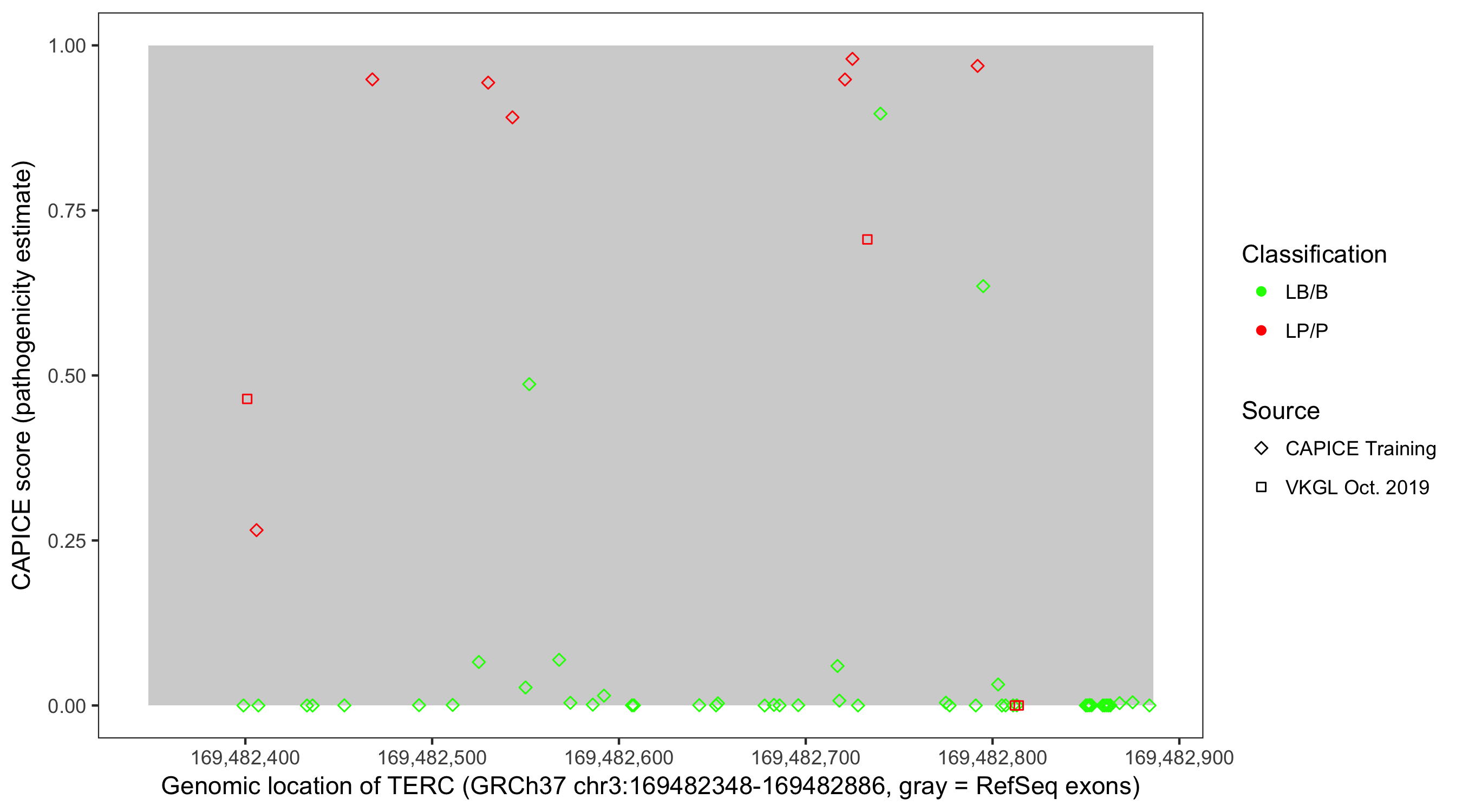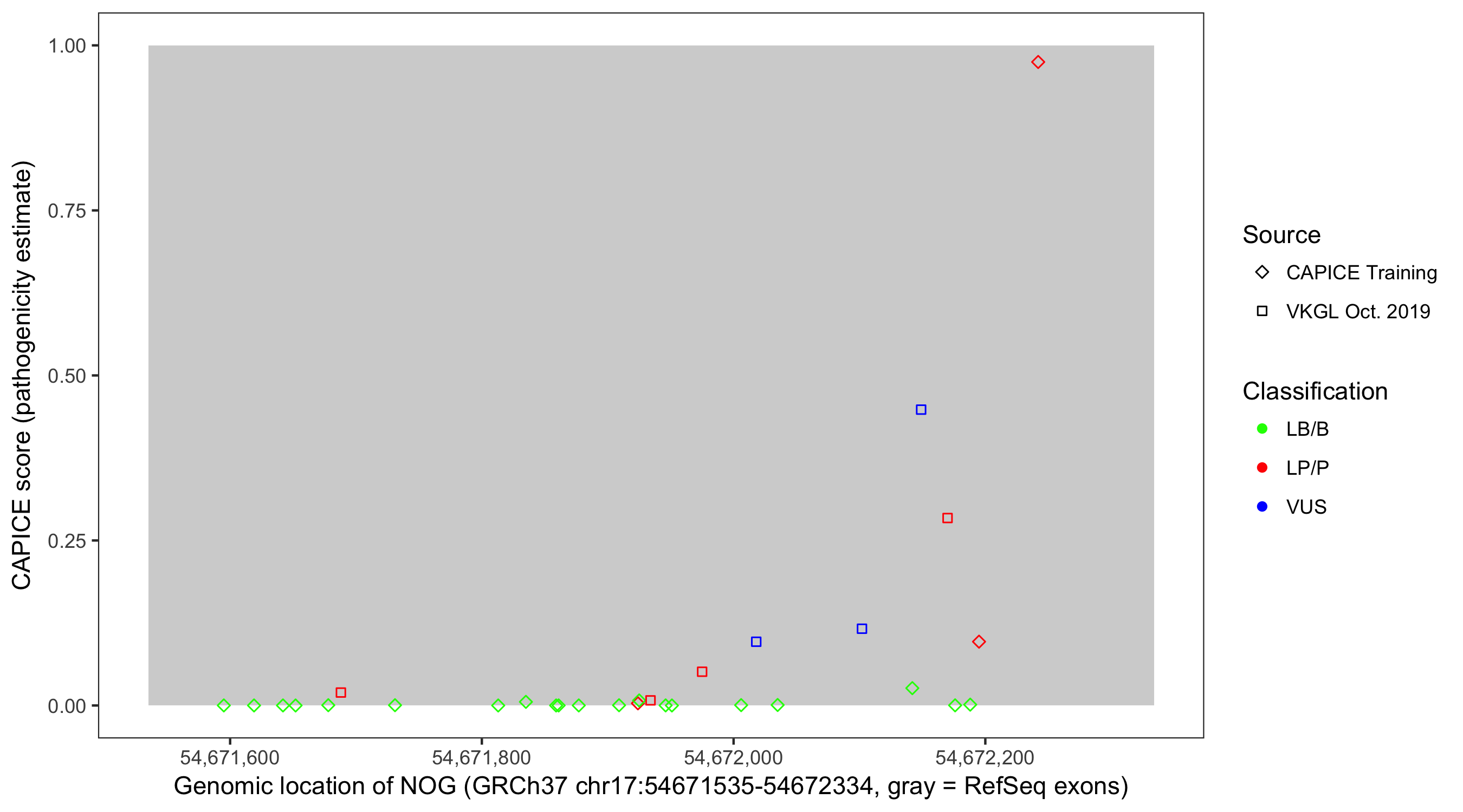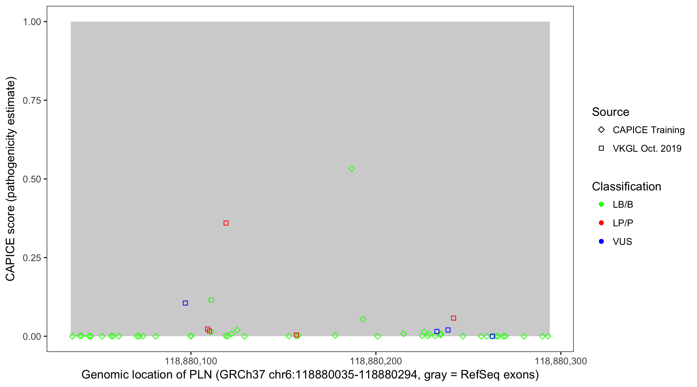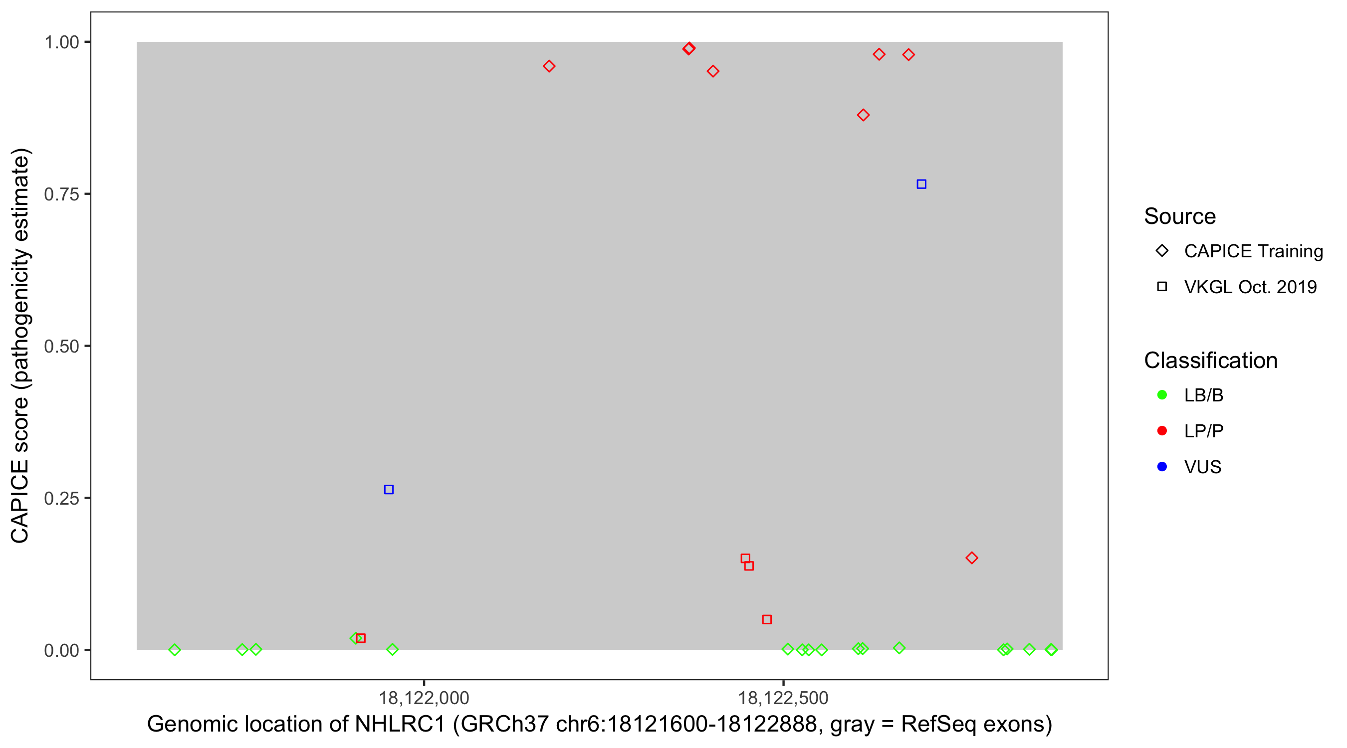 Shown are CAPICE train/test variants plus VKGL Oct 2019.